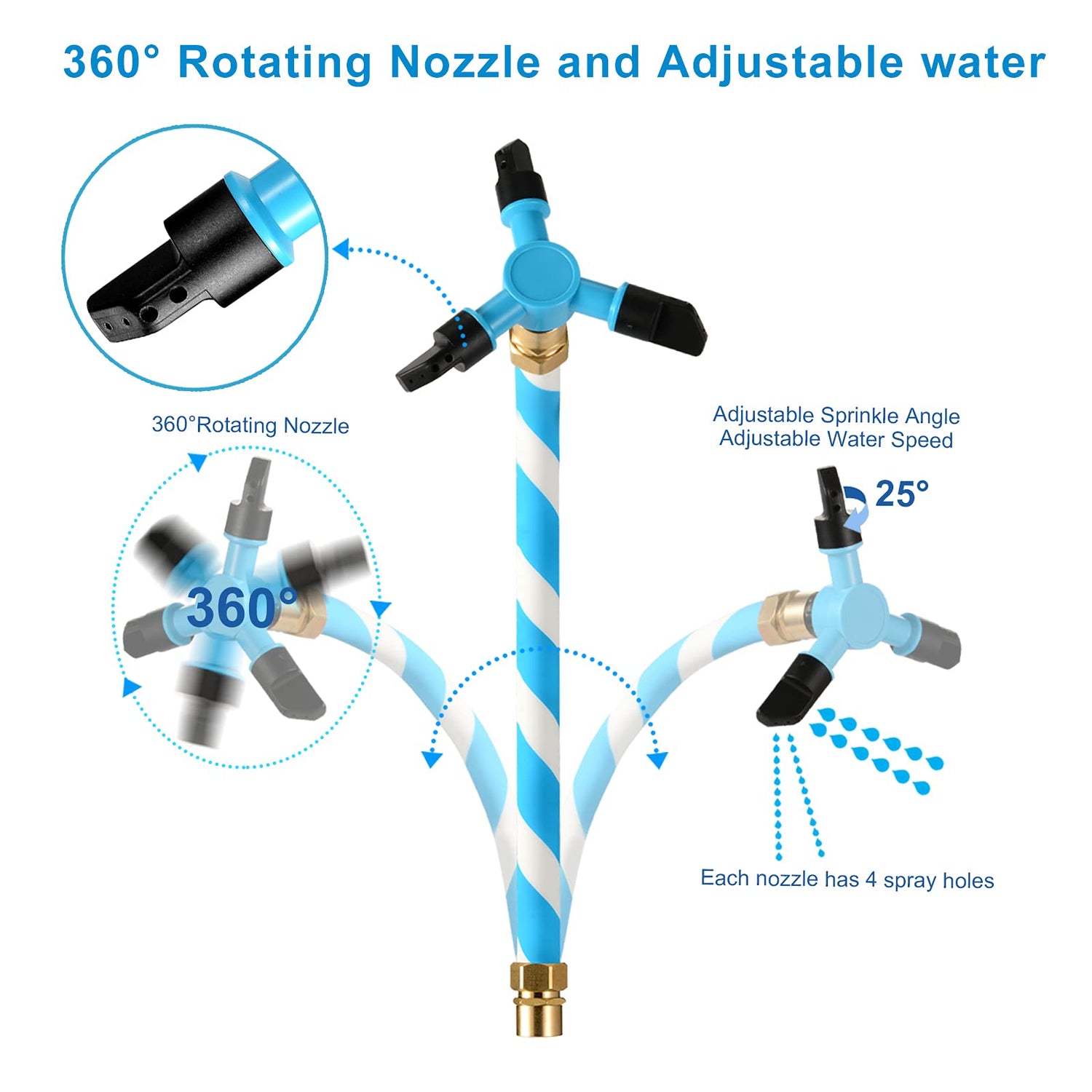 - 【Fits All Size Trampoline】 The 360° rotating trampoline sprinkler designed with 12 built-in water spray holes sprinkle water more dynamically and cover more range