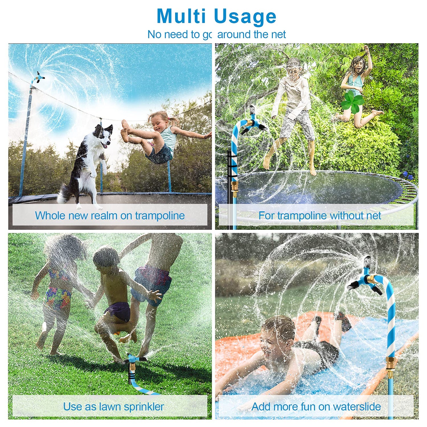 - 【Net Friendly Trampoline Sprinkler & Easy installation】 The trampoline water sprinkler doesn't need to be fixed on the net of trampoline, reduce the burden of the trampoline net and won't damage your net