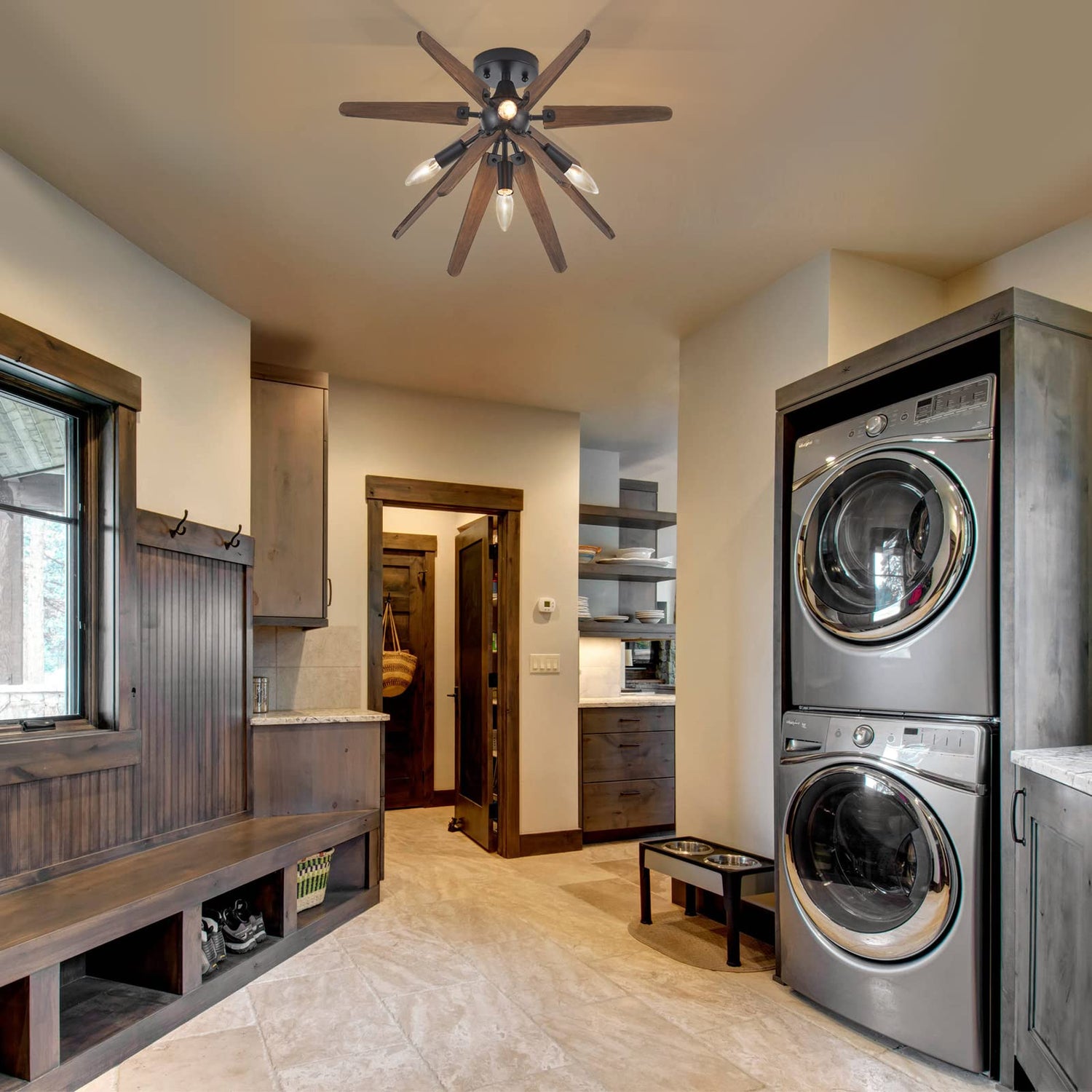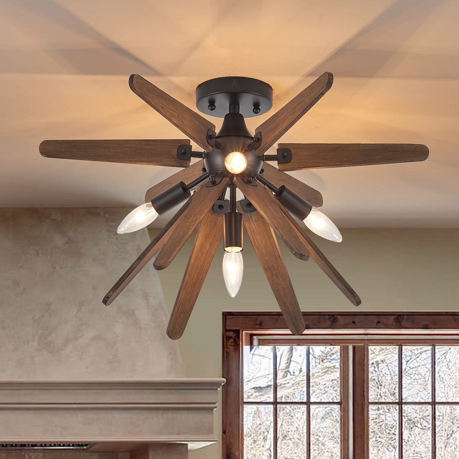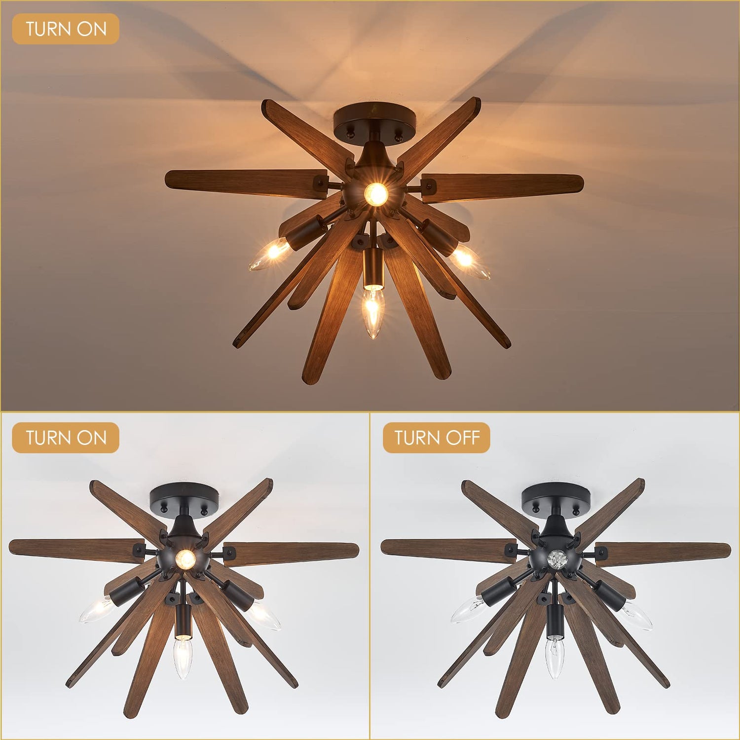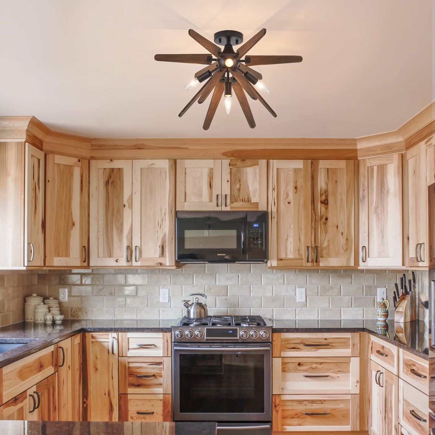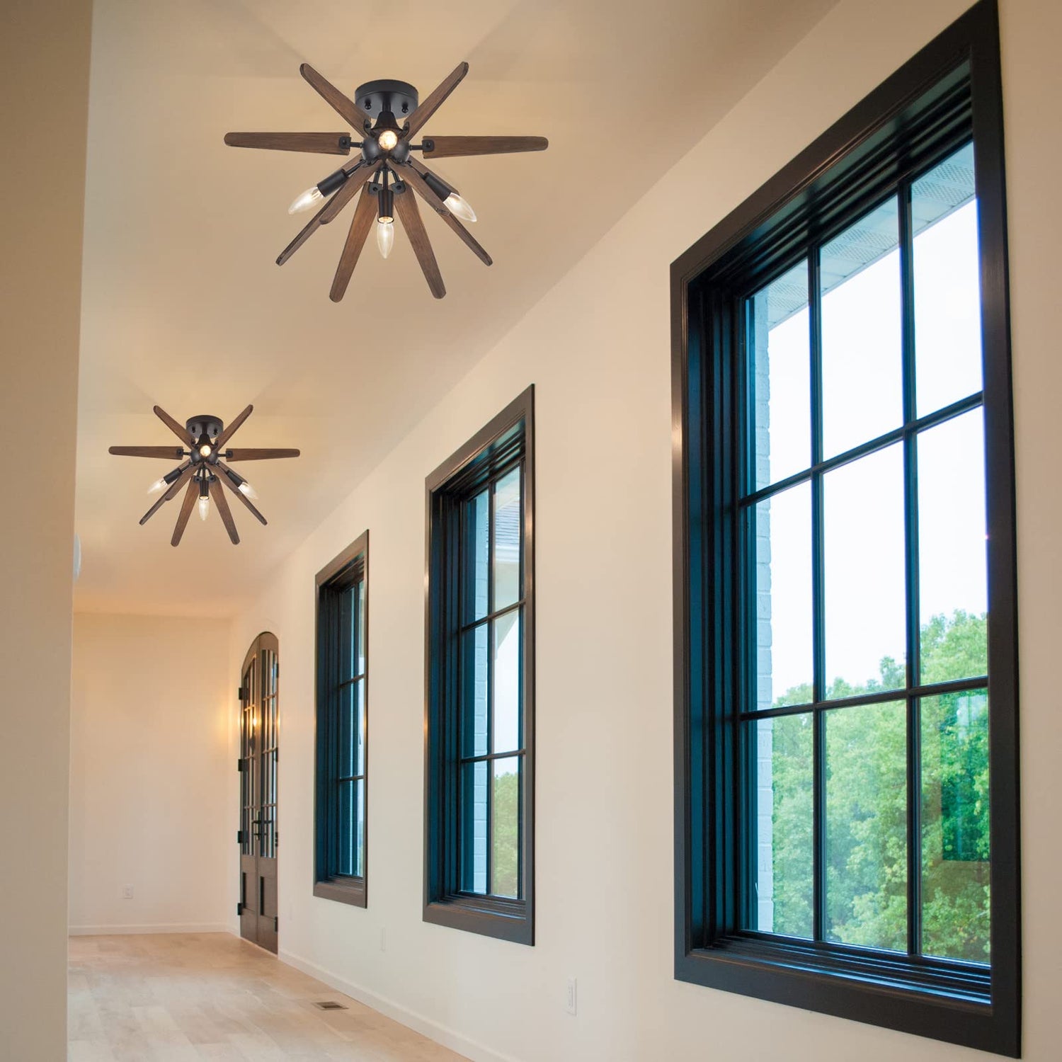 VANZARLA 4-Light Sputnik Semi Flush Mount Light Black, Wood Hallway Lights, Farmhouse Light Fixture for Kitchen, Rustic Close to Ceiling Light Fixture for Entryway Laundry Nursery Bedroom