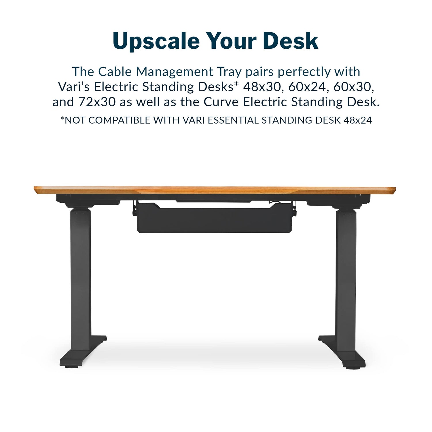 Vari Cable Management Tray - Under Desk Cord & Wire Organizer - Ideal for Home Office Sit Stand Desks - Fits Adjustable Electric Standing Desk 48x30, 60x30, 60x24, 72x30 - Easy Assembly (Black)