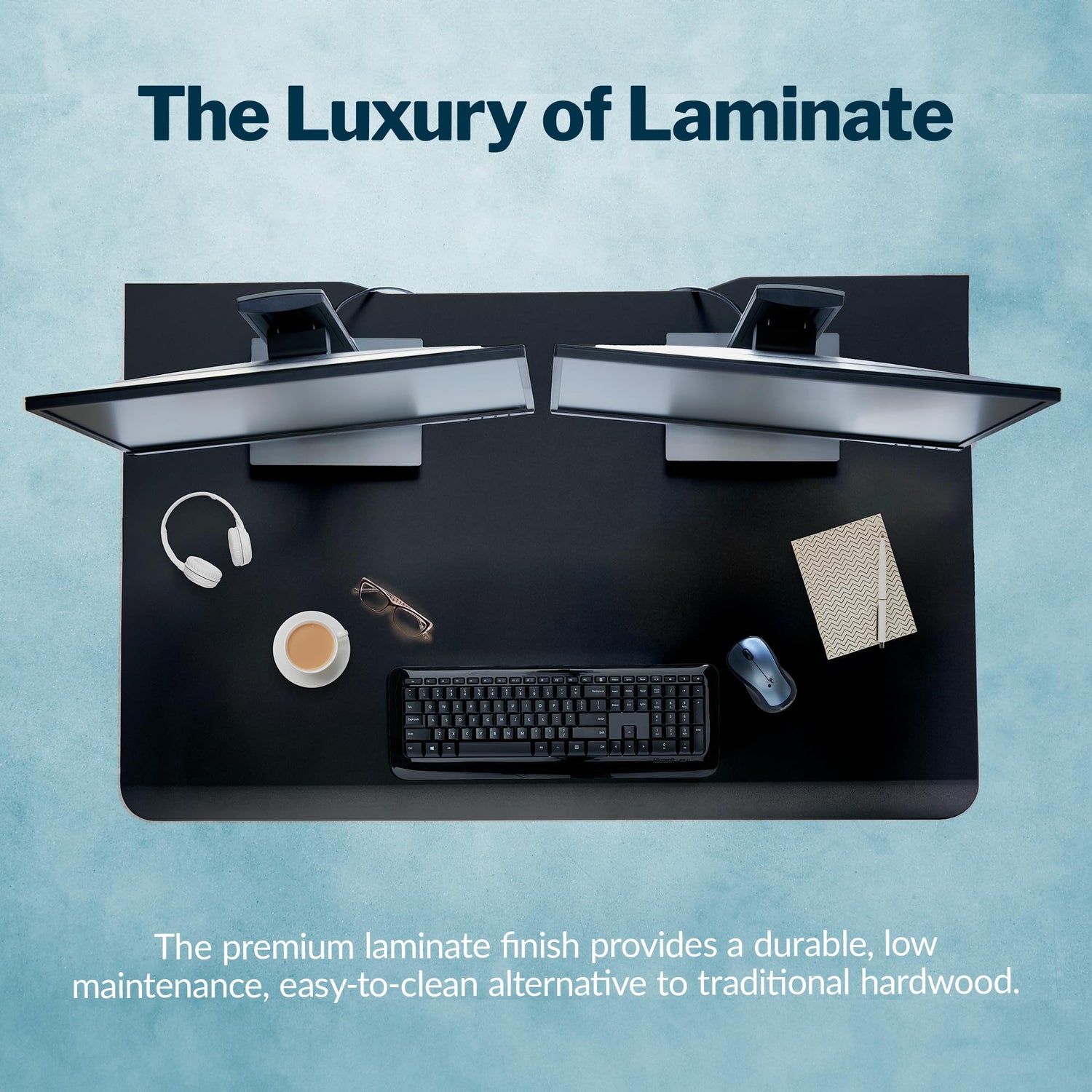 - Ergonomic Comfort: Elevate your workspace with our lift desk for home office, featuring an easy-to-clean, durable 3D laminate desktop. Designed with flat edges on the sides and back, it includes a 50 mm radius on the front corners and a 5 mm radius on the back corners.