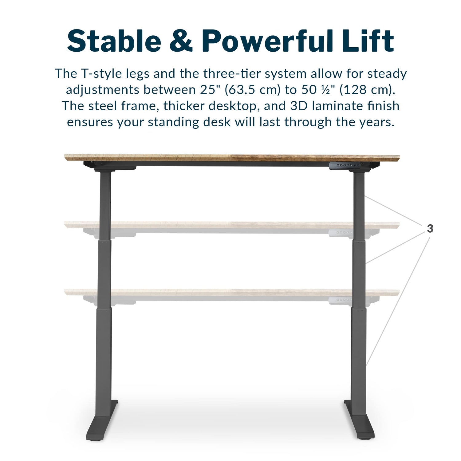 Vari Electric Standing Desk - 60x30 Varidesk, Adjustable Height Stand Up Desk - Dual Motor with Memory Presets, Stable T-Style Legs- Home Office Essentials Computer Desk - Reclaimed Wood