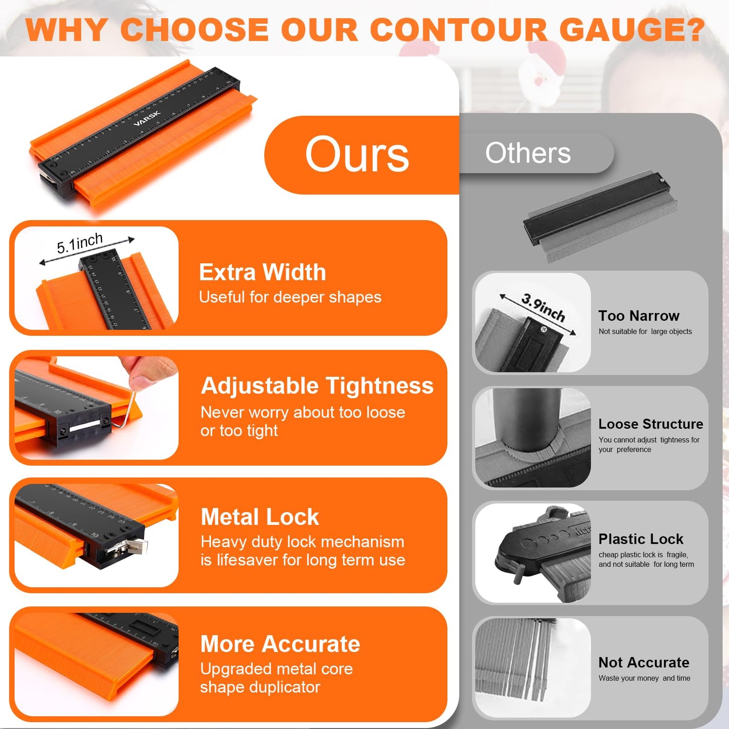 - Great Tools & Ideal Gifts - Do you want to prepare a special gift for your family or friends? Now, VARSK Upgraded Contour Gauge with Lock is a super duplicator tool for handymen/DIY lovers to do woodworking, flooring, tiling, carpet laying, laminating, and DIY projects. The profile gauge is simple to use and designed to easily duplicate irregular shapes. It also comes with a nice gift box, which can be a great gift for Men/Dad/Husband/Grandpa