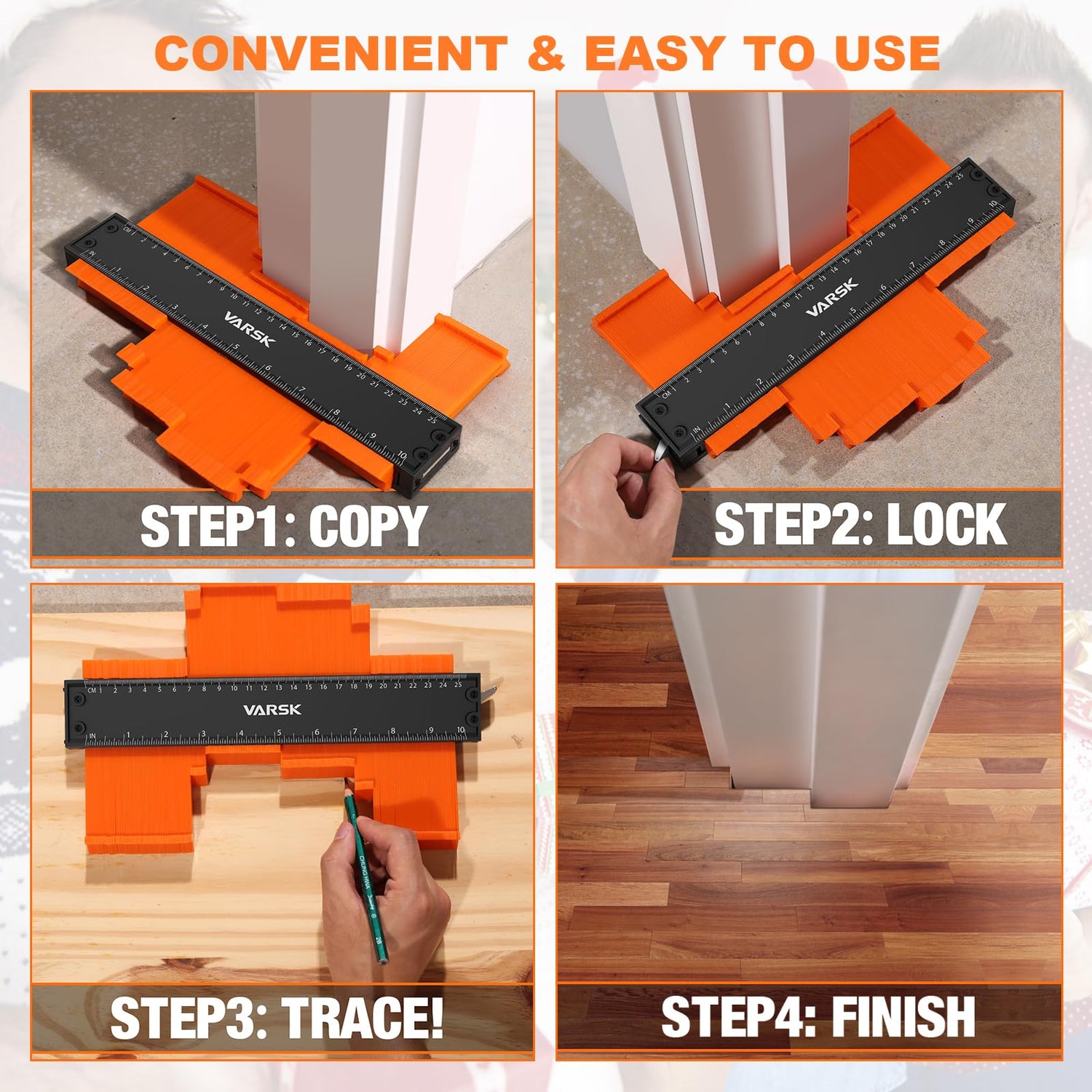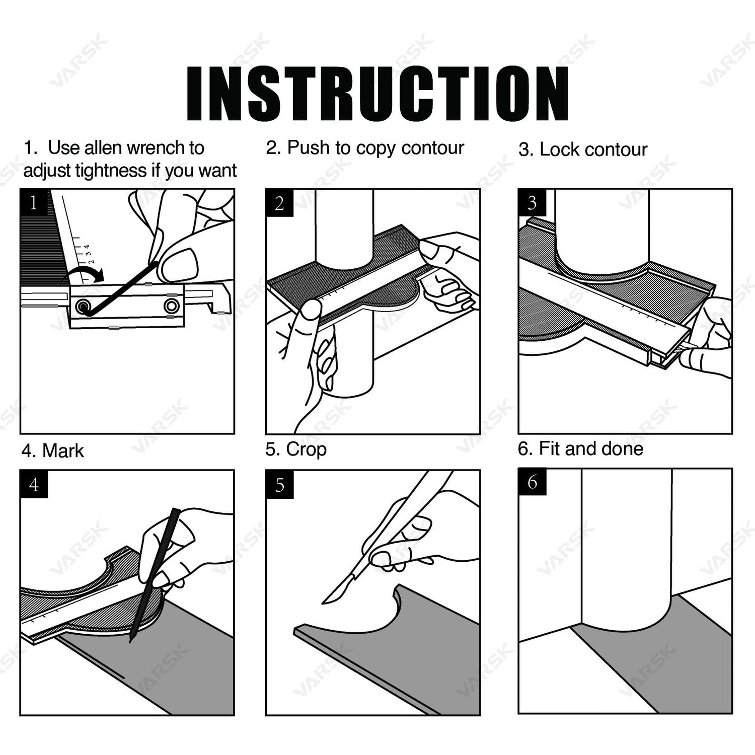 - Lightweight & Easy to Use - VARSK contour gauge profile tool weighs only 1lb. The 10 inch length and 0.05 inch single sheet thickness are enough for you to get accurate measurements when doing home maintenance and DIY projects. No matter whether you are an amateur or professional, simply remember three steps: Copy it. Lock it. Trace it. You just press the contour gauge on one of the shapes. Then trace and trim the outline, and cut it into shape