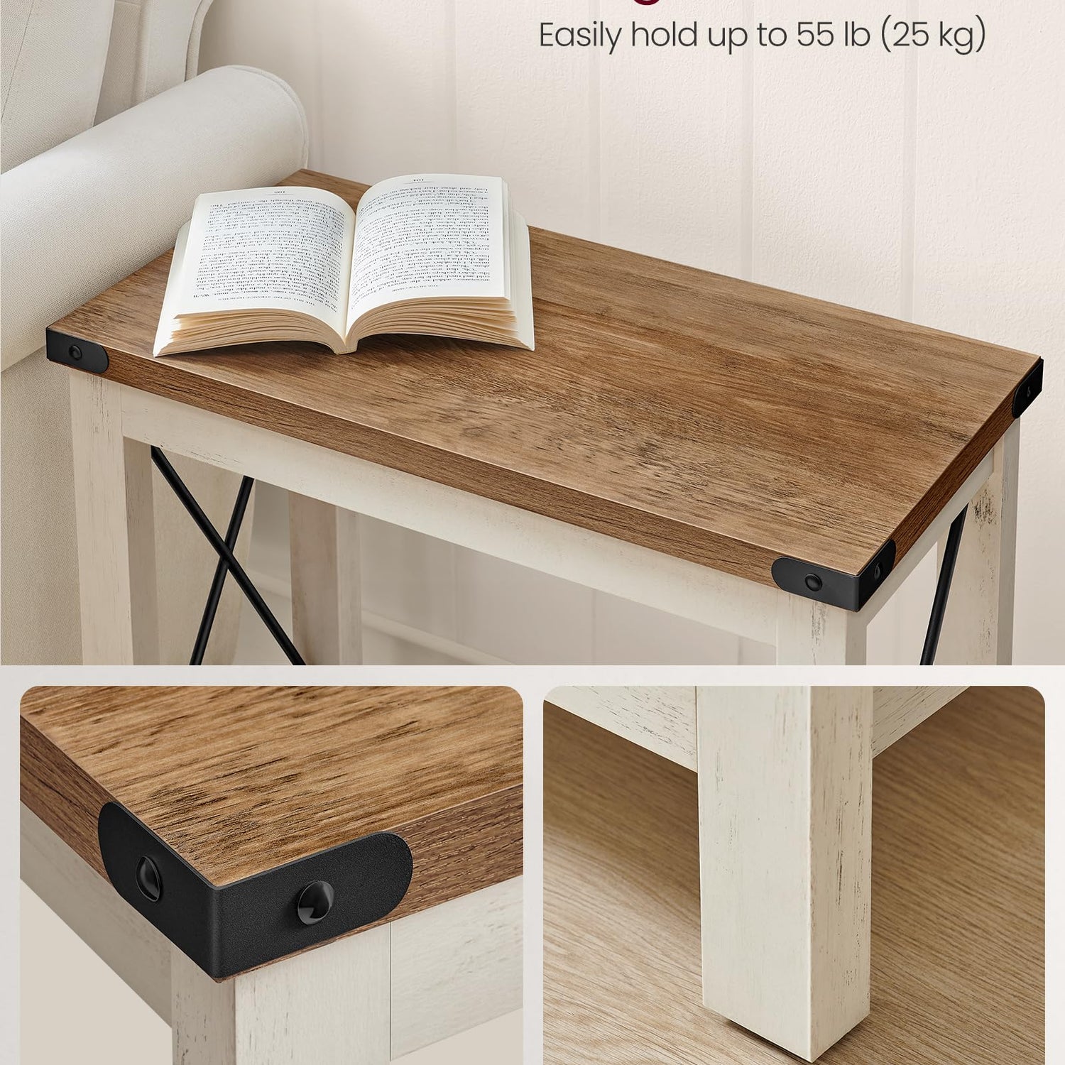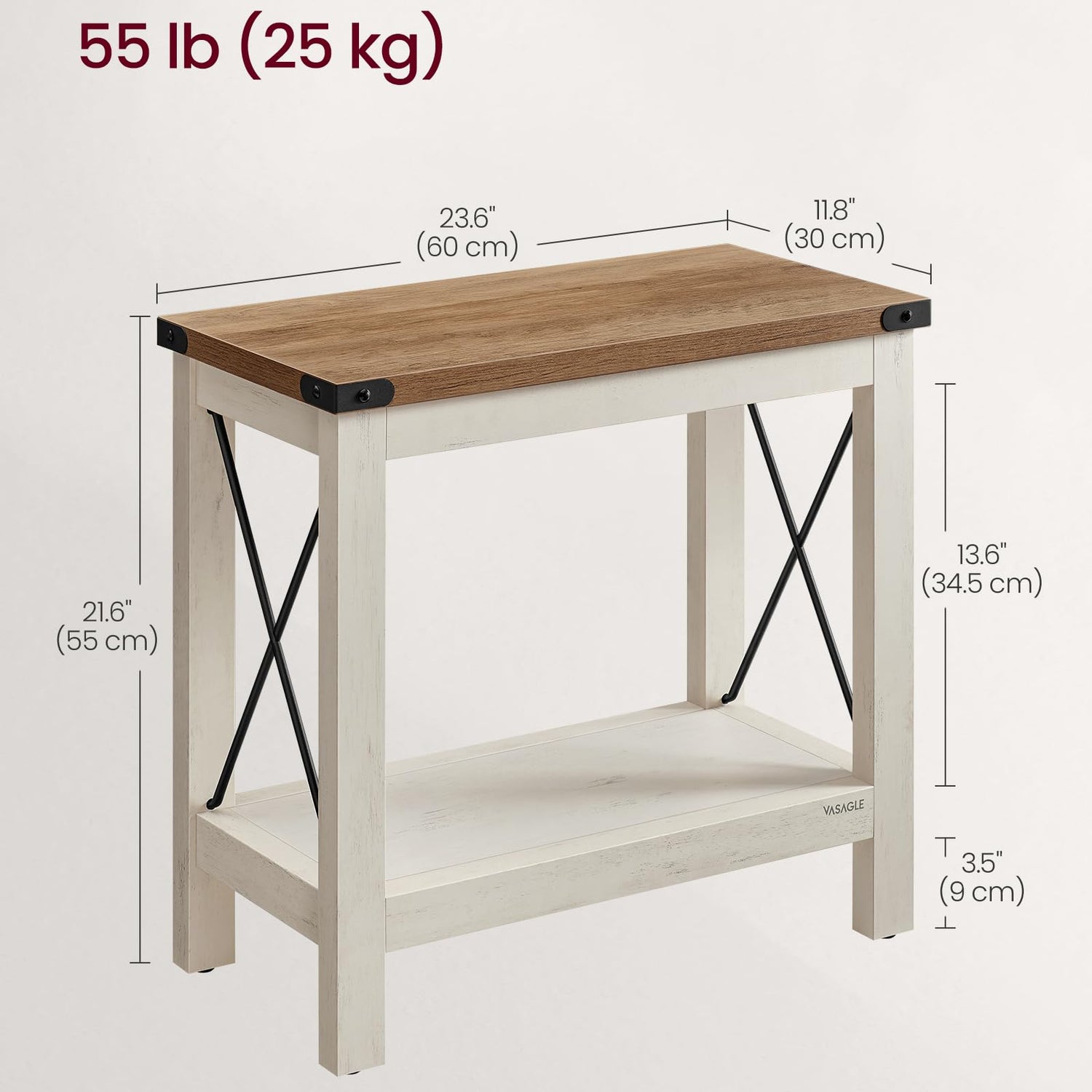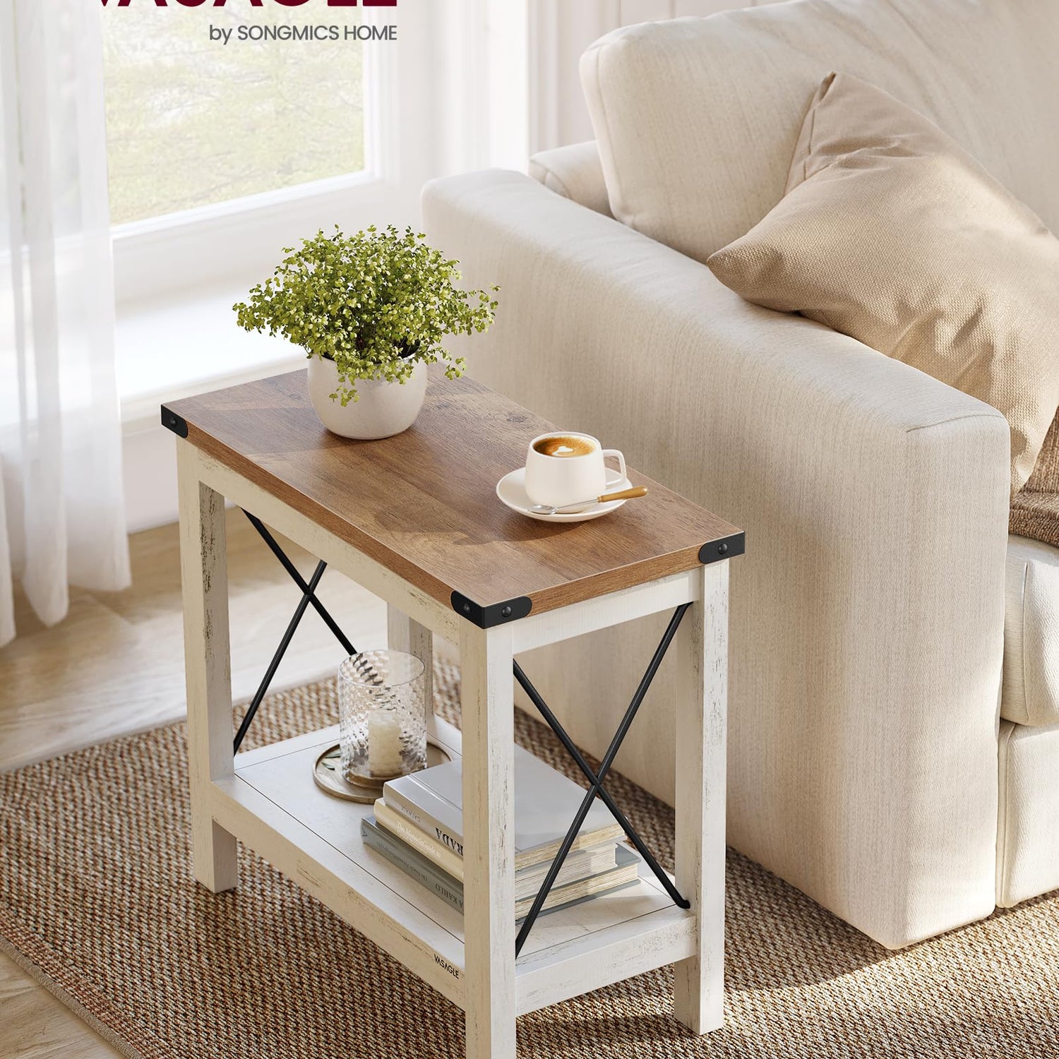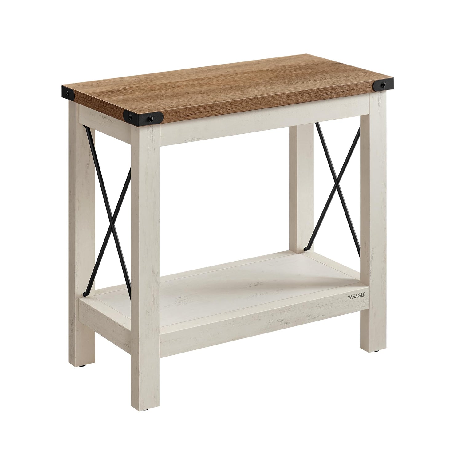VASAGLE 2-Tier End Table, Side Table with Bottom Shelf, Nightstand for Small Spaces, for Living Room, Bedroom, Farmhouse Style, Rustic White and Honey Brown ULET235W01