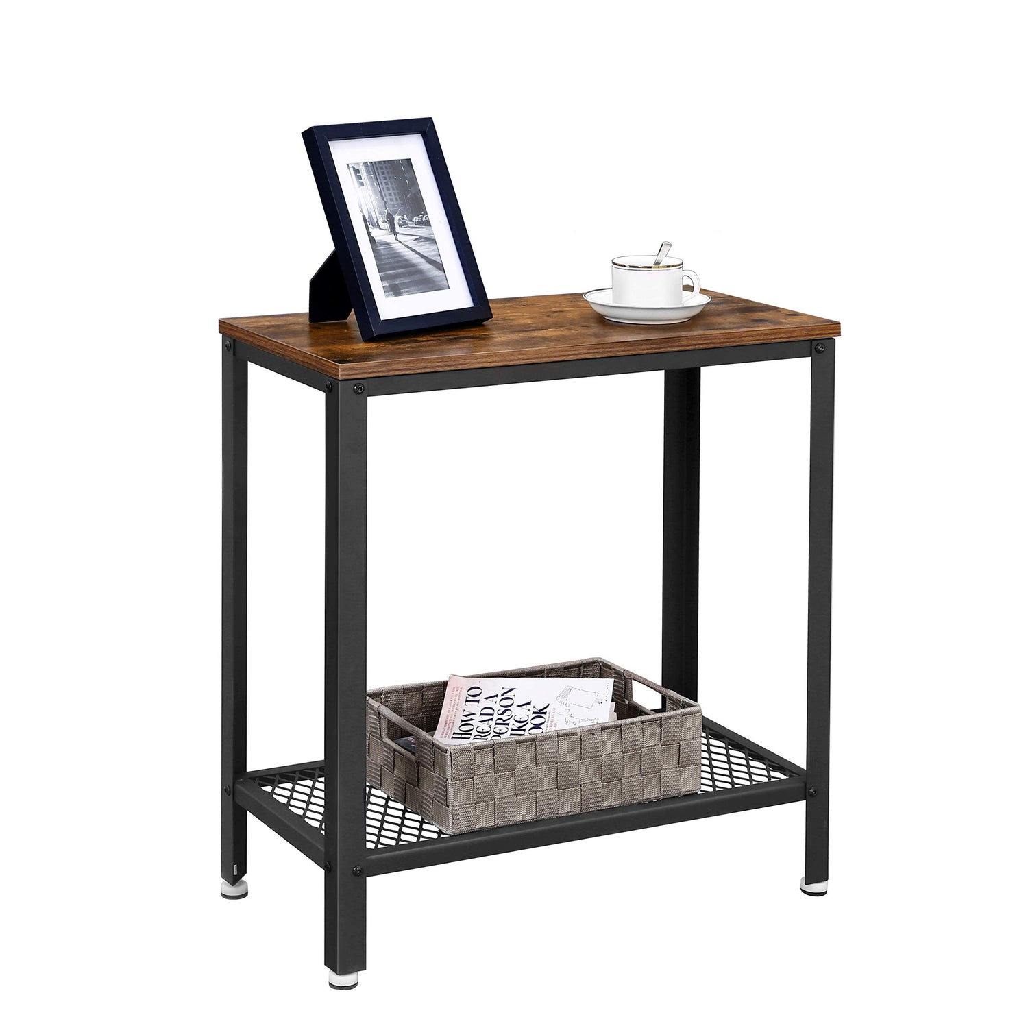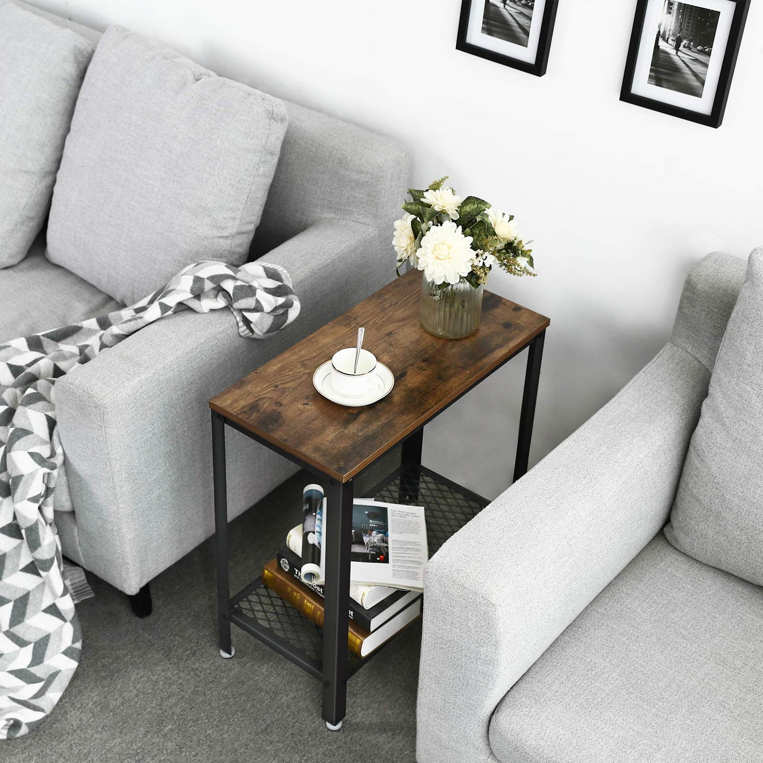 VASAGLE 2-Tier Narrow Side End Table for Couch, Rustic Sofa Printer Table with Mesh Shelf for Bedroom, Fish Tank Stand for Home, Office, Rustic Brown and Black