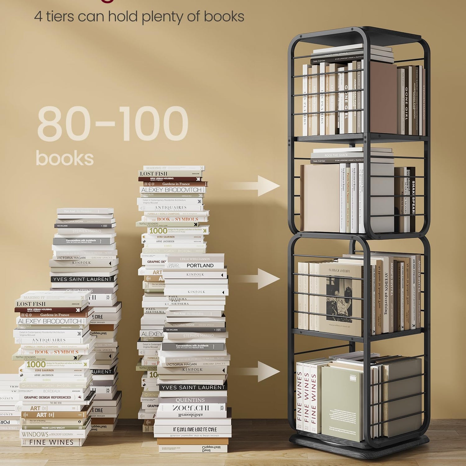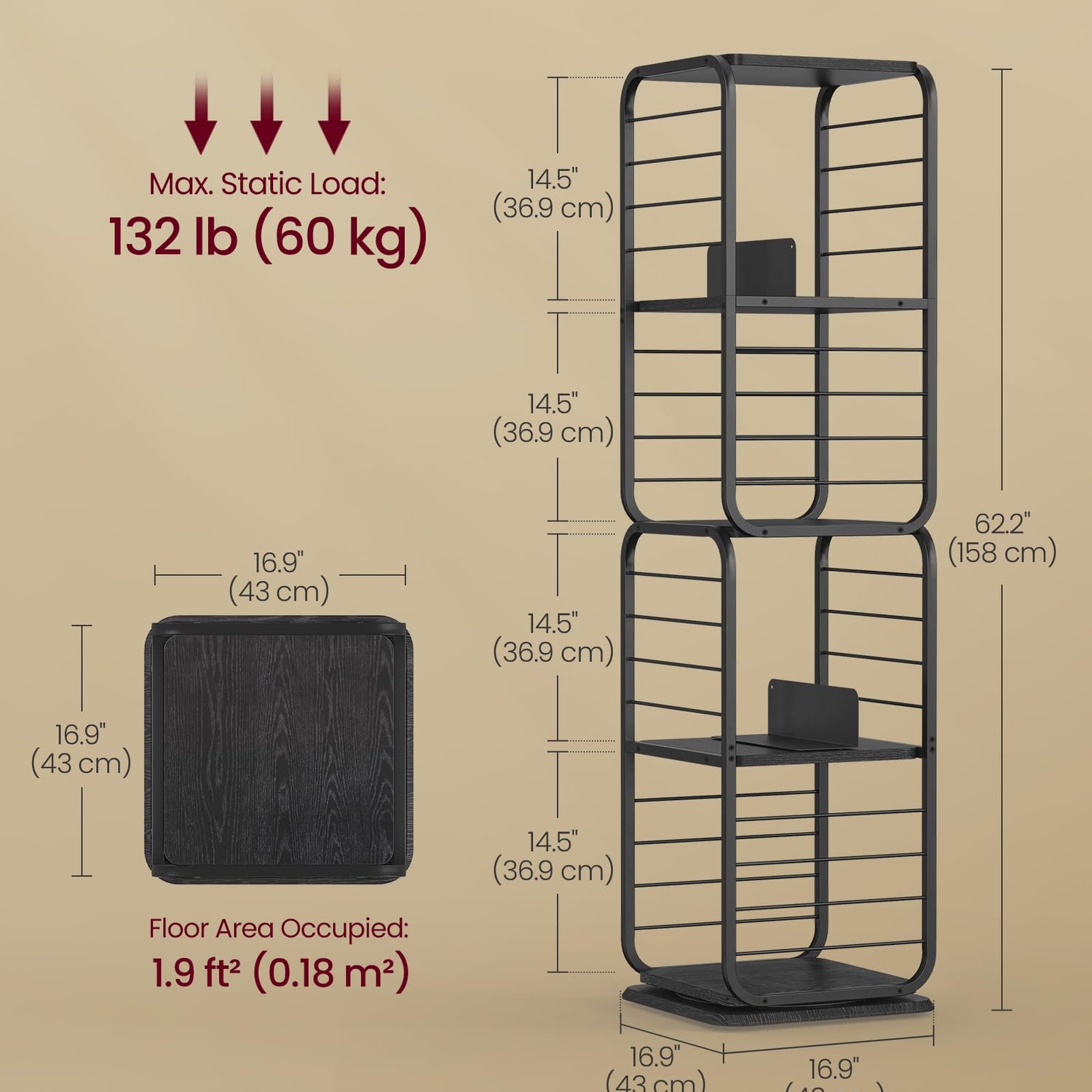 Revolutionise your storage space with the VASAGLE 4-Tier Corner Rotating Bookshelf—combining beauty, efficiency, and safety in one stunning piece.