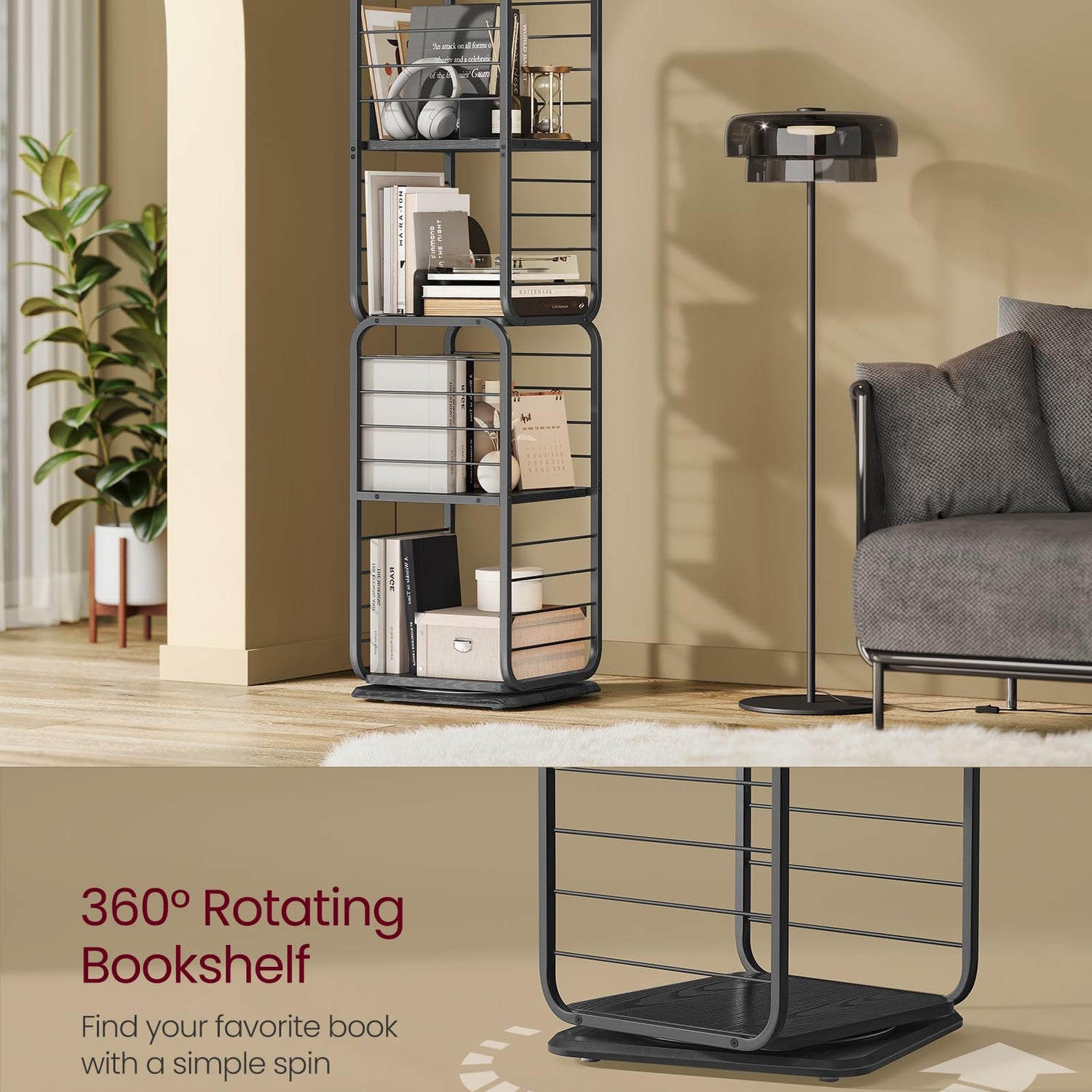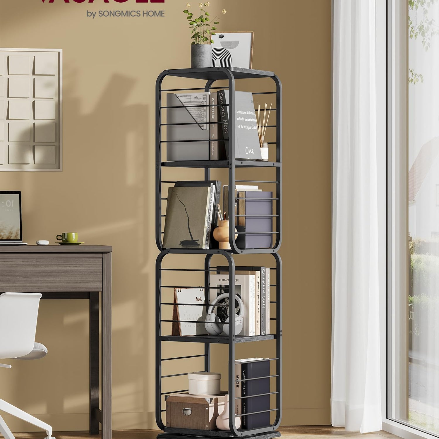 VASAGLE 4-Tier Corner Rotating Bookshelf with Bookends in Black