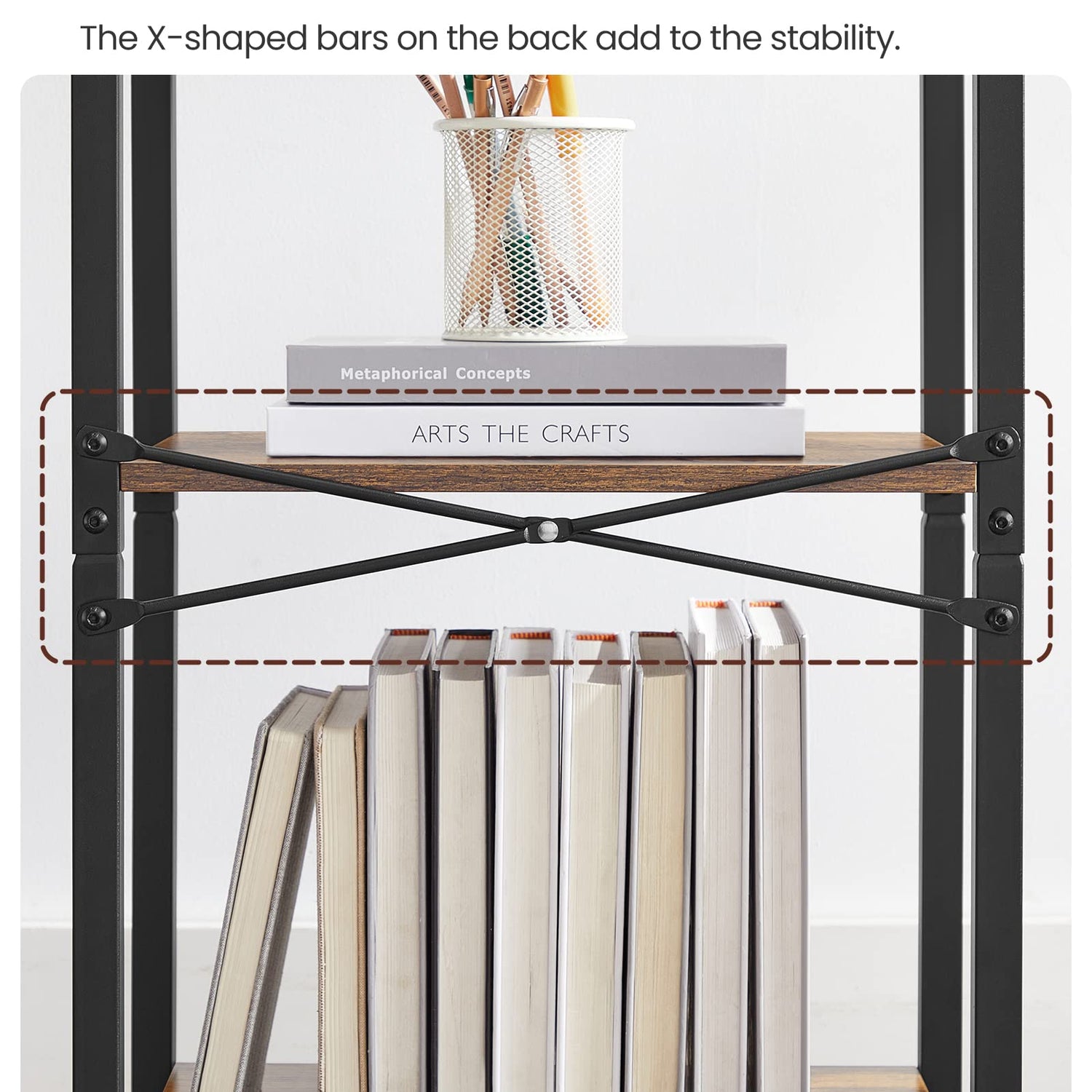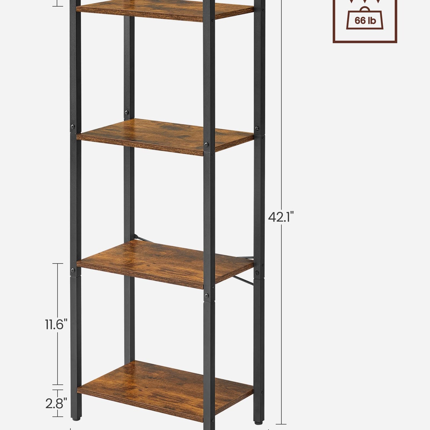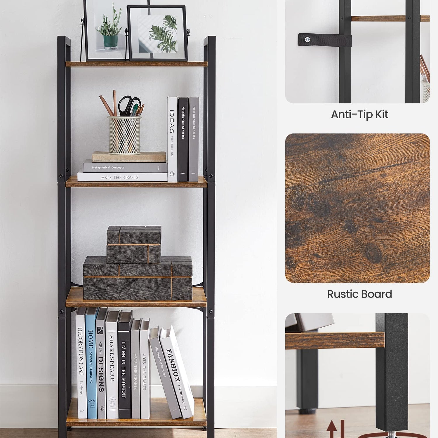 - [Built to Last] A smart mix of quality particleboard and a sturdy steel frame allows this robust 4-tier bookcase to hold up to 66 lb, giving your items reliable support for years to come