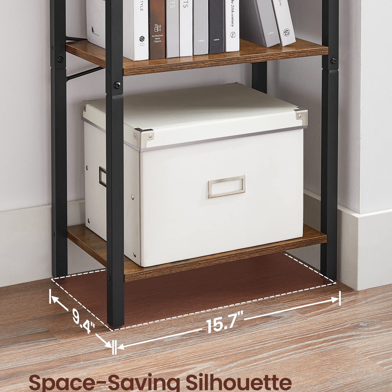- [Space-Saving for Any Room] This 9.4"D x 15.7"W x 42.1"H bookshelf occupies little floor space yet offers you 4 tiers of vertical storage, making full use of the small spaces in your living room, bedroom, bathroom, or entryway