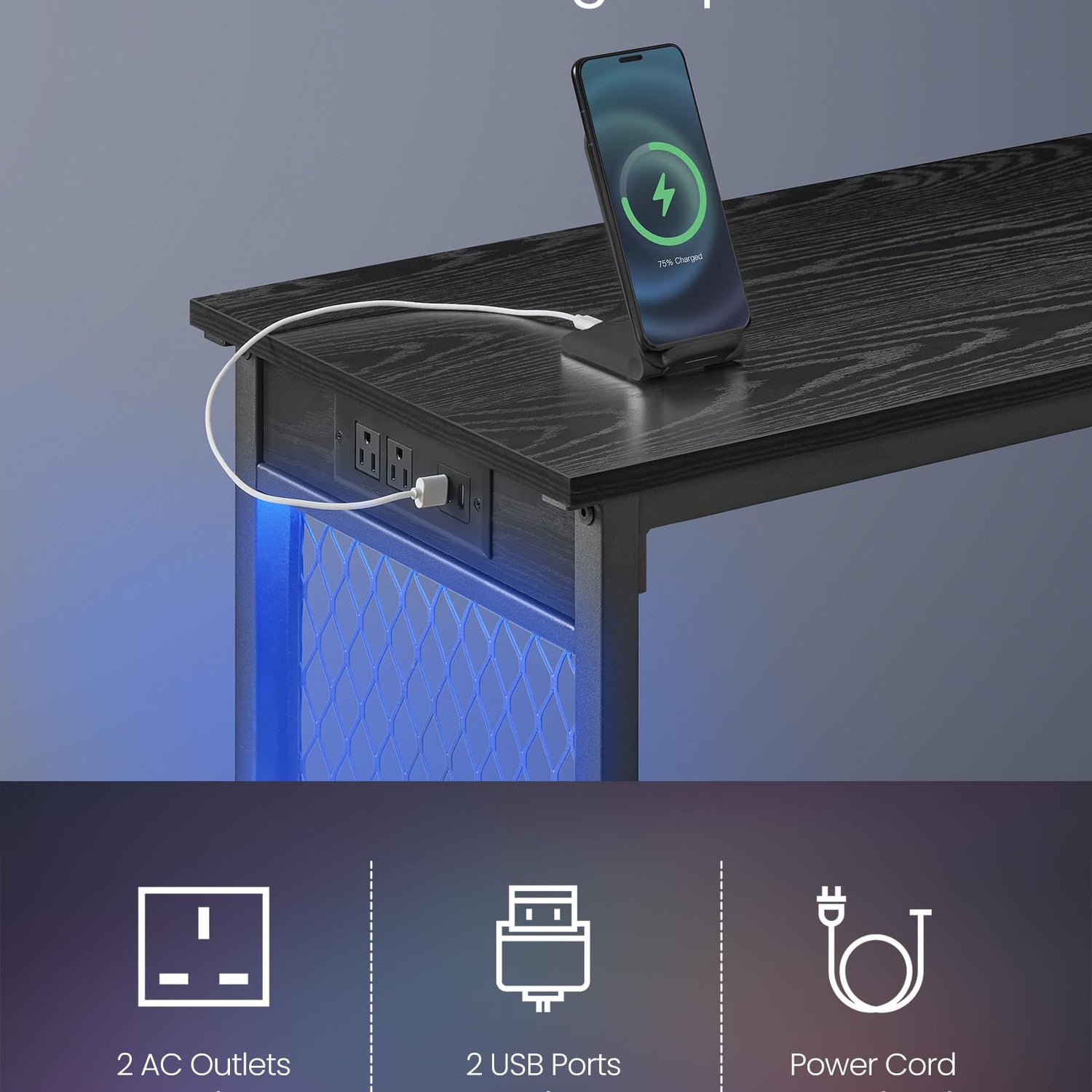 - 【Convenient Power Station】2 AC outlets and 2 USB ports provide easy charging for phones, laptops, and more. The 6.6 ft long power cord allows for flexible placement of this tall couch table without worrying about outlet distance