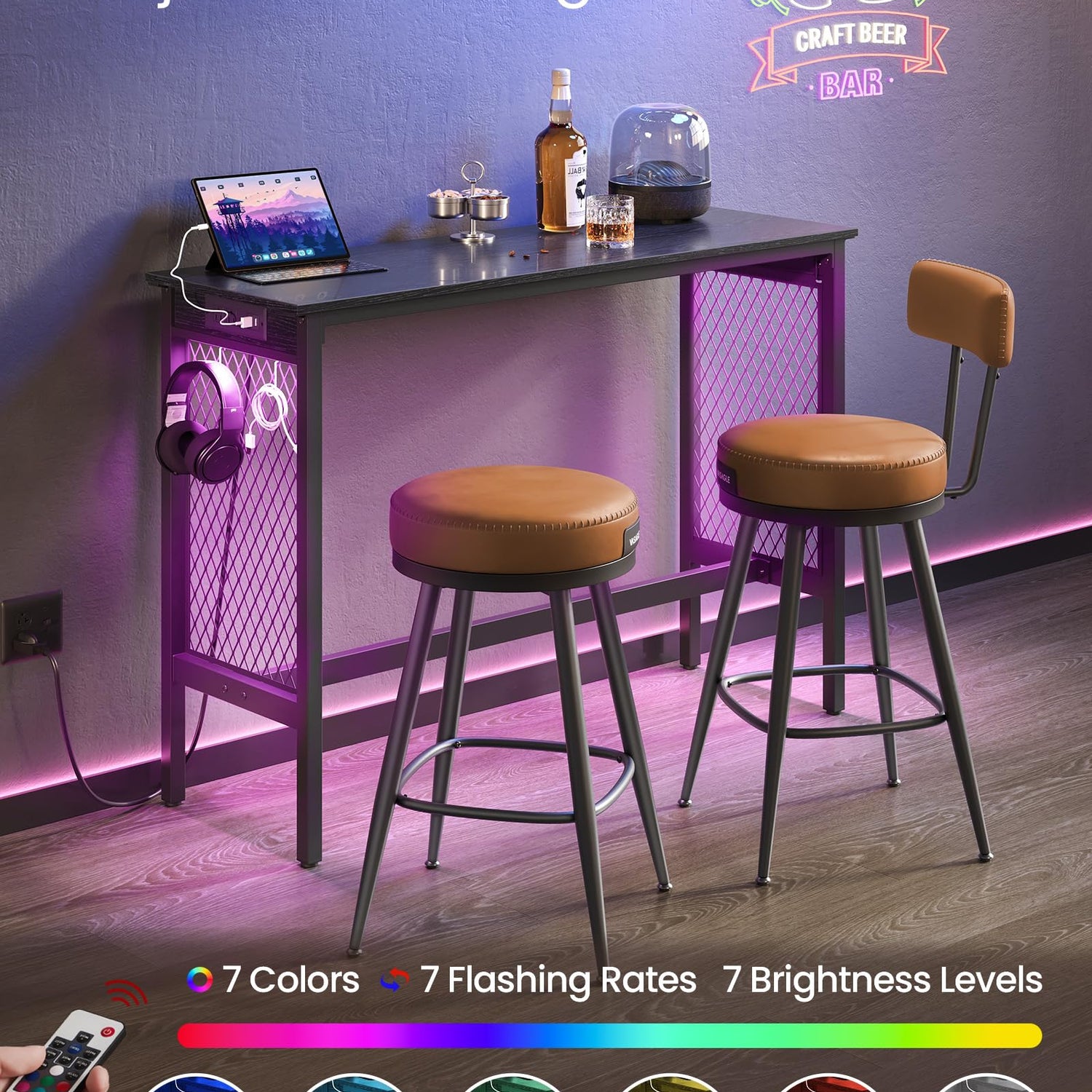 - 【Create Night Atmosphere】Equipped with built-in LED lighting, this high top table offers 2 lighting modes, 7 brightness levels, and 7 flashing rates. Easily create a personalized atmosphere to suit your study, work, or party entertainment needs