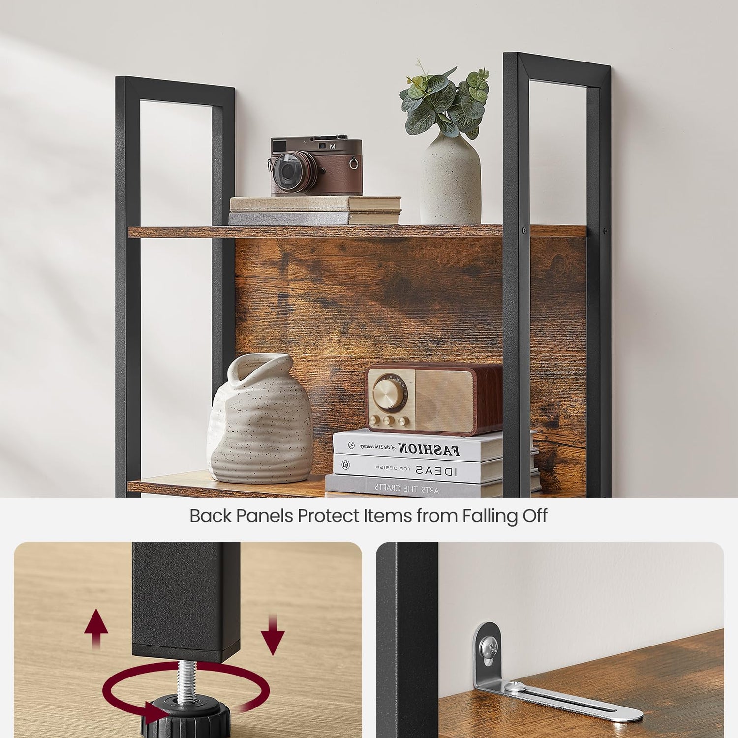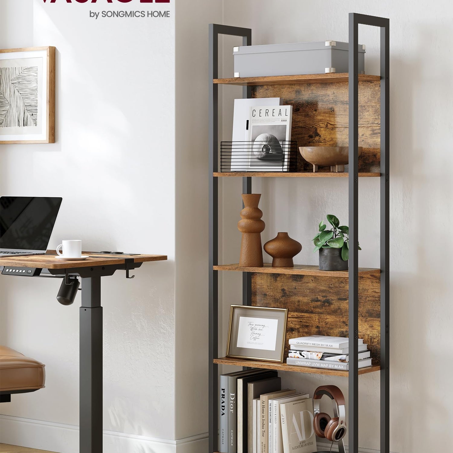 VASAGLE 5-Tier Bookshelf, Book Shelf, Industrial Bookcase, with Steel Frame, for Living Room, Home Office, Bedroom, 9.4 x 24.4 x 65 Inches, Rustic Brown and Black ULLS025B01