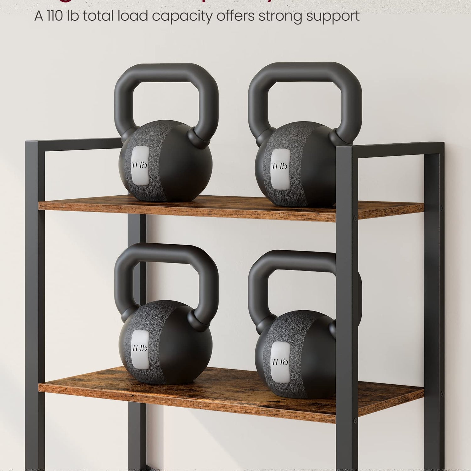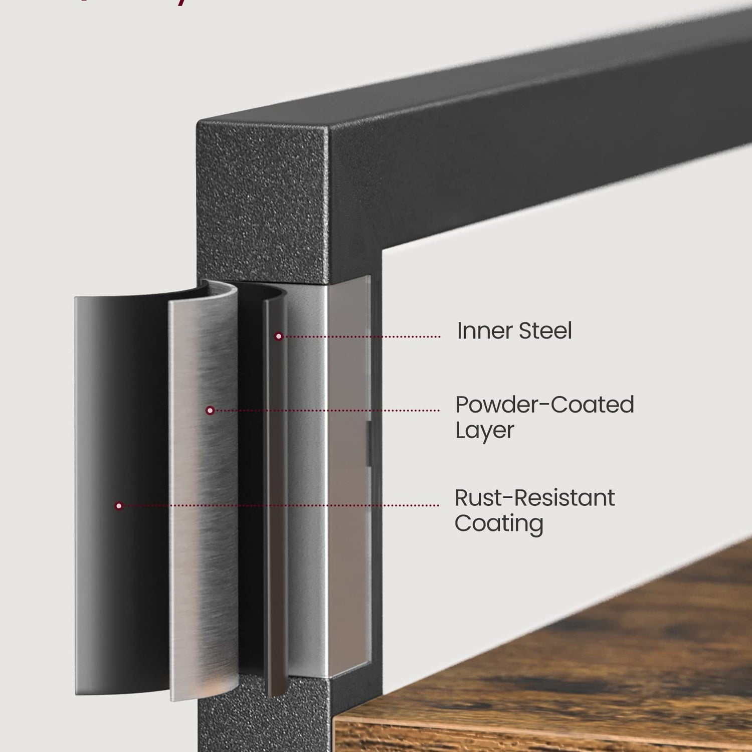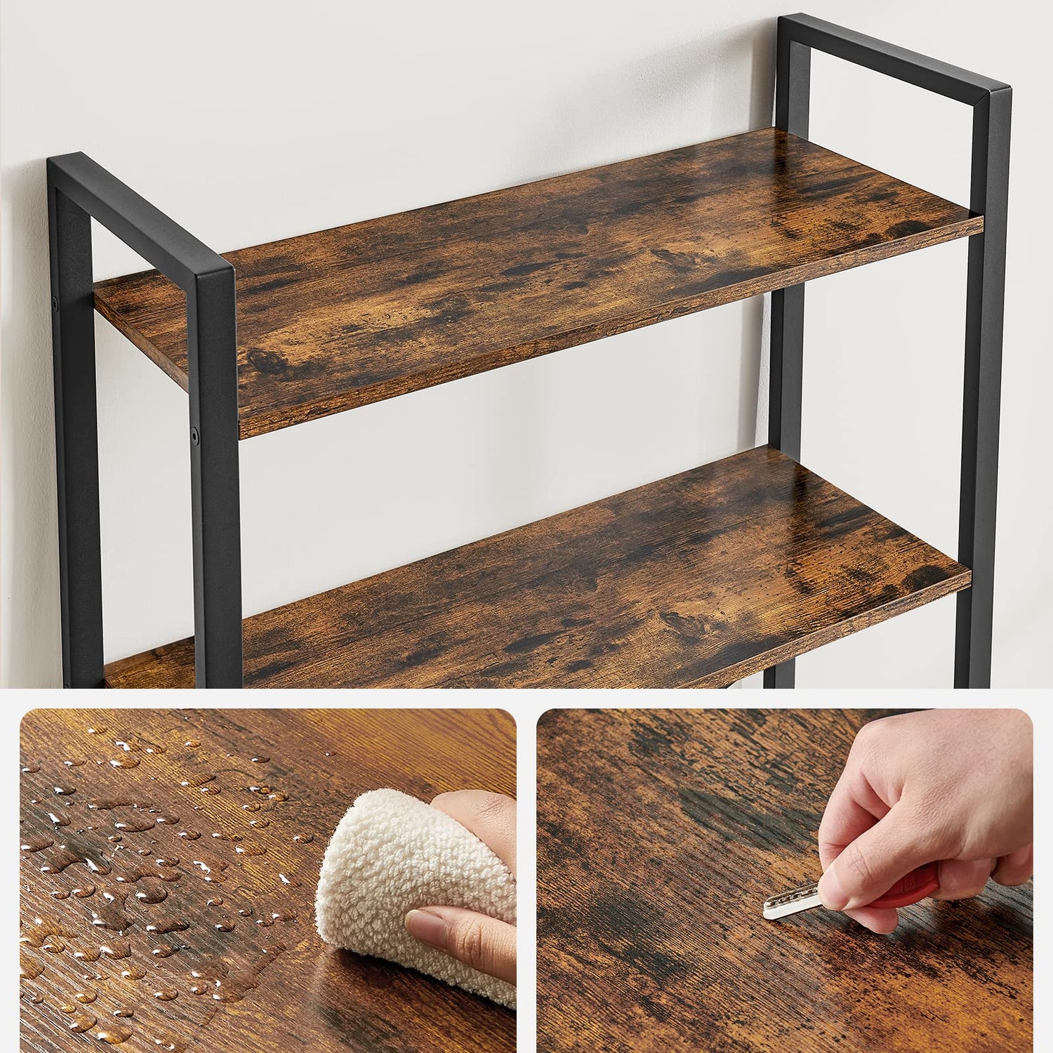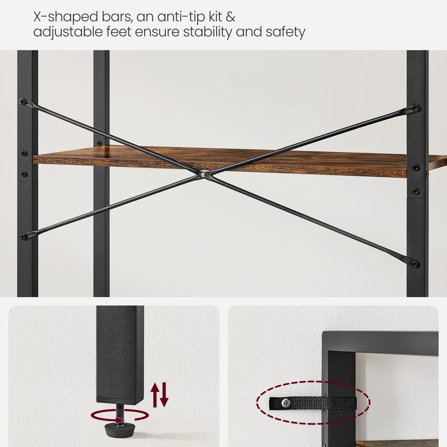 - Embrace an Industrial Vibe: The rustic brown shelves paired with a black steel frame create a stylish industrial look, allowing this freestanding shelf to fit seamlessly in with your home decor and give your space an instant update