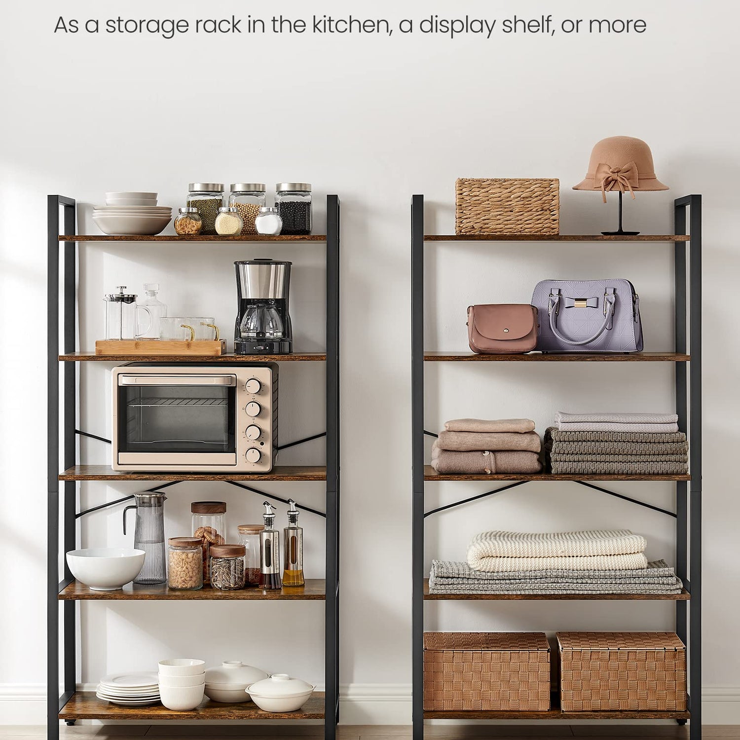 VASAGLE 5-Tier Bookshelf, Bookcase with Steel Frame, Book Shelf for Living Room, Home Office, Study, 11.8 x 26 x 60.2 Inches, Industrial Style, Rustic Brown and Ink Black ULLS061B01