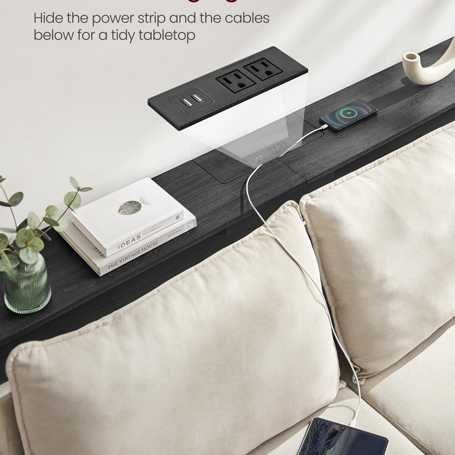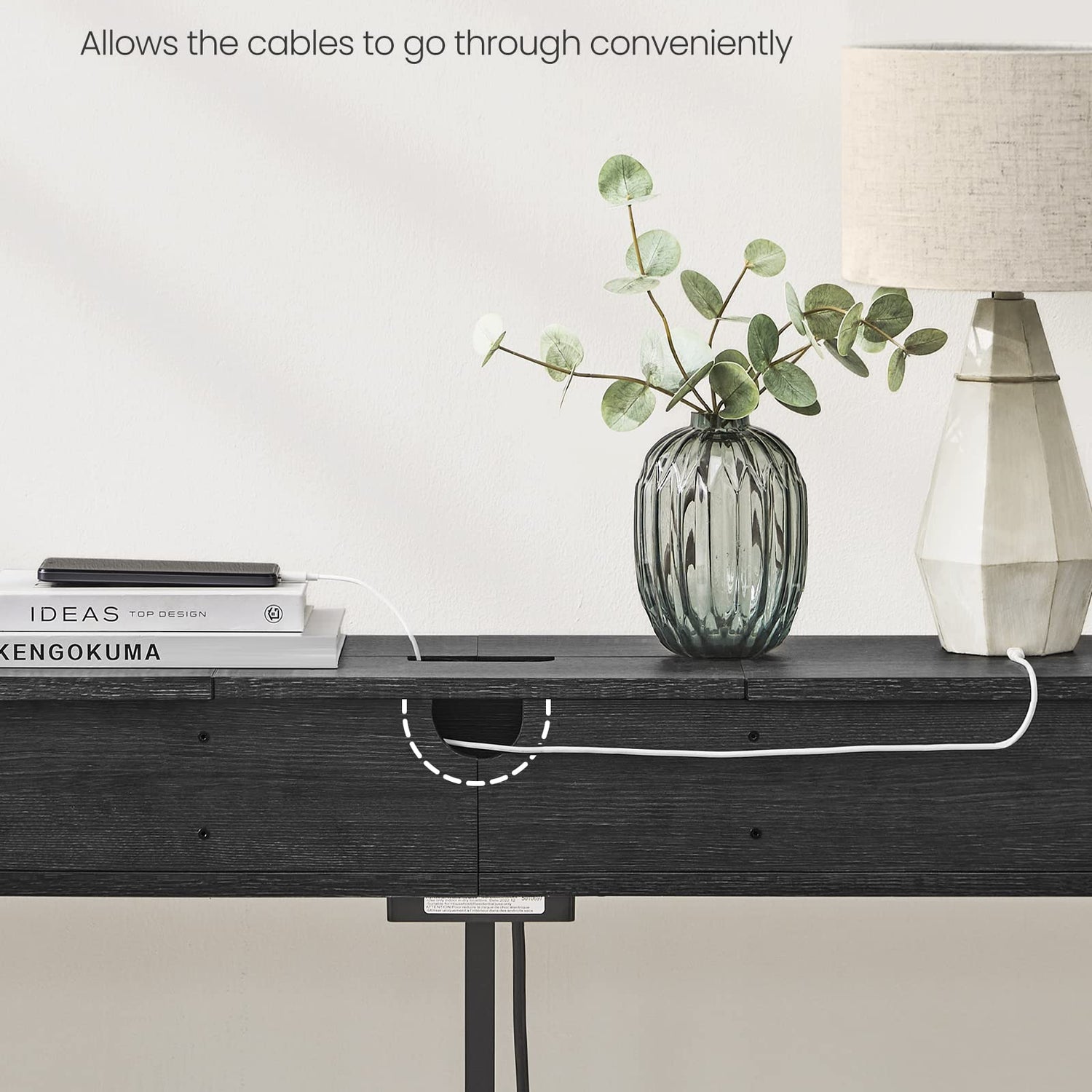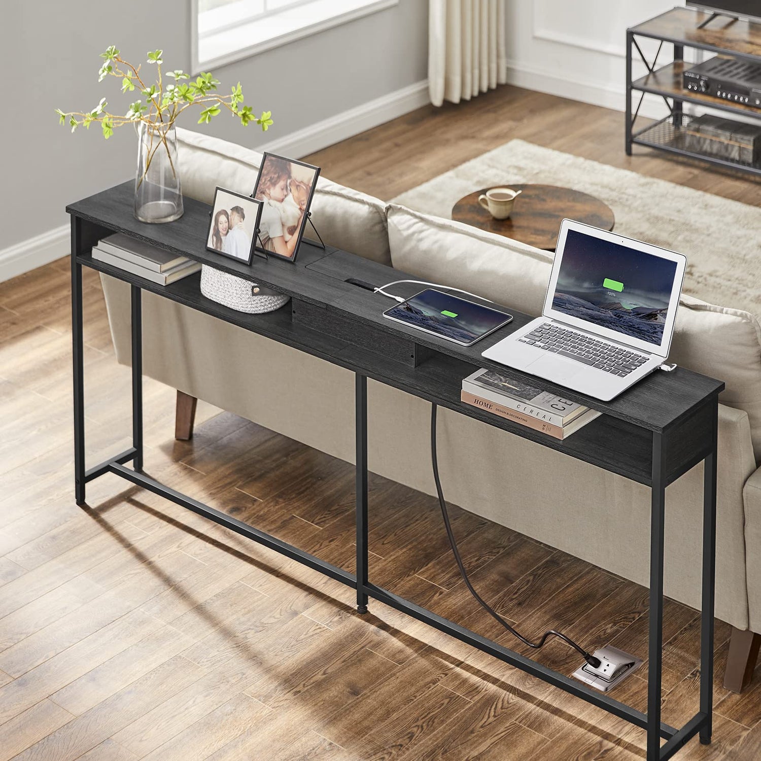 VASAGLE 70.9-Inch Console Table with Outlet and Shelves, Sofa Table with Charging Station, Behind Couch Table Skinny, Entryway Table for Hallway, Living Room, Charcoal Gray and Ink Black ULNT118B22
