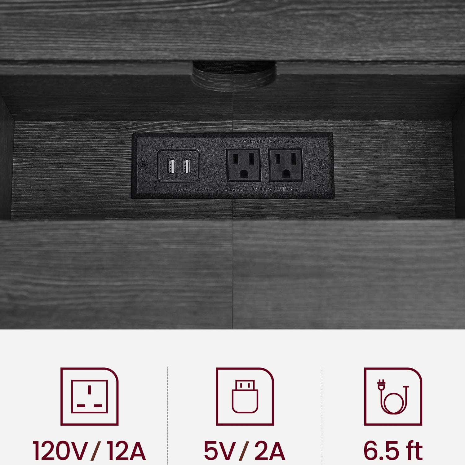 - [Tidy Up Your Tabletop] The power strip is hidden in an accessible compartment and the cable hole on the back helps guide the cables underneath to keep the tabletop organized