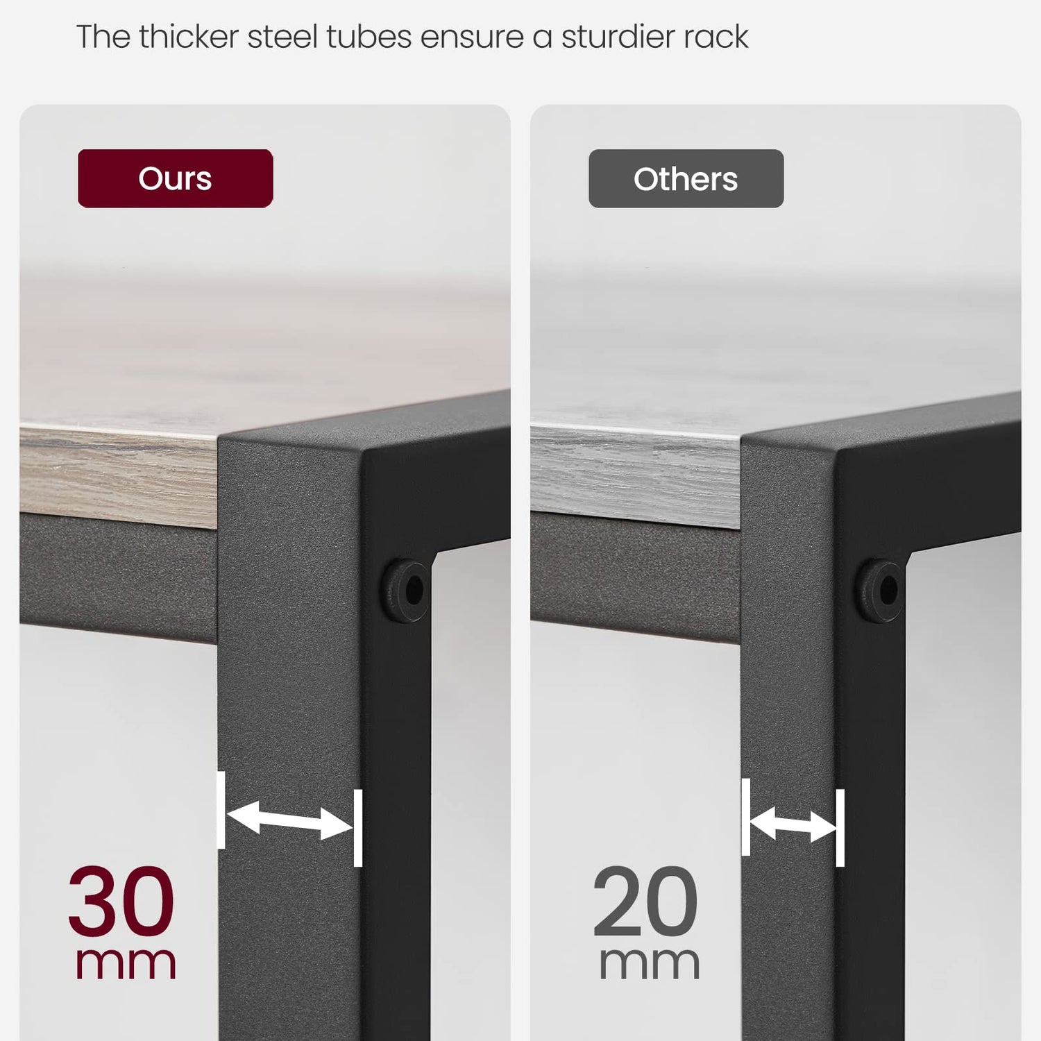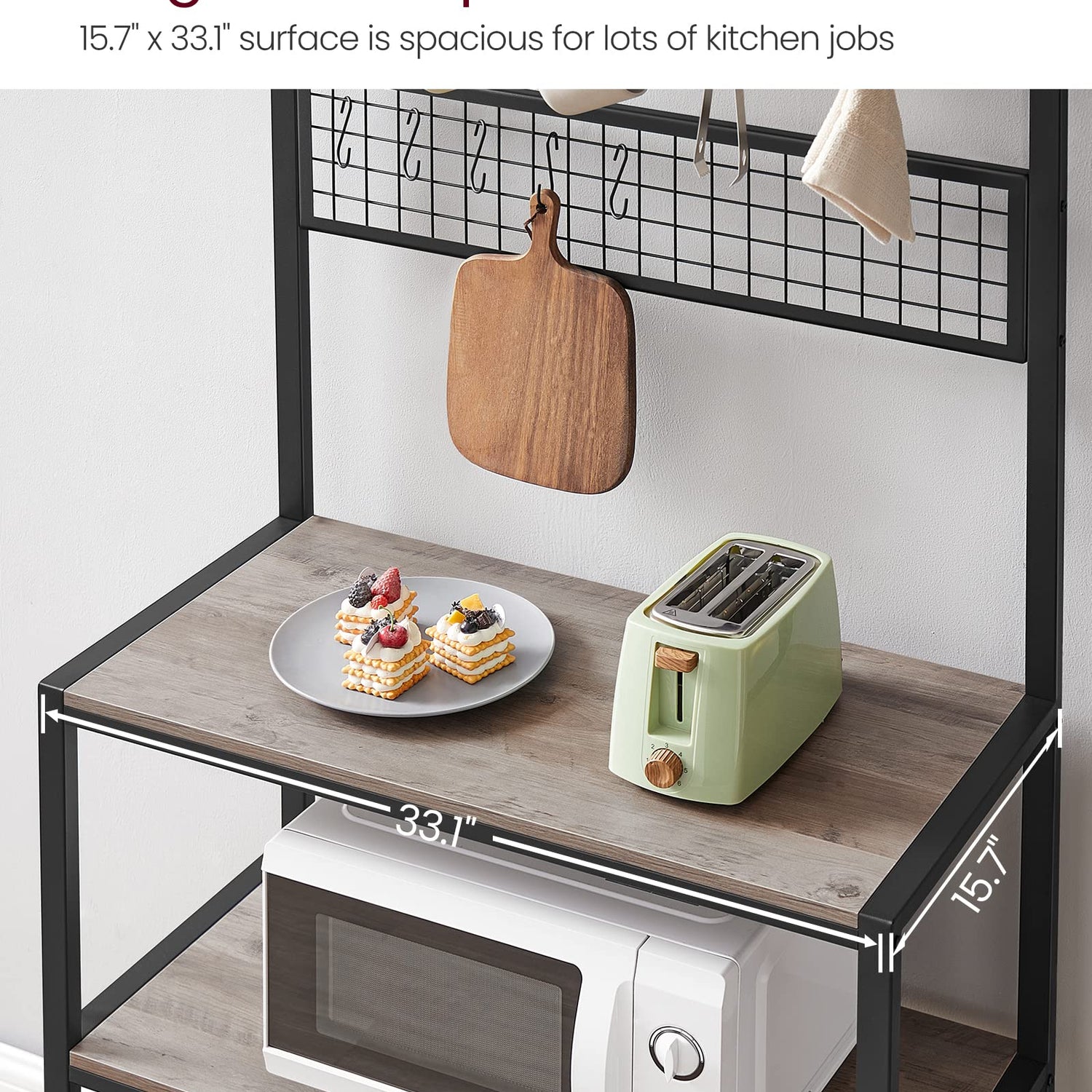 - Oven, Microwave, Coffee Machine: If all of these are essential items for you, don’t worry! Strong steel frame and quality 15 mm thick particleboard have the strength, so you can put nearly all you need on this kitchen shelf