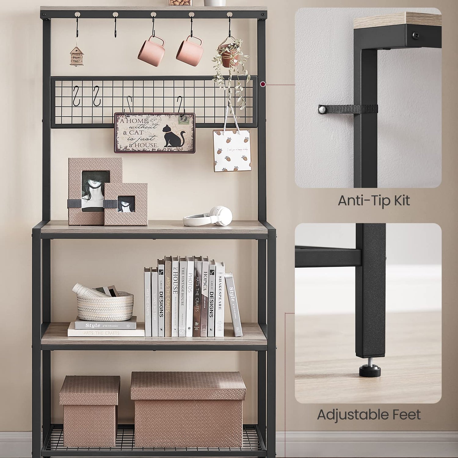 - What You Get: An unique industrial style bakers rack from the ALINRU Collection, a clear instructions for easy assembly, an anti-tip kit for extra stability