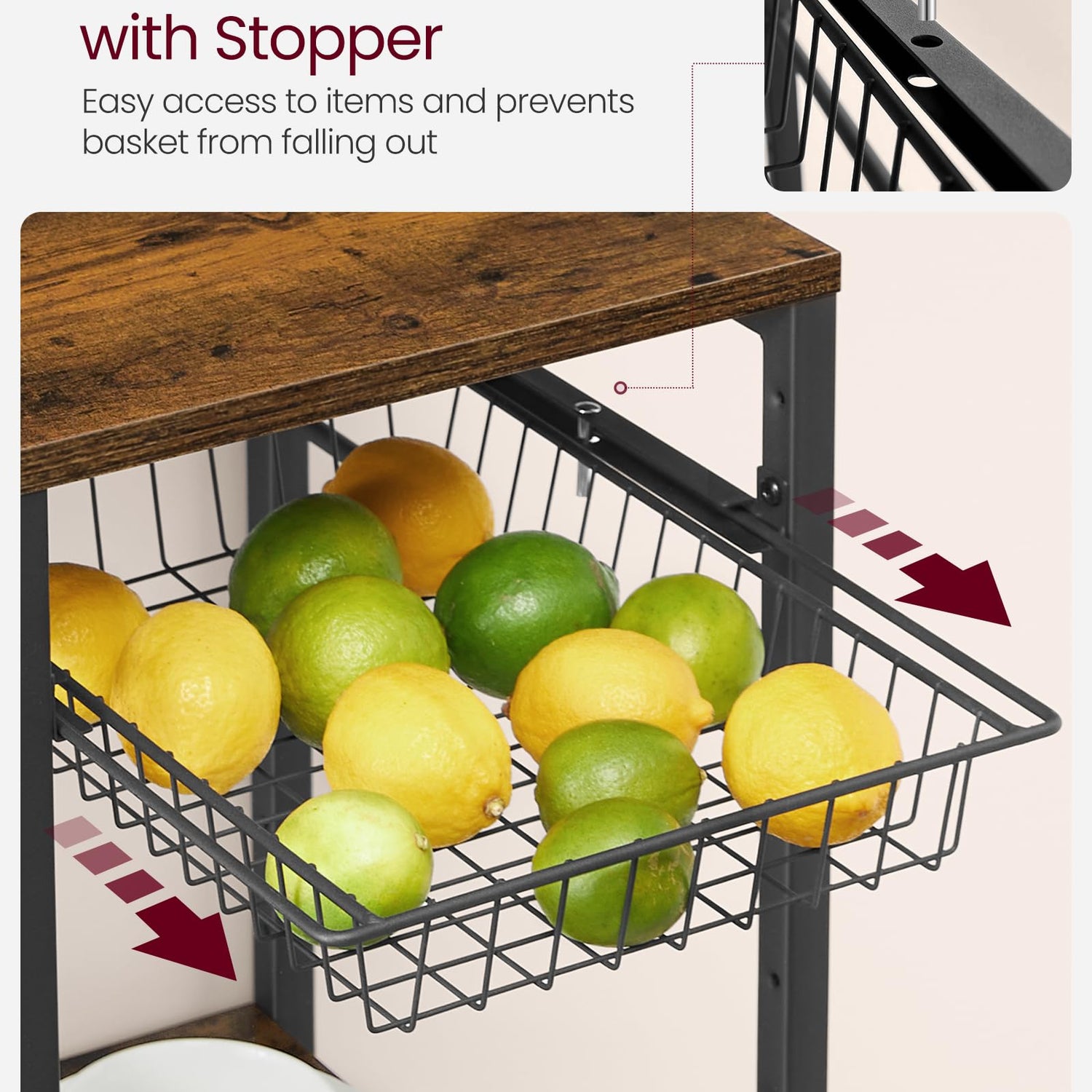 - [Versatile Storage] This standing bakers rack offers various storage options with 4 shelves, a wire basket with stoppers that prevent falls, and a large tabletop, facilitating easy organization of your kitchen essentials