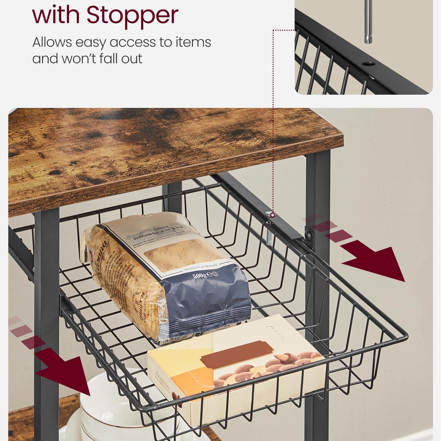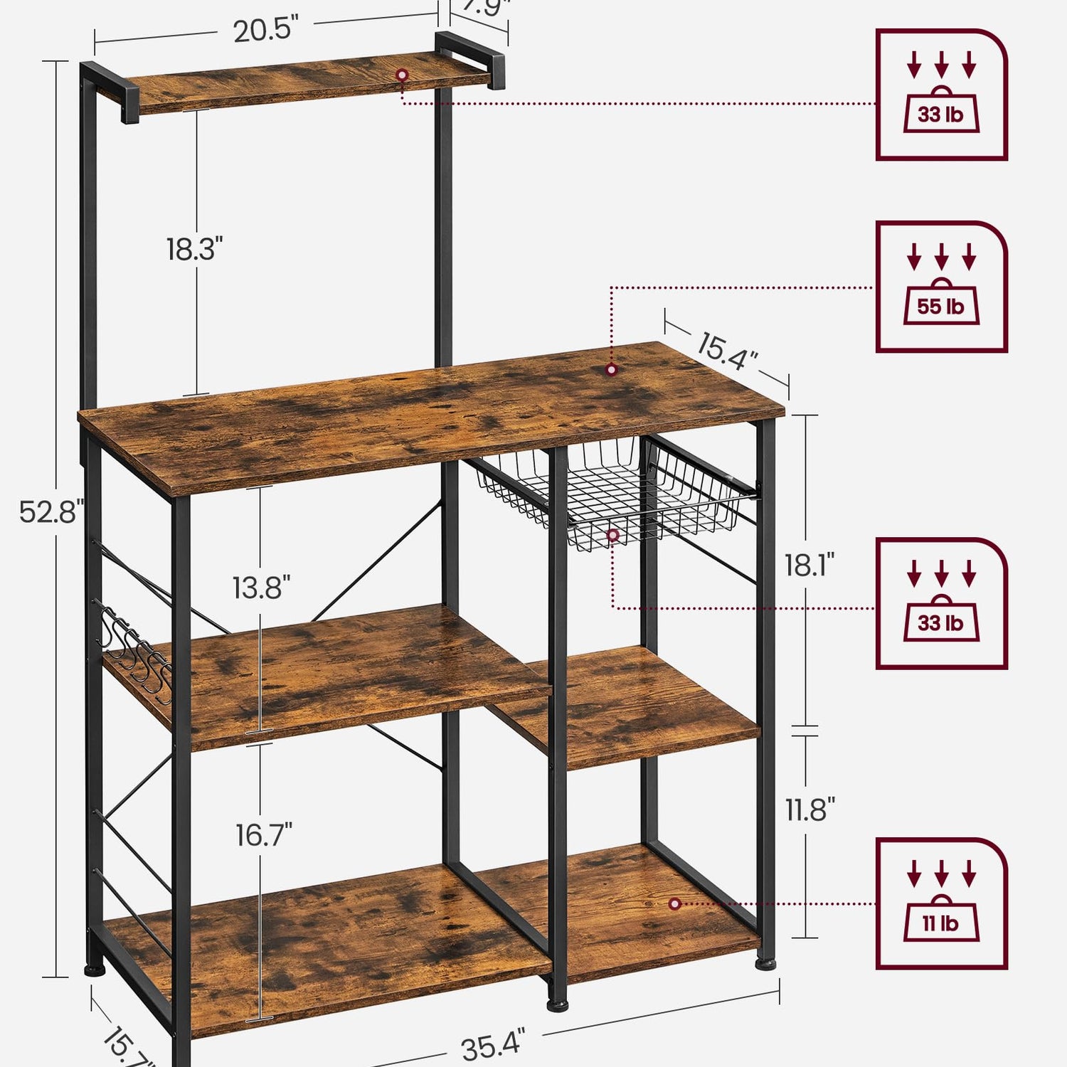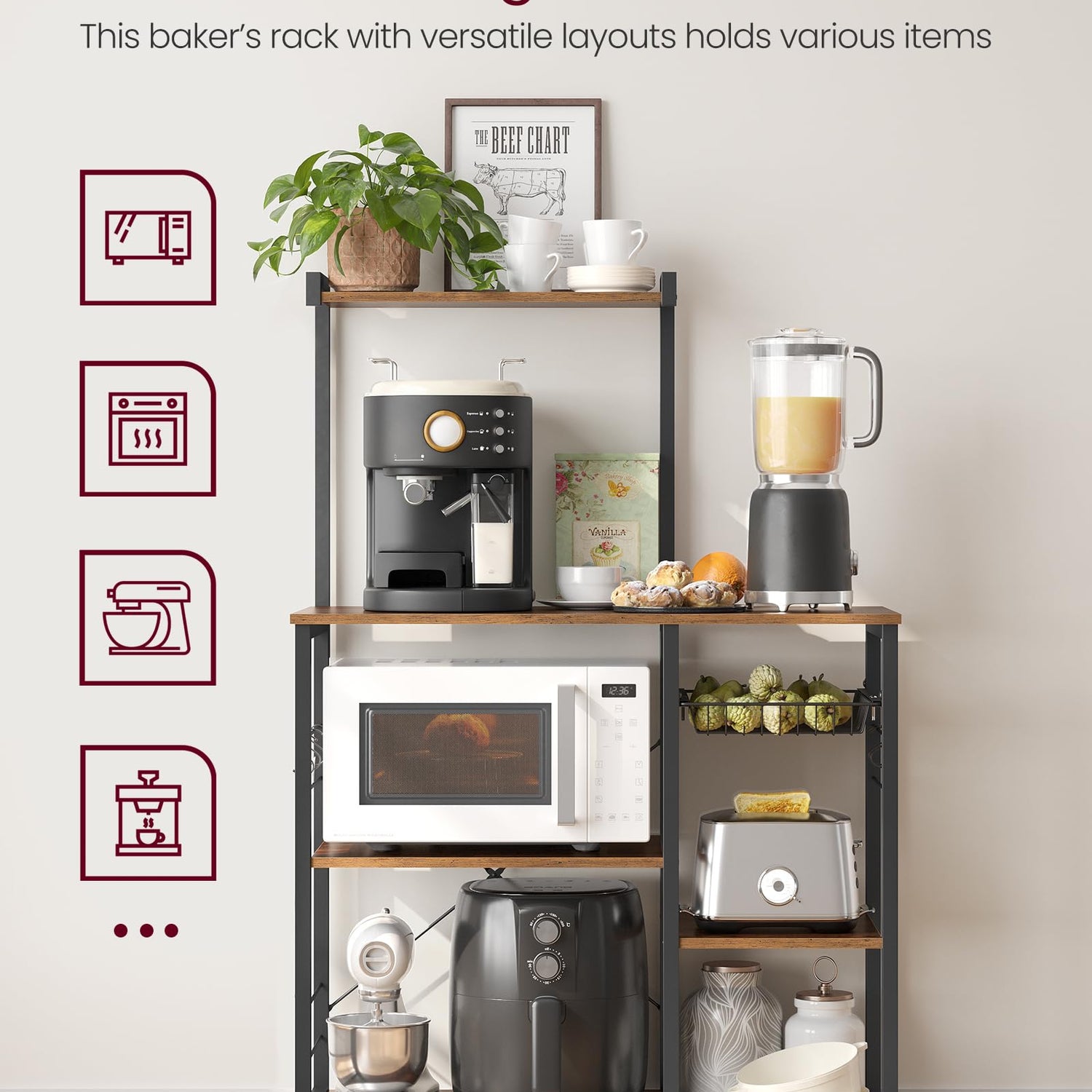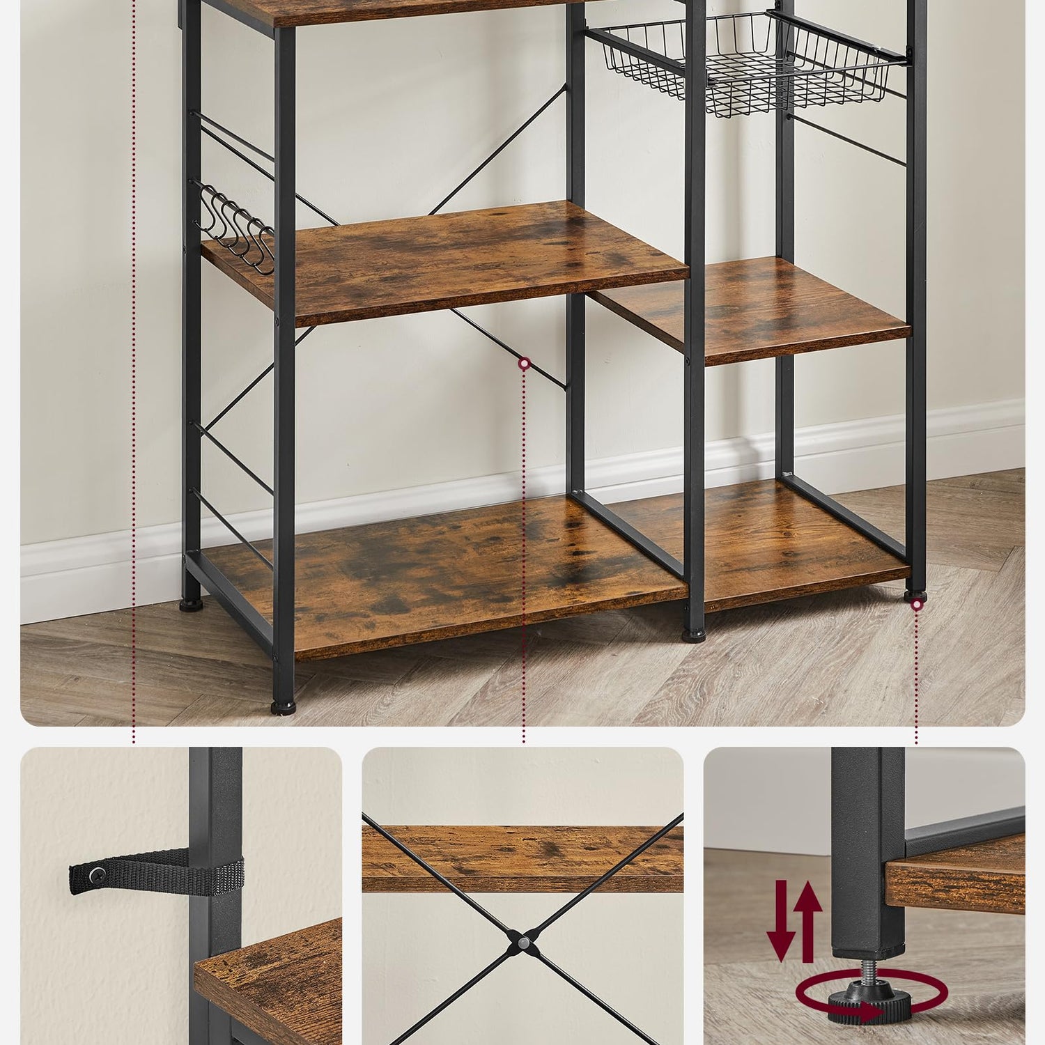 Transform your kitchen with the VASAGLE Rustic Brown Kitchen Storage Rack, where modern design meets everyday functionality.