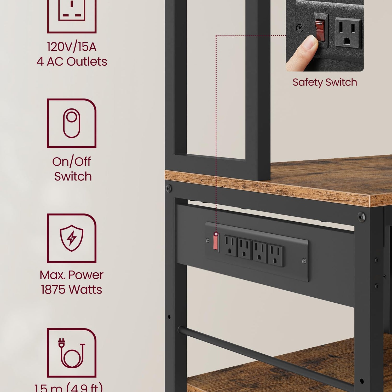 - [Safe Charging Station] This baker’s rack has a built-in power strip with 4 AC outlets, supporting up to 1875 watts. It also features overload protection, current leakage protection, and an on-off switch for safety!