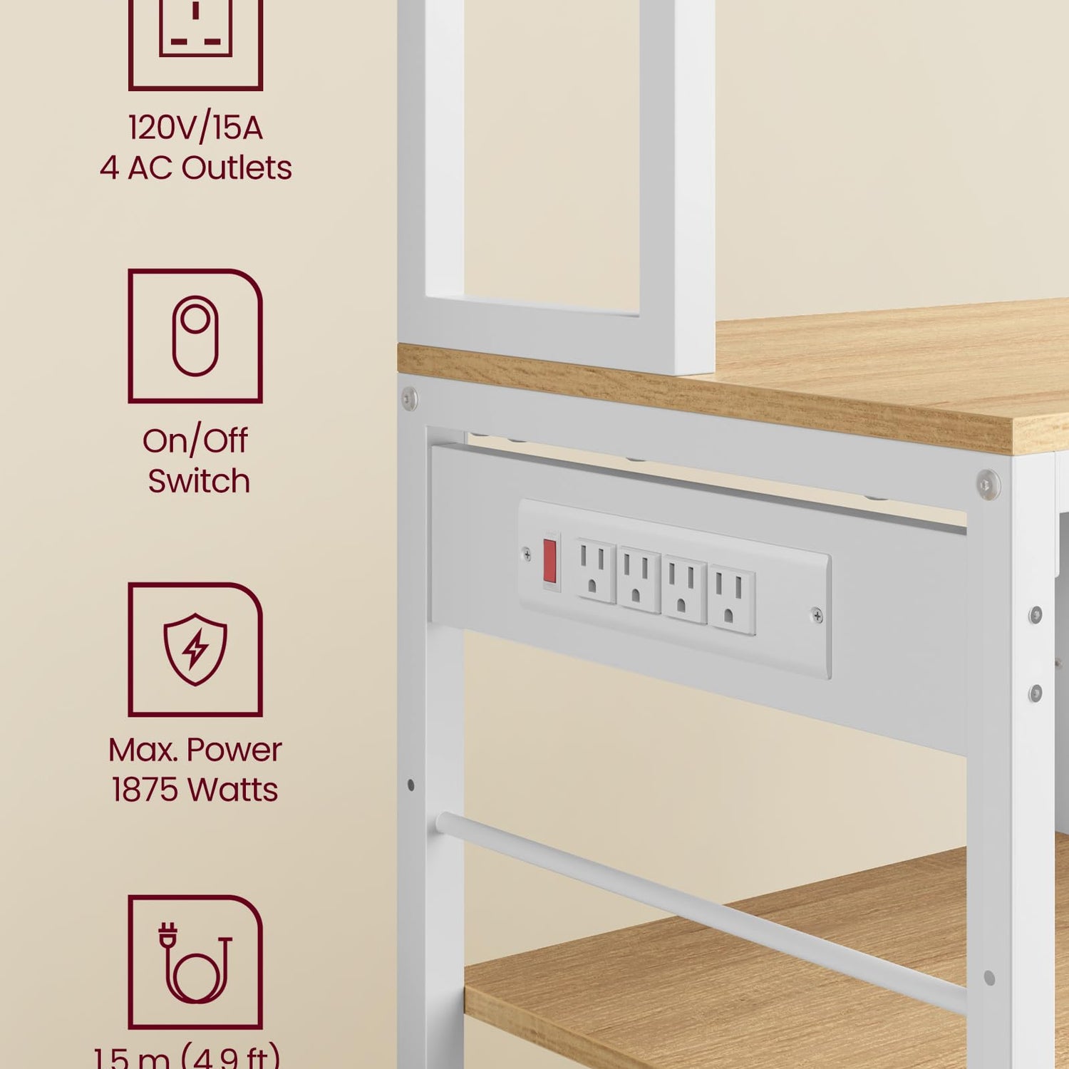 - [Safe Charging Station] This baker’s rack has a built-in power strip with 4 AC outlets, supporting up to 1875 watts. It also features overload protection, current leakage protection, and an on-off switch for safety!