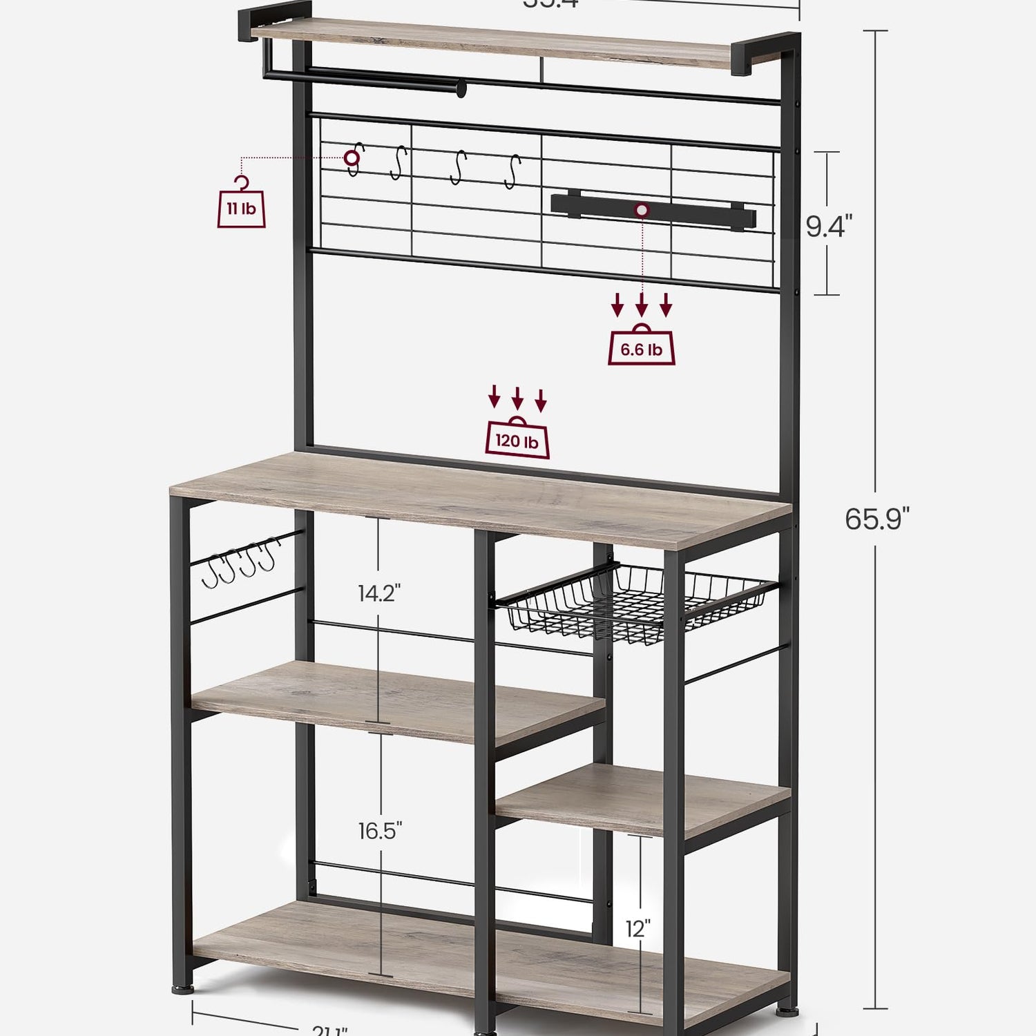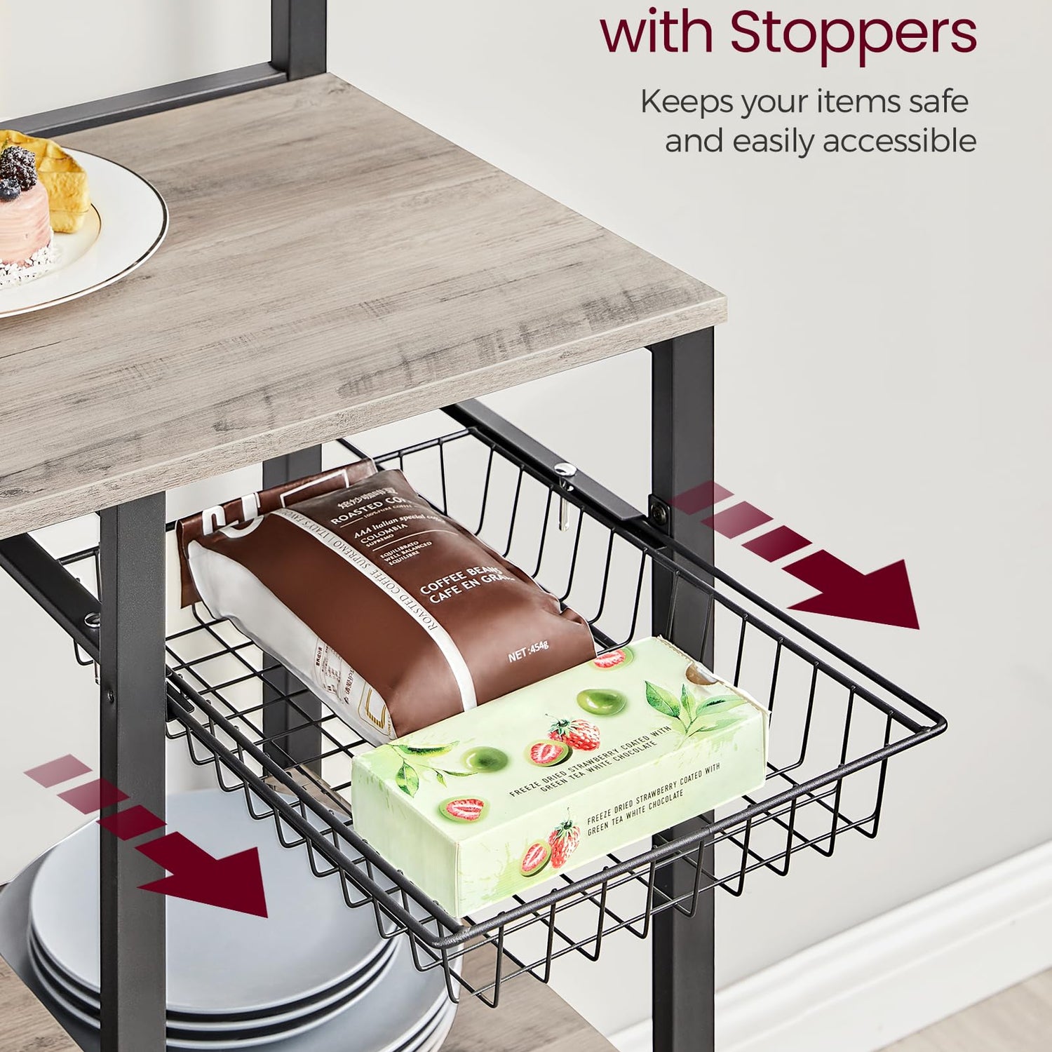 Transform your kitchen into an organised haven with the VASAGLE Greige and Black Bakers Rack.