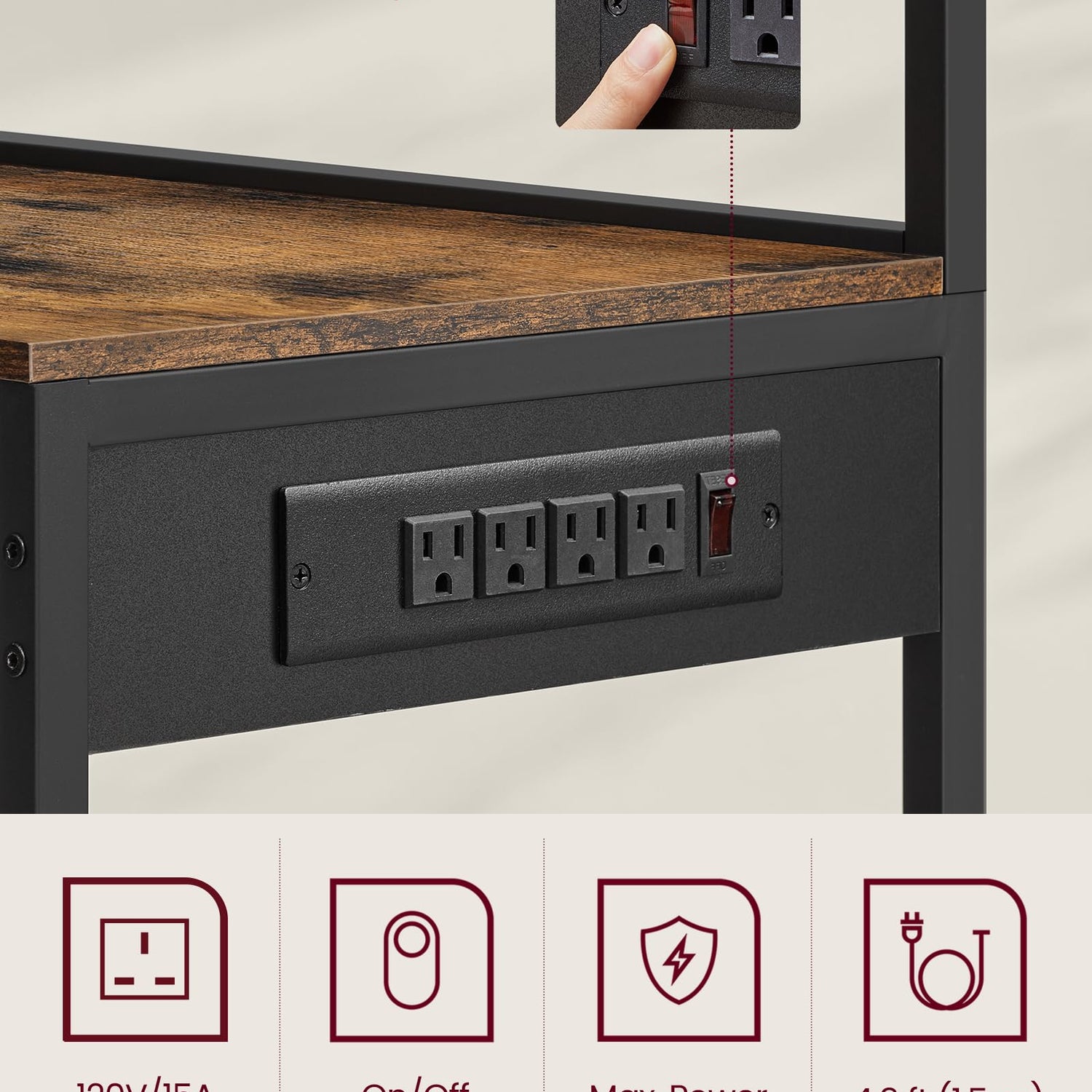- [Safe Charging Station] This baker's rack features a power outlet with 4 AC outlets, equipped with overload, leakage protection, and an on/off switch, ensuring safe powering of multiple appliances