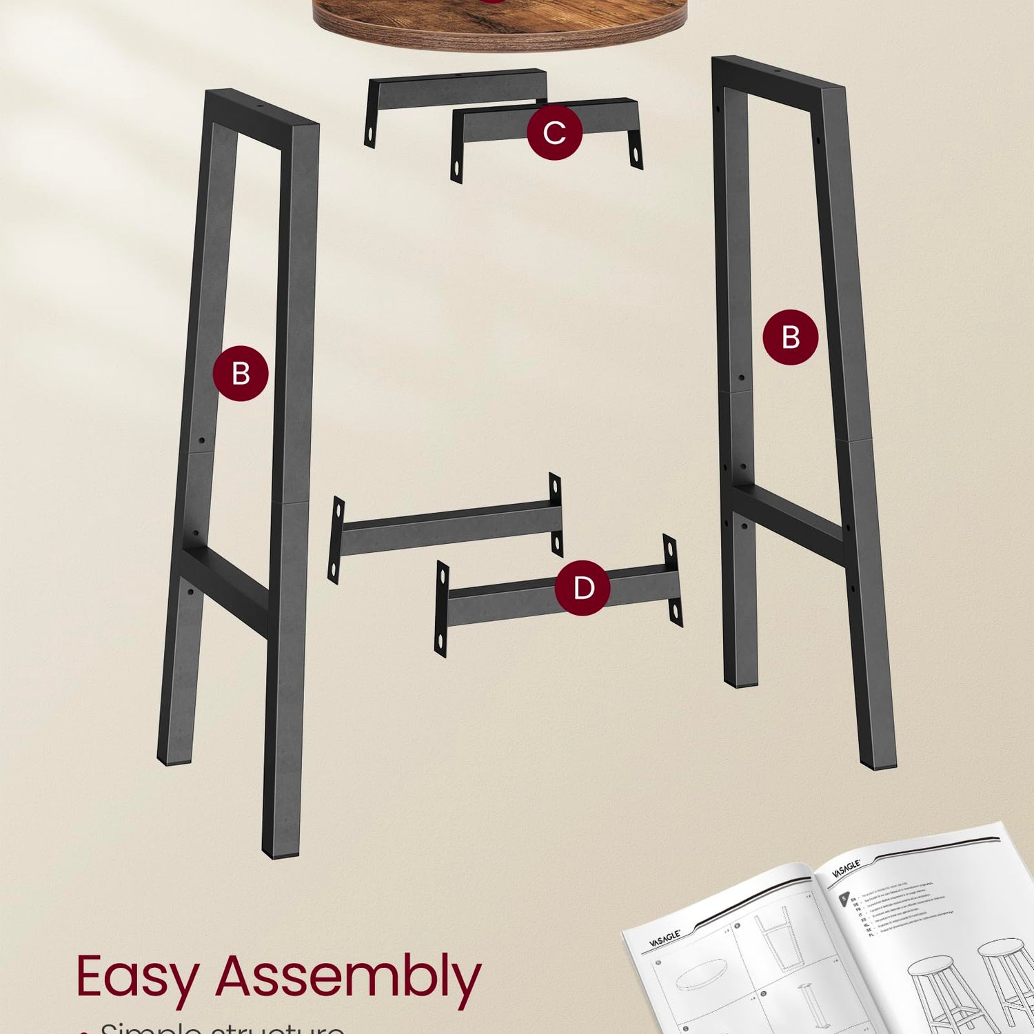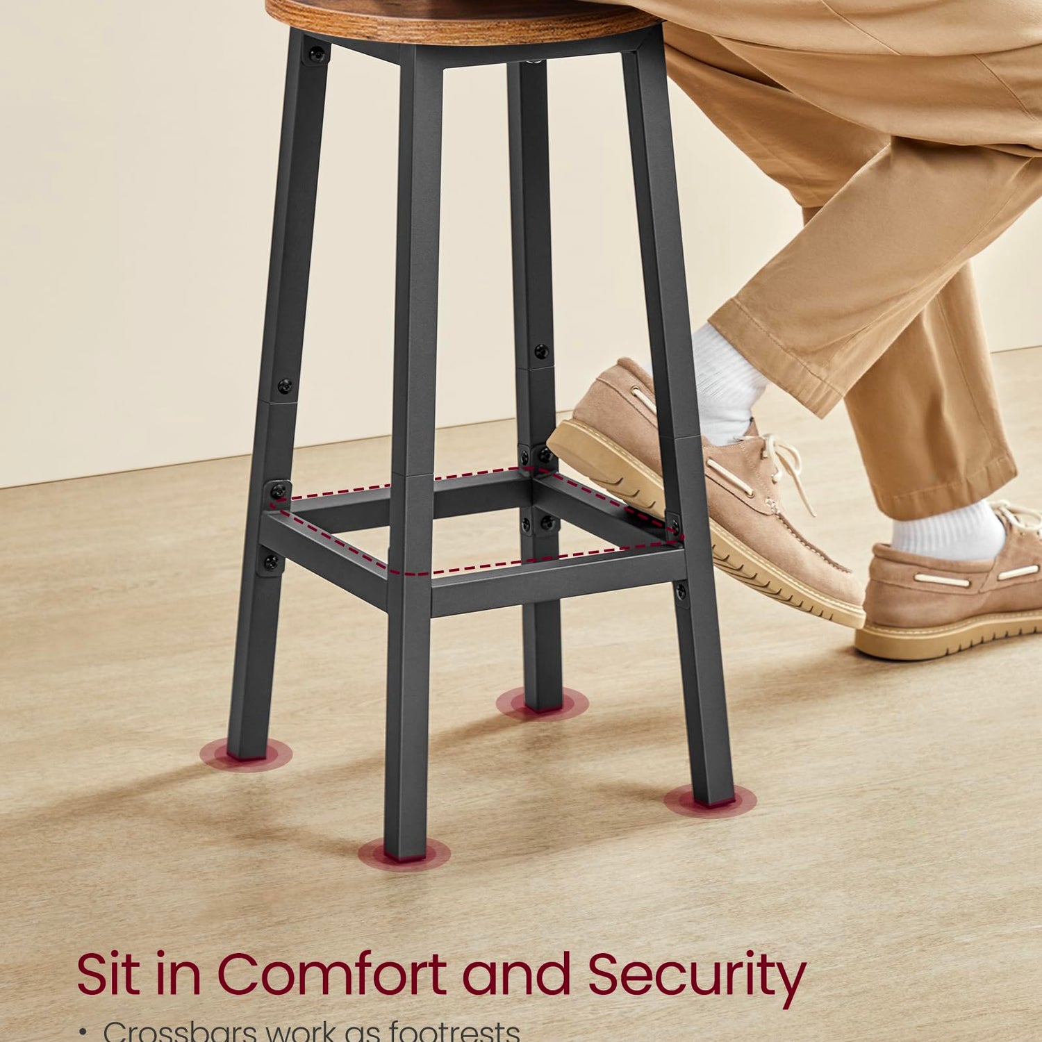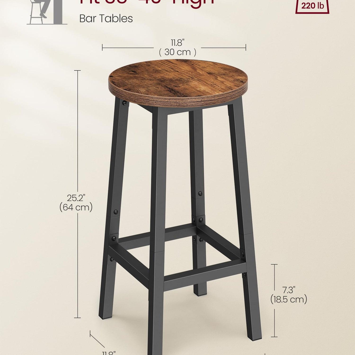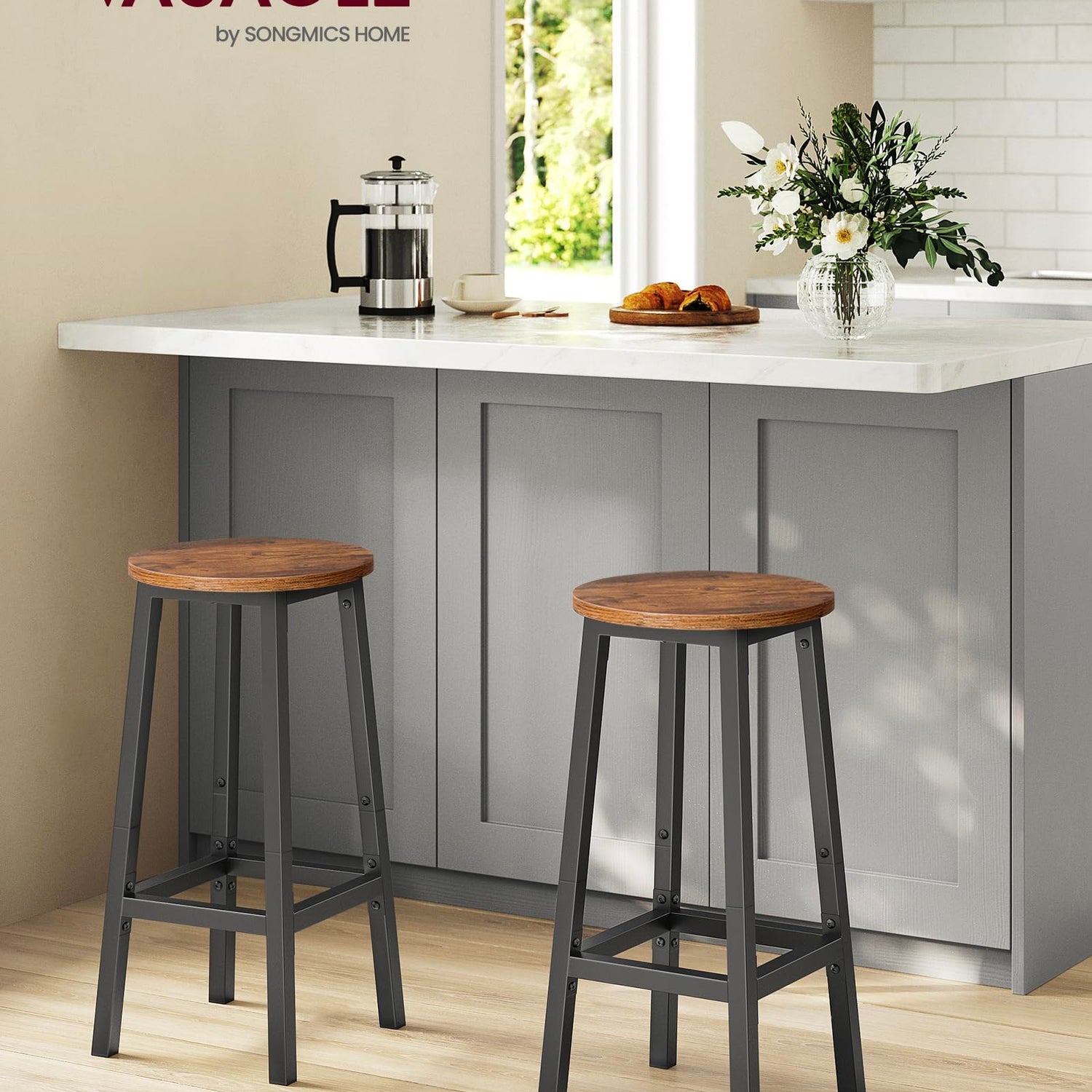 VASAGLE Bar Stools, Set of 2 Bar Chairs, Steel Frame, 25.2 Inch Tall, for Kitchen Dining, Easy Assembly, Industrial Design, Rustic Brown and Black ULBC32X