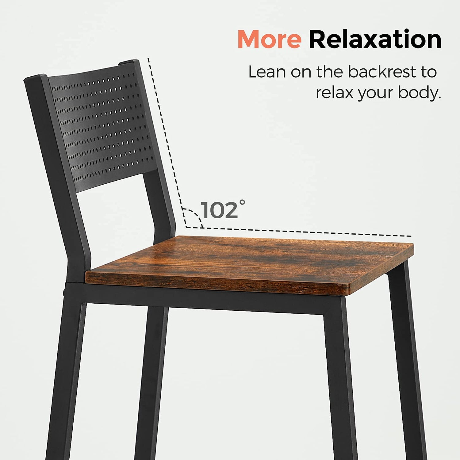 VASAGLE Bar Stools, Set of 2 Bar Chairs, Tall Bar Stools with Backrest, Industrial in Party Room, Rustic Brown and Black ULBC070B01