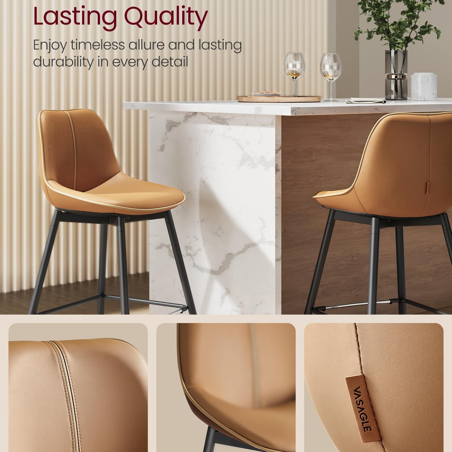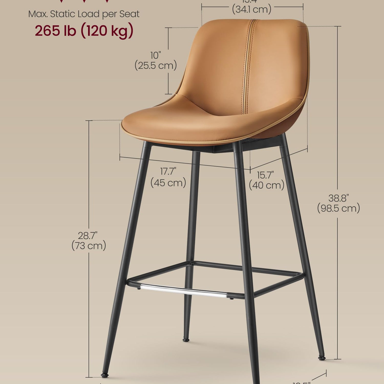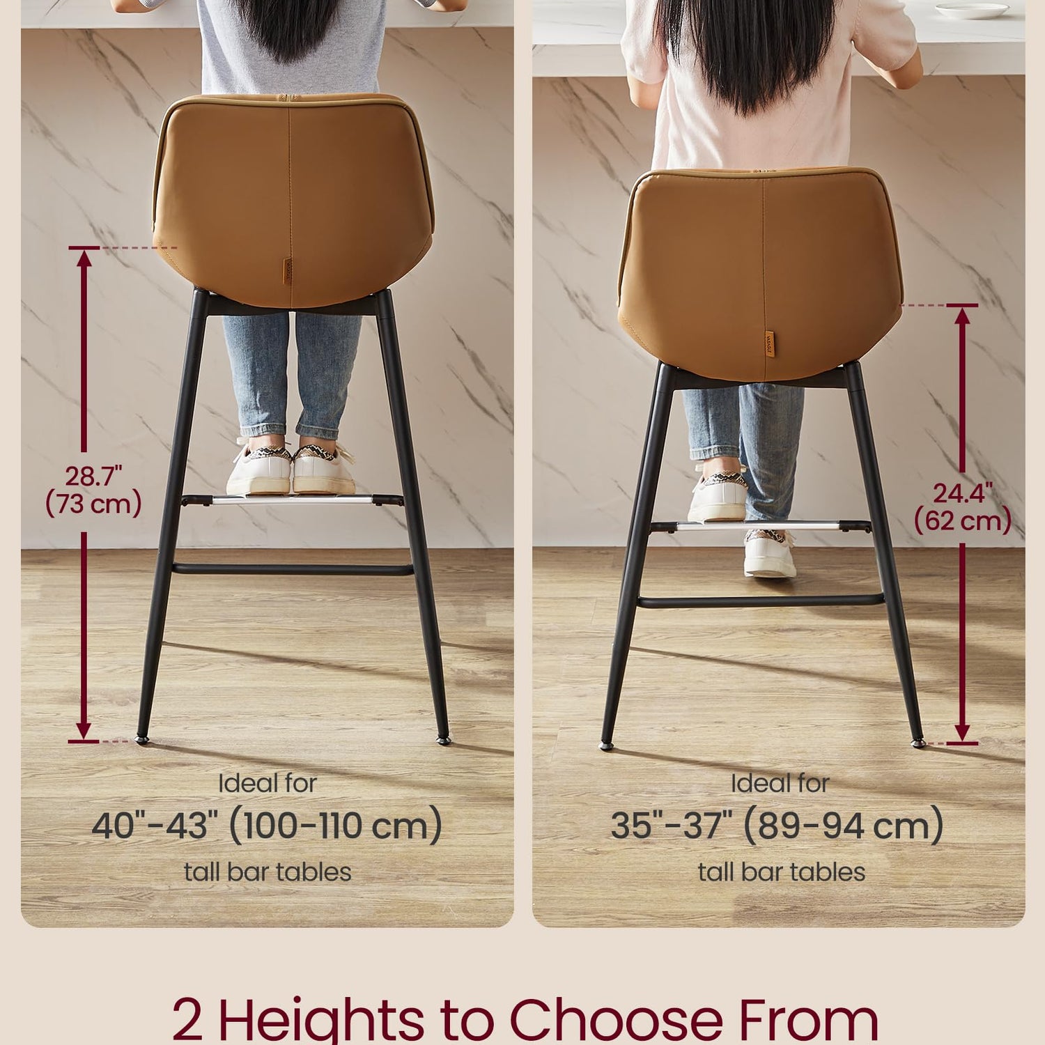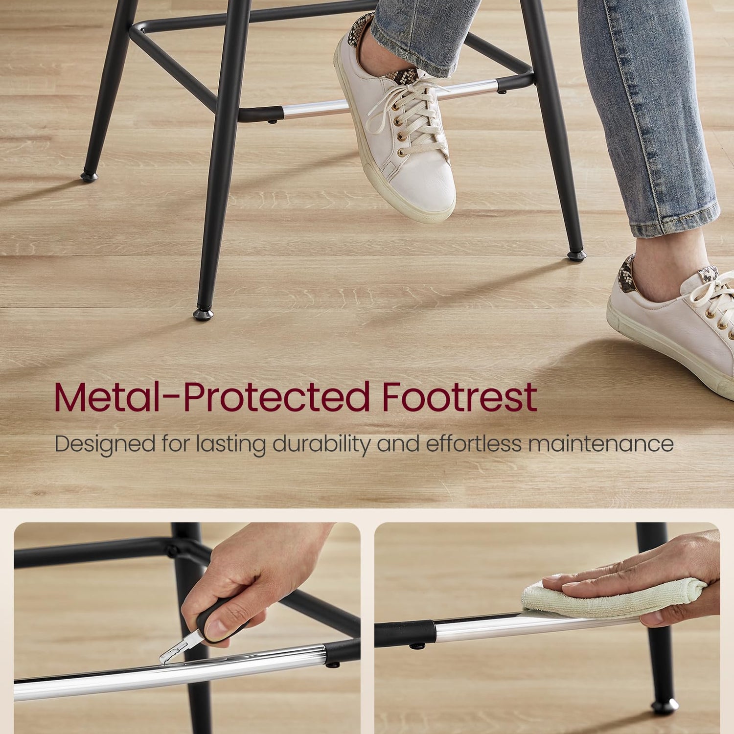 - [Durable Footrest with Metal Protection] Each of these breakfast stools features a metal-protected footrest, designed for durability and ease of cleaning, even when stepped on with shoes