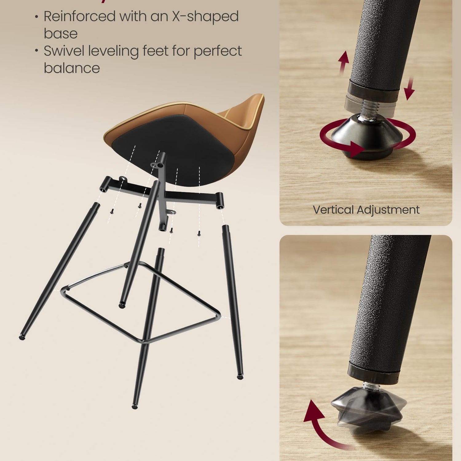 - [Enhanced Stability] Say goodbye to unstable seating! Our high stools feature a robust steel frame and come with swivel leveling feet, ensuring stability even on slightly uneven surfaces, all while keeping your floor scratch-free