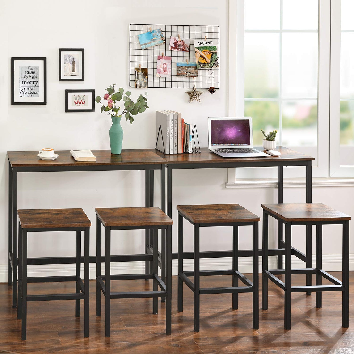 VASAGLE Narrow Industrial Bar Table in Rustic Brown and Ink Black - Perfect for Small Spaces