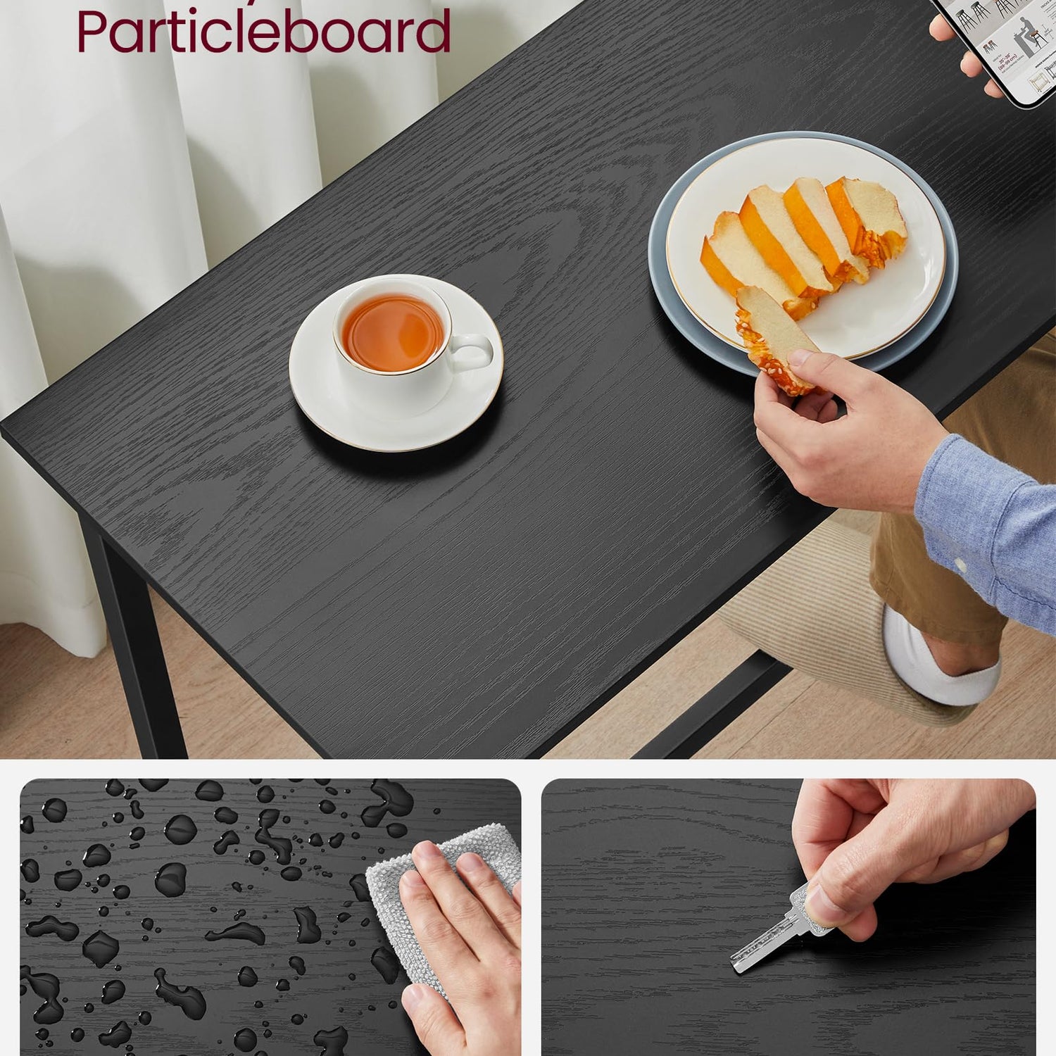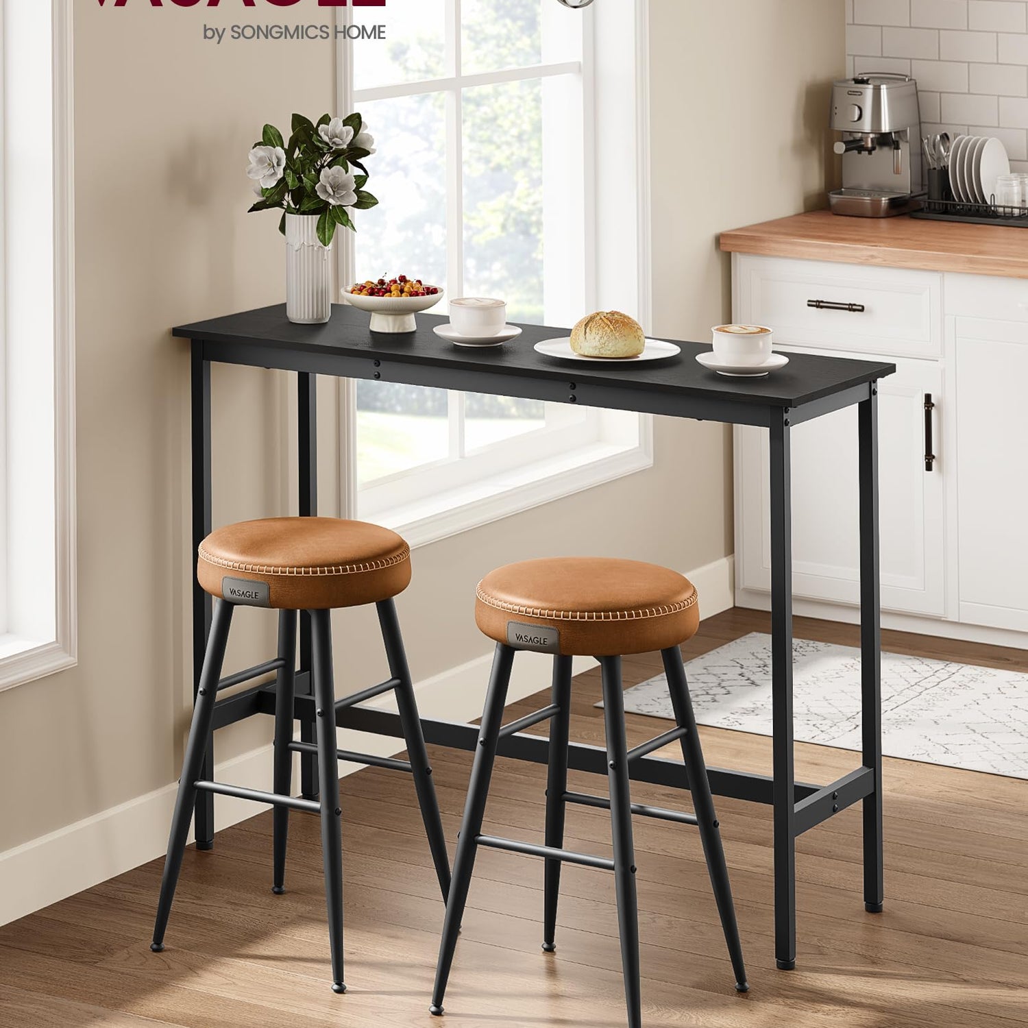- [So Simple, So Good] Sometimes a simple breakfast of bread and cheese is all you need; this simple bar table with metal legs and a smooth ebony black finish is all your dining area needs