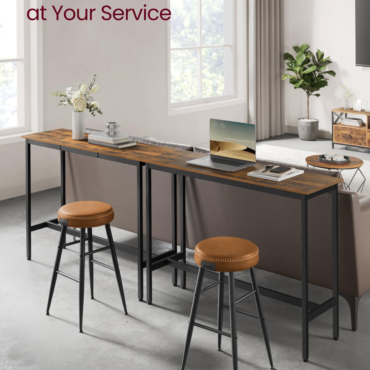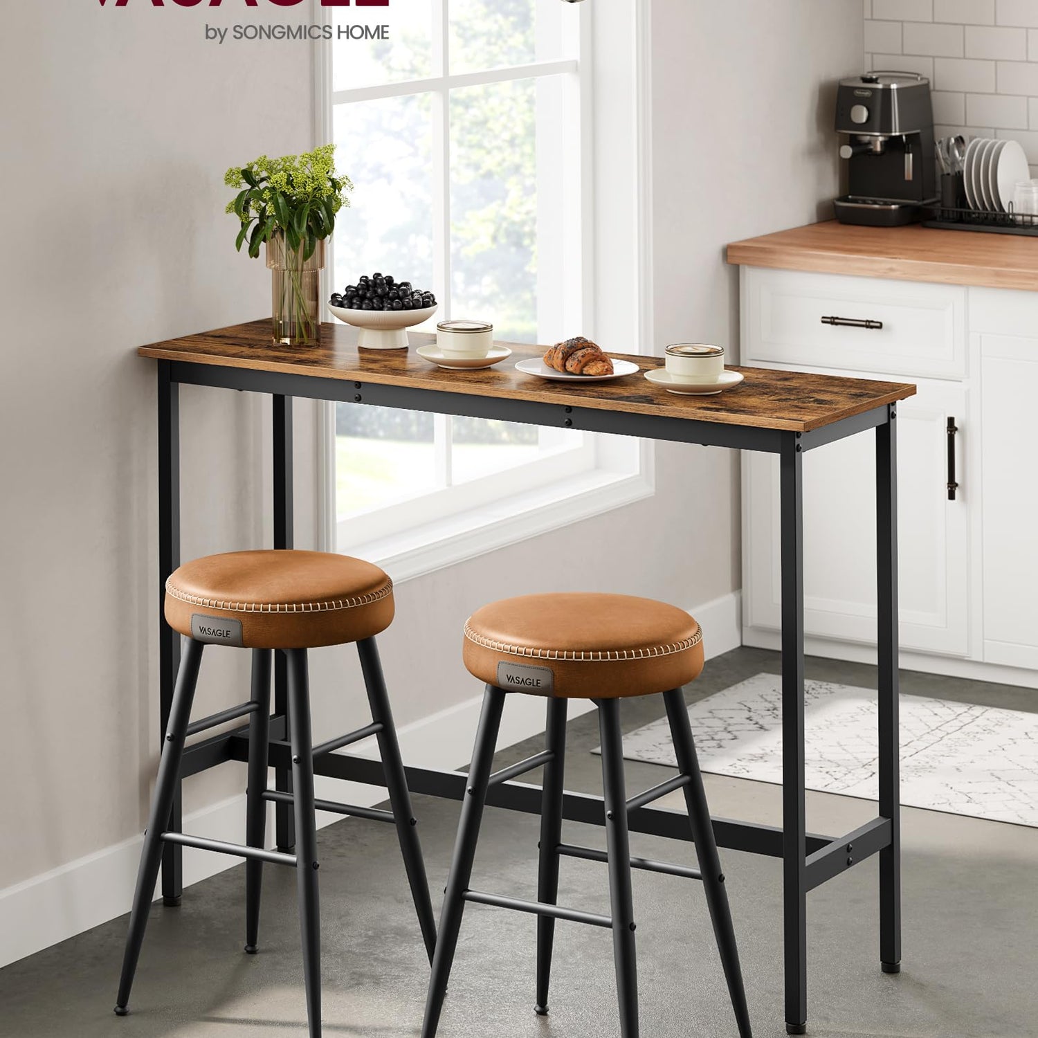 Elevate your dining experience with the VASAGLE Narrow Rustic Brown Bar Table—where simplicity meets style!