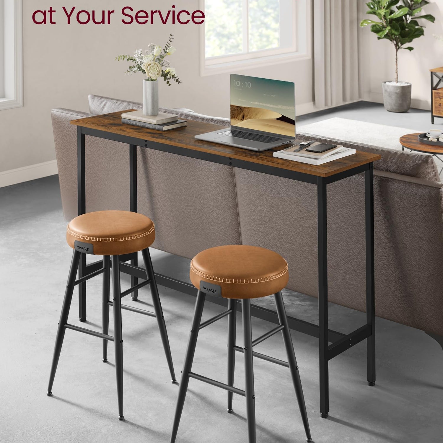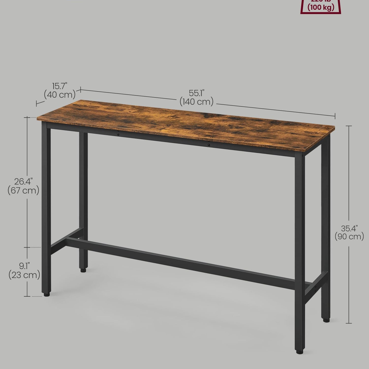 VASAGLE Bar Table, Narrow Long Bar Table, Kitchen Dining Table, High Pub Table, Sturdy Metal Frame, Industrial Design, 15.7 x 55.1 x 35.4 Inches, Rustic Brown and Ink Black ULBT140B01
