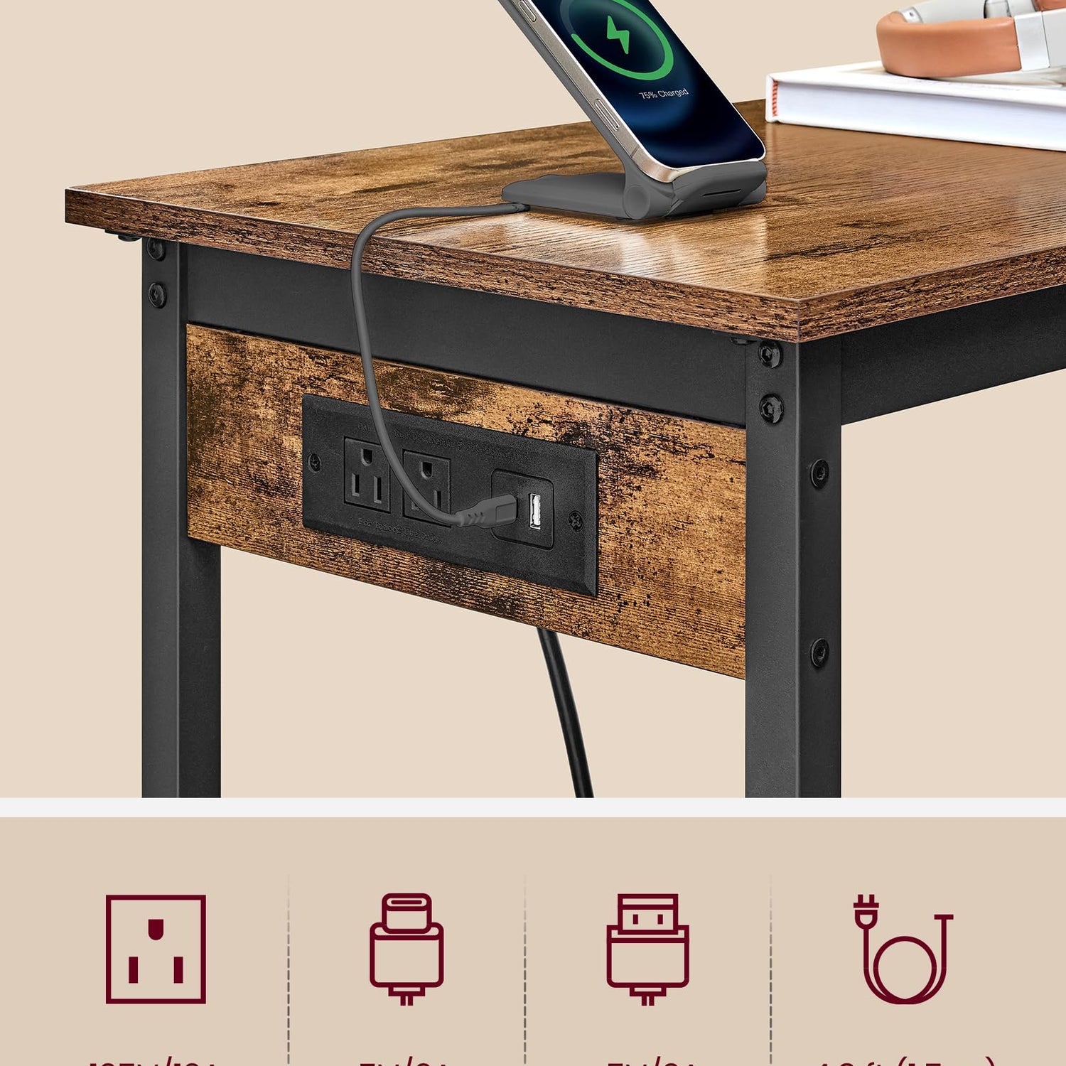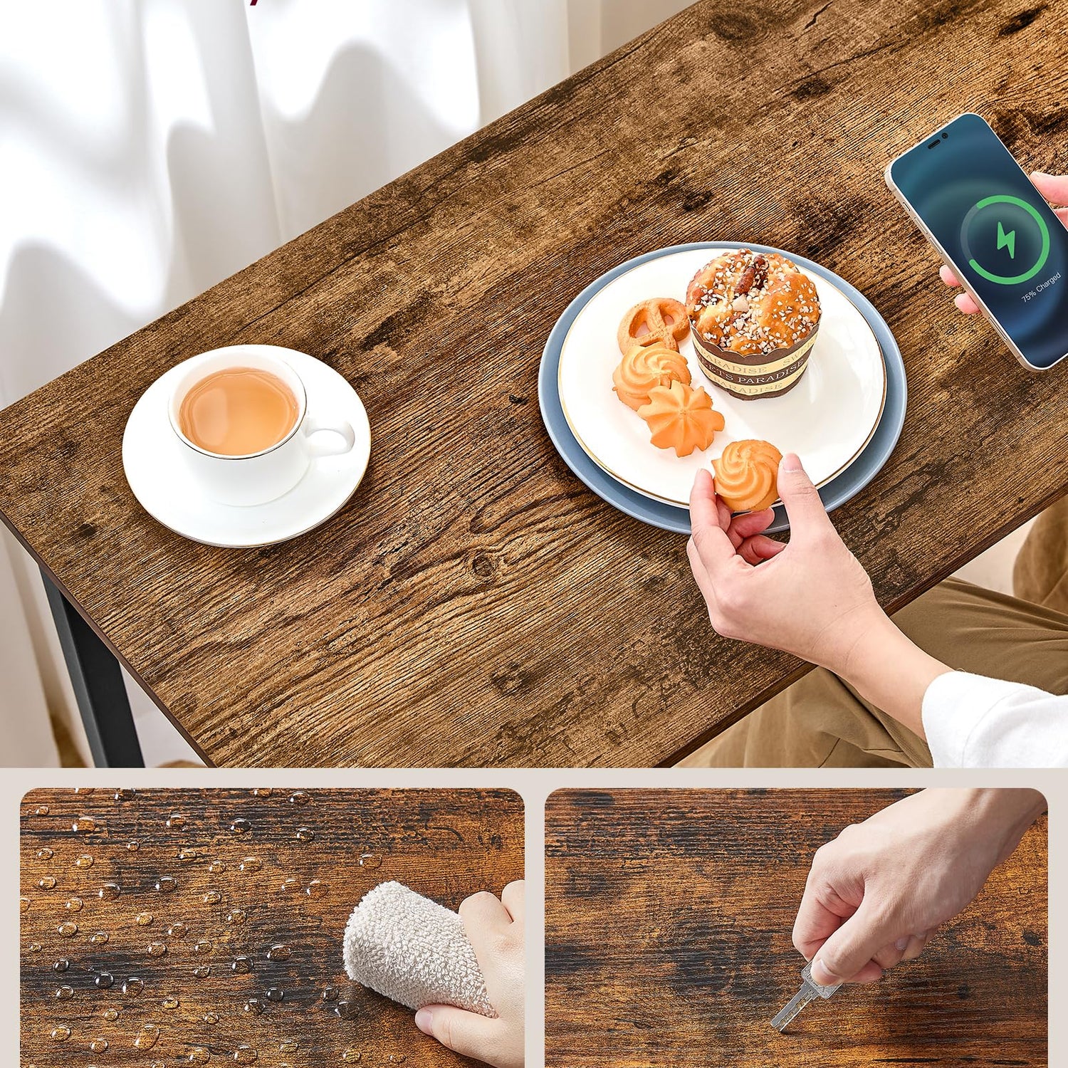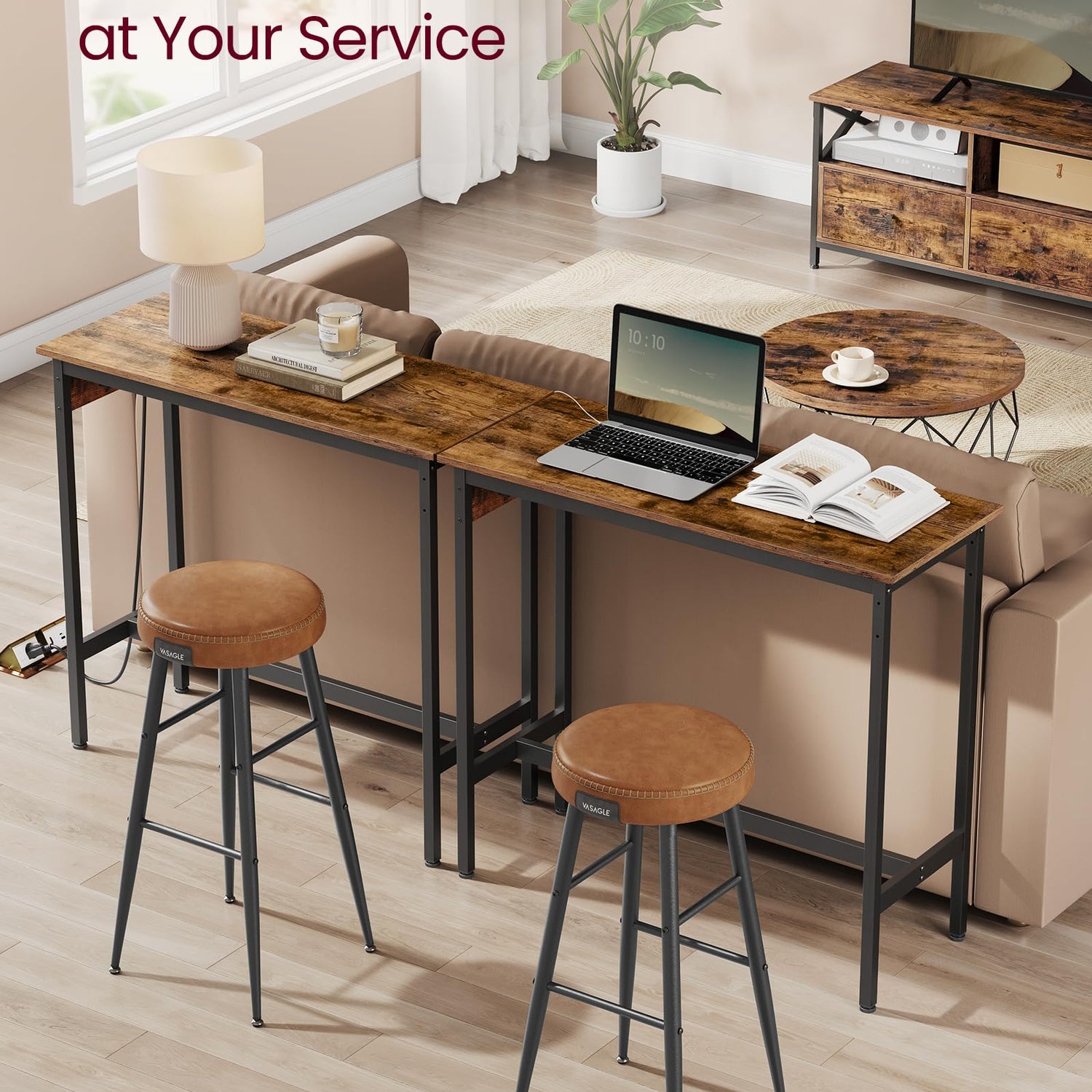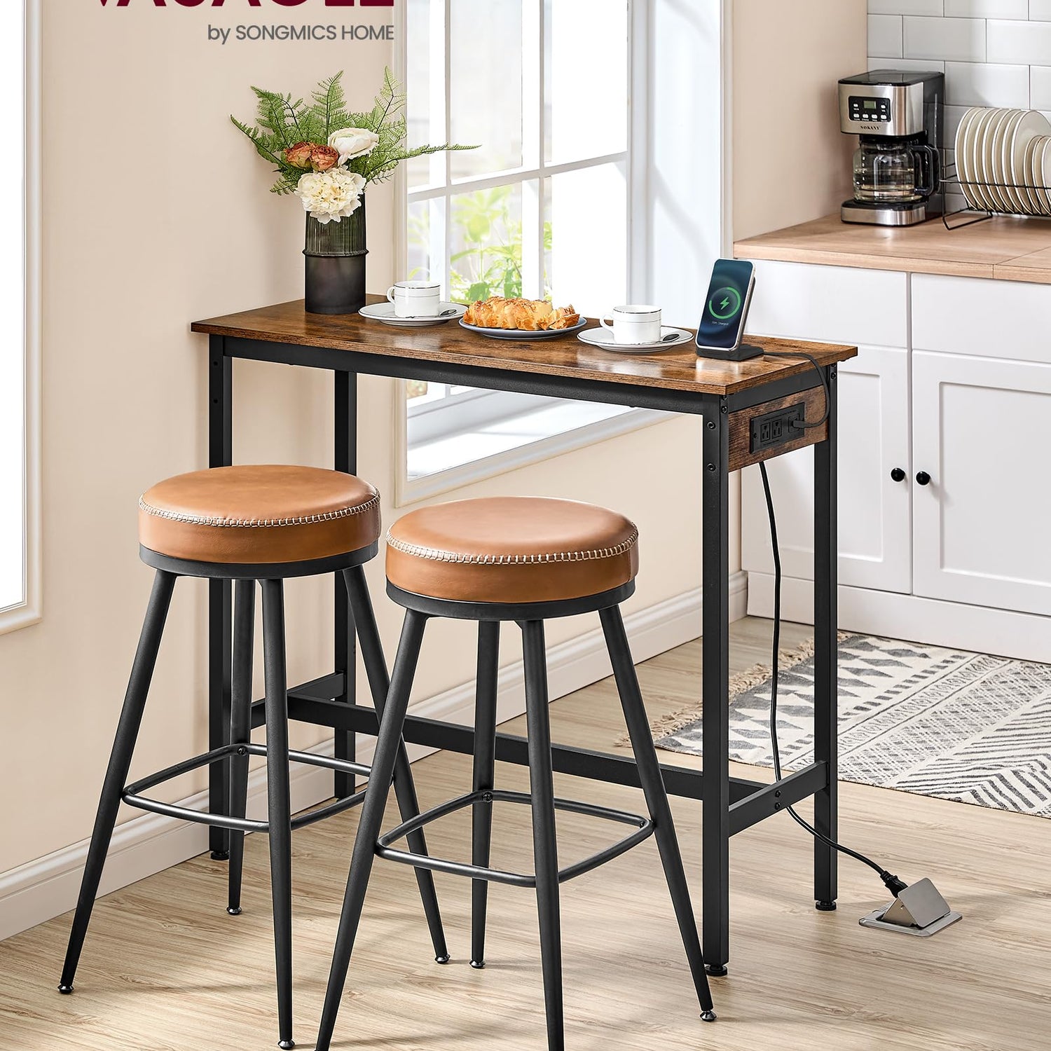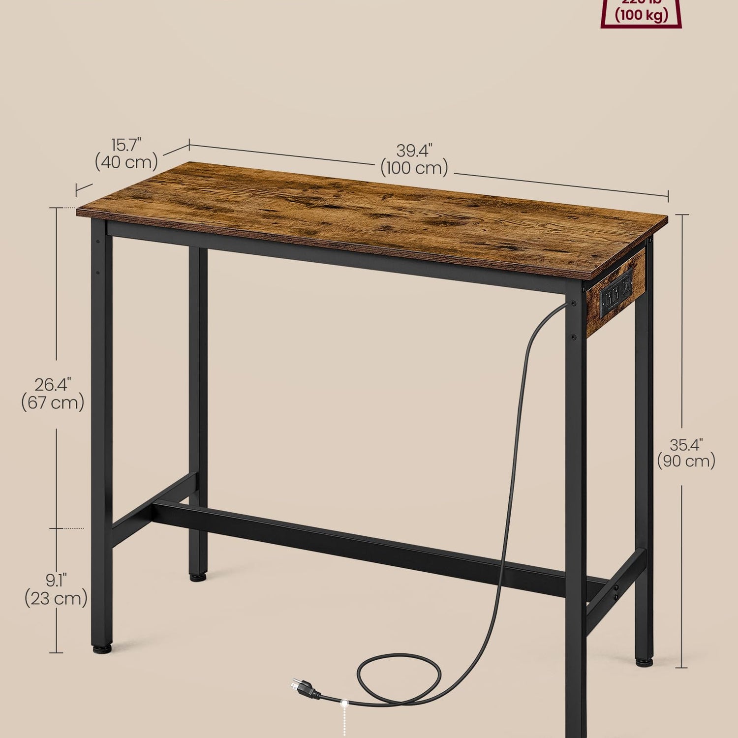VASAGLE Bar Table, Narrow Long Kitchen Dining Table with Charging Station, Sturdy Metal Frame, Industrial, 15.7 x 39.4 x 35.4 Inches, Rustic Brown and Ink Black ULBT101K01