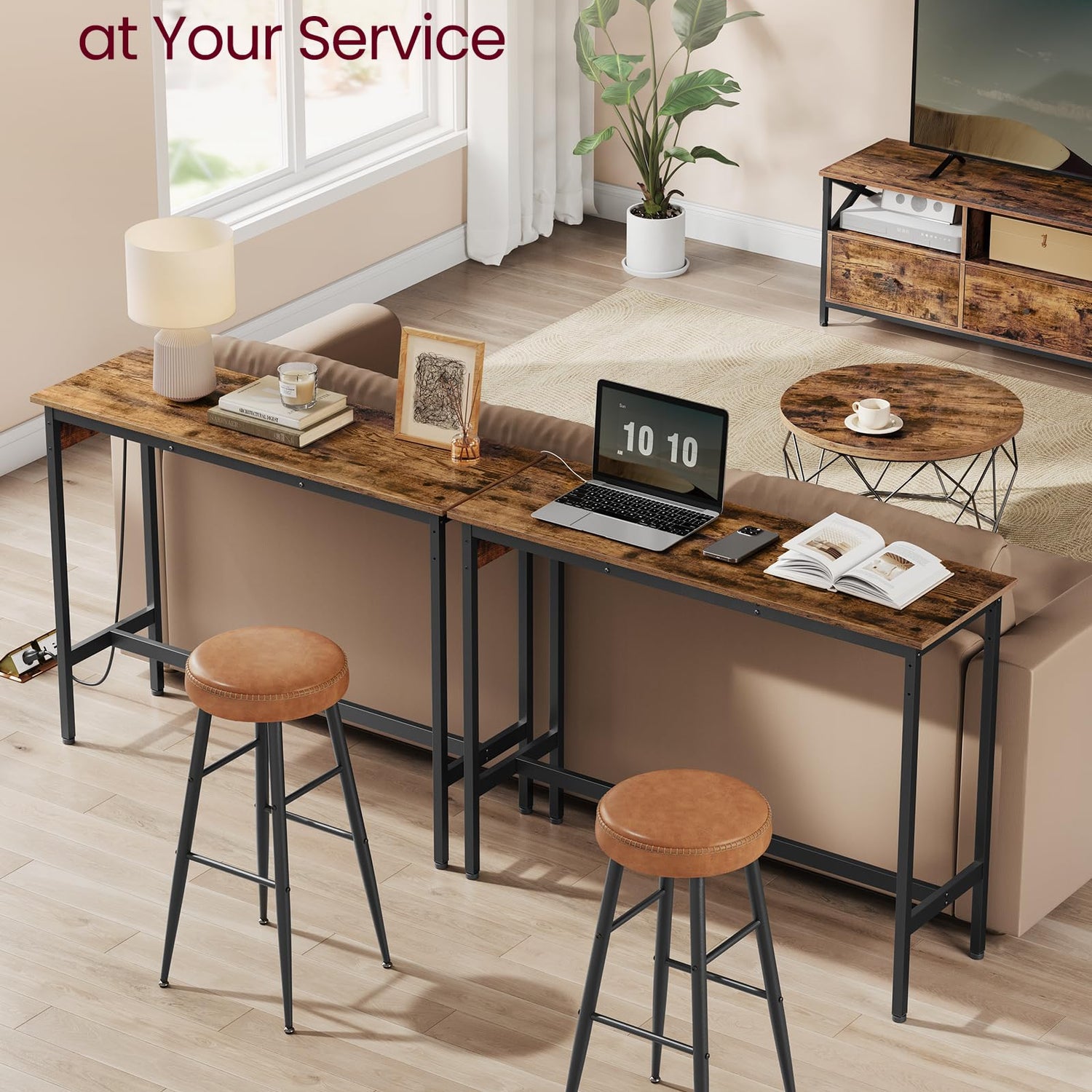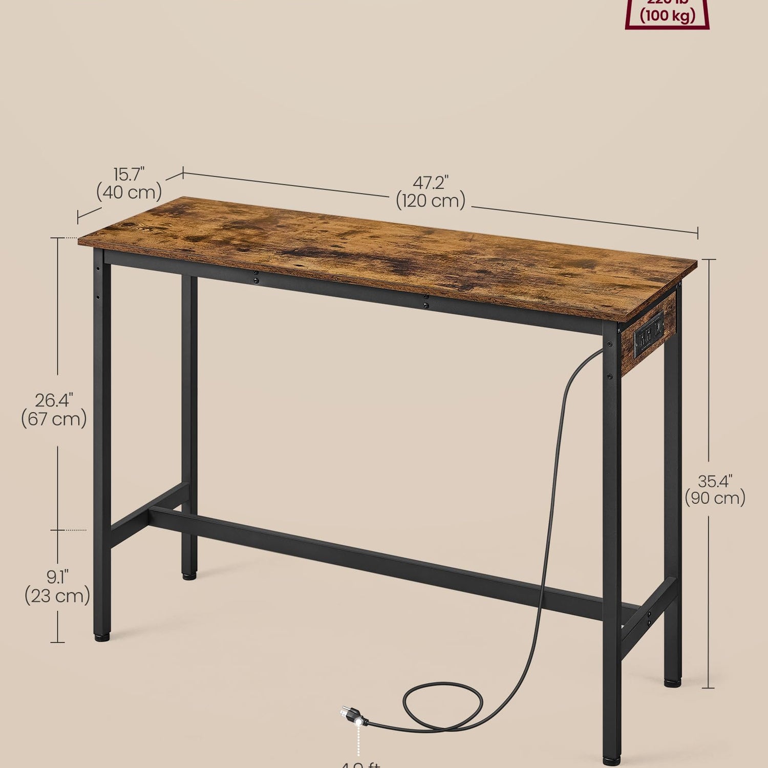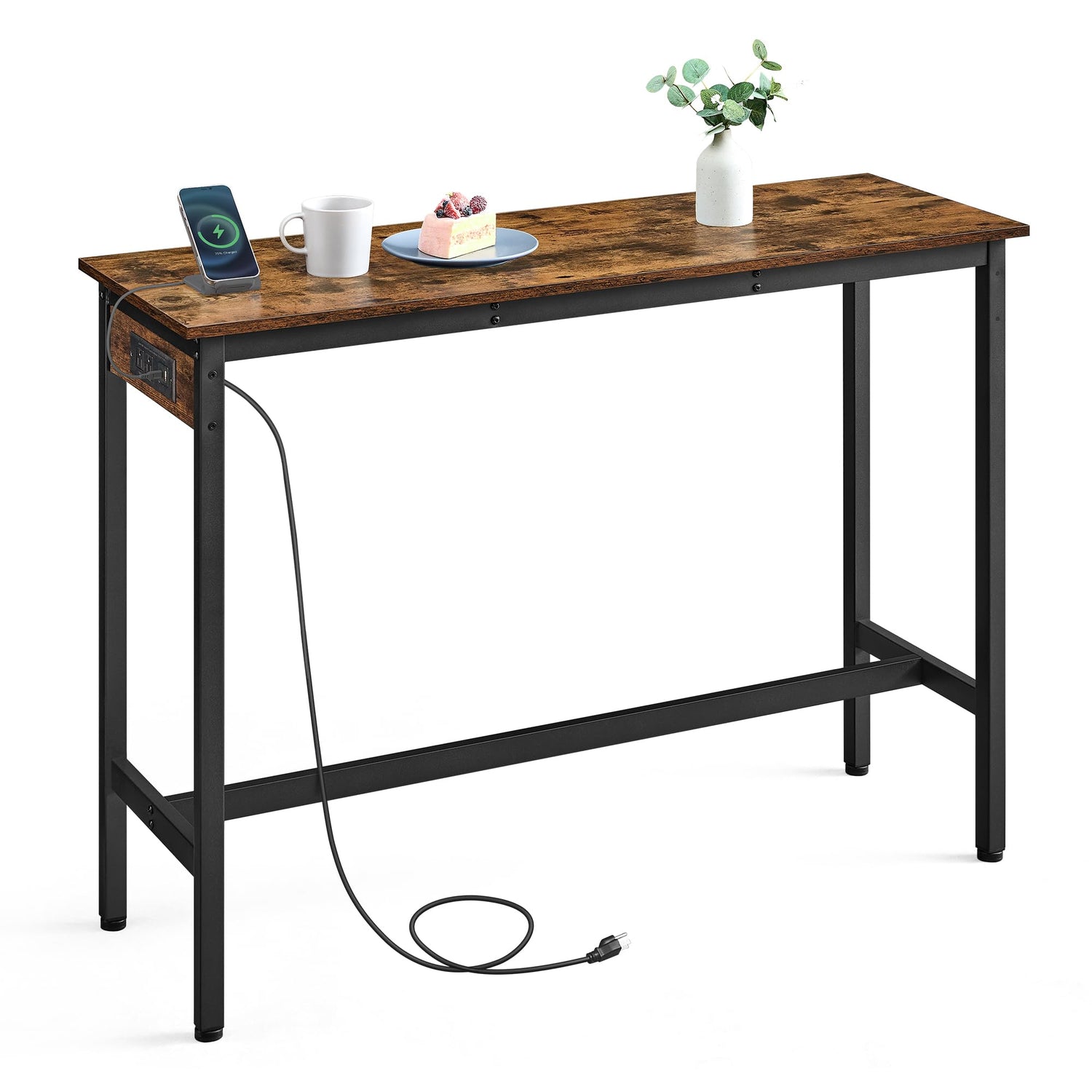 - [Convenient Power Access] Equipped with a power strip including USB ports, this pub table doubles as a work desk when needed. The 4.9 ft long power cord allows for flexible placement of the table without worrying about outlet distance