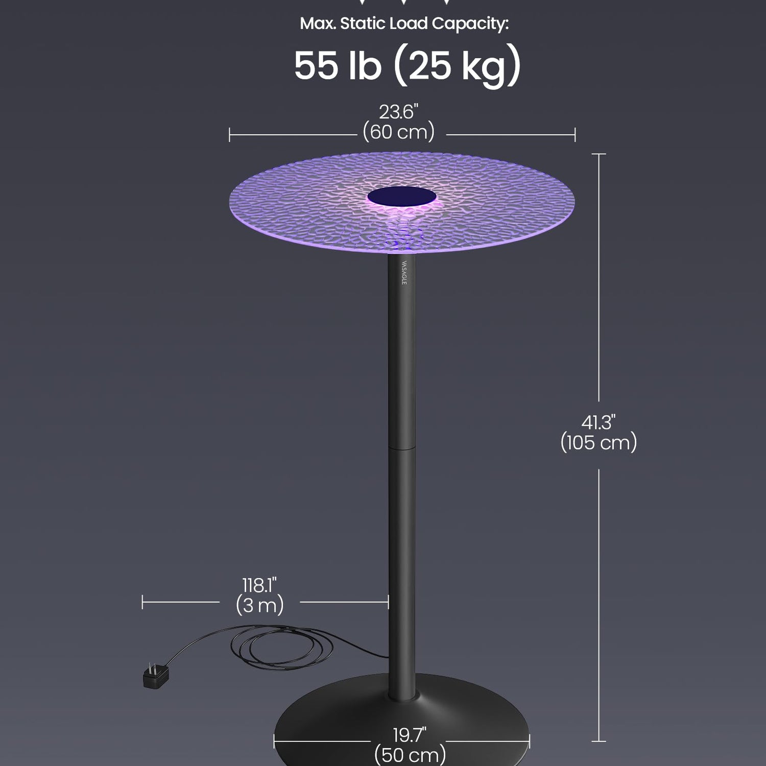 - 【AMBIENT LIGHTING】Set the perfect mood with this bar table featuring a ripple glass top with a built-in, remote-controlled RGB light system. It offers 4 modes—static, 7-color change, flashing, and breathing—allowing for a customized lighting ambience