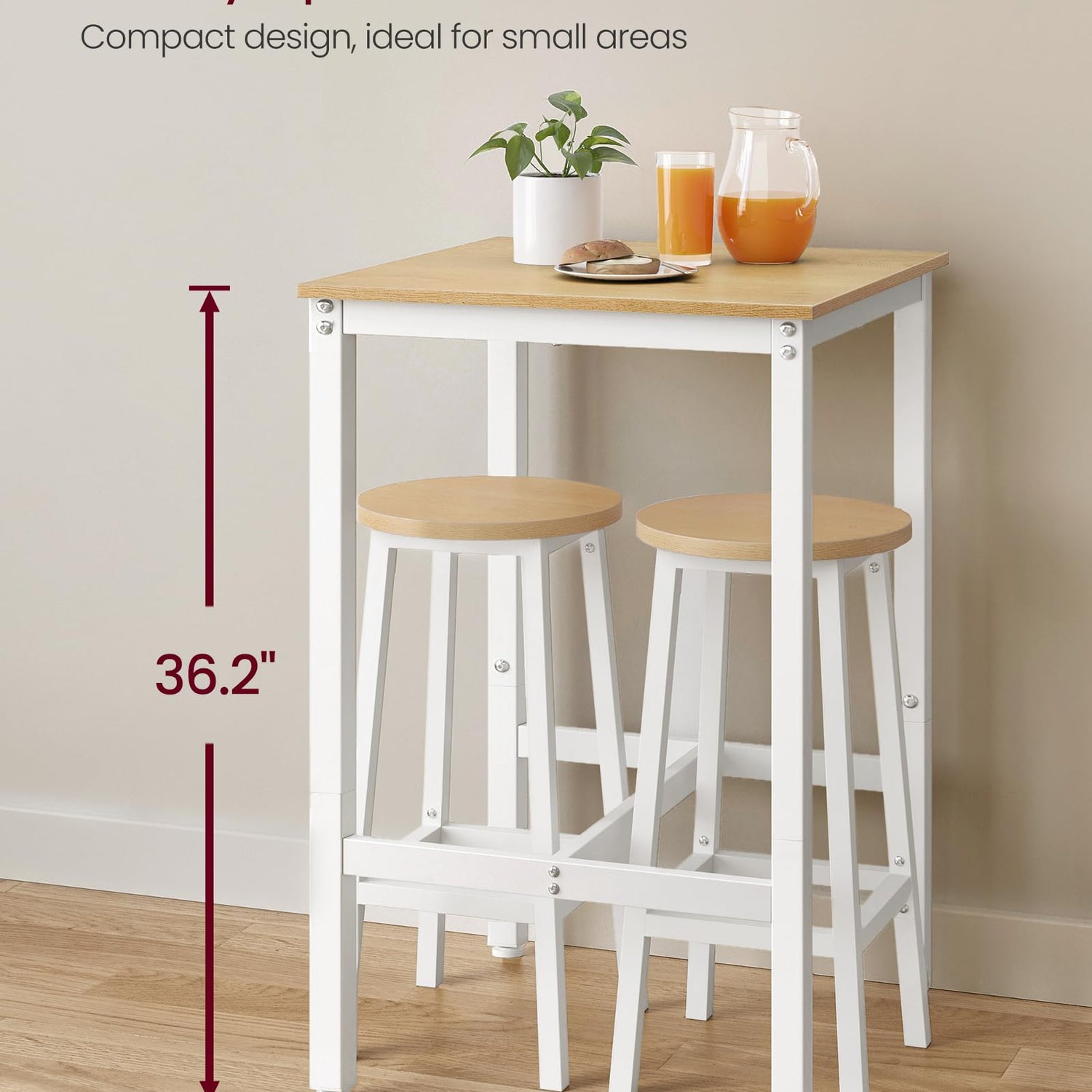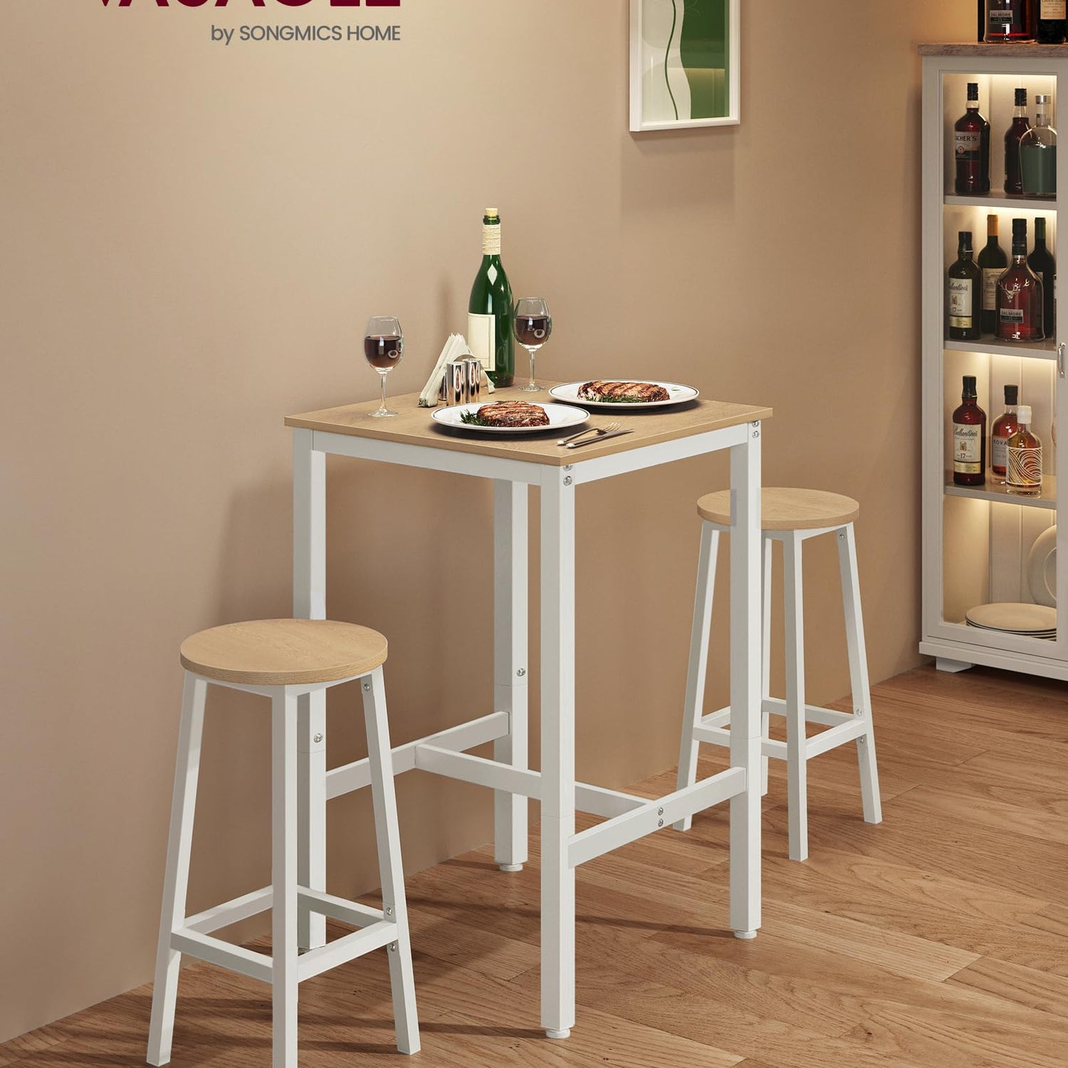 VASAGLE High Top Bar Table – Compact Oak Beige and White Kitchen & Pub Table for Narrow Spaces