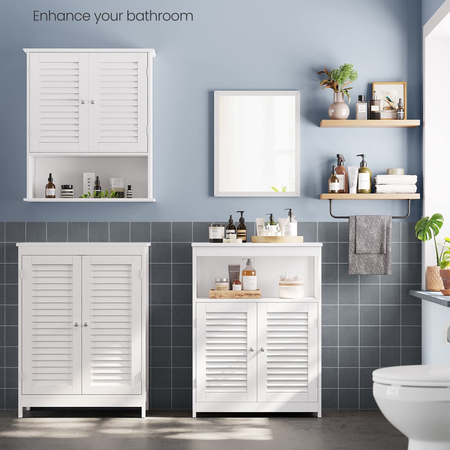 VASAGLE Bathroom Floor Cabinet, Bathroom Storage Cabinet, Freestanding, with Double Shutter Doors and Adjustable Shelf, for Bathroom, Living room, Entryway, Kitchen, White UBBC40WT