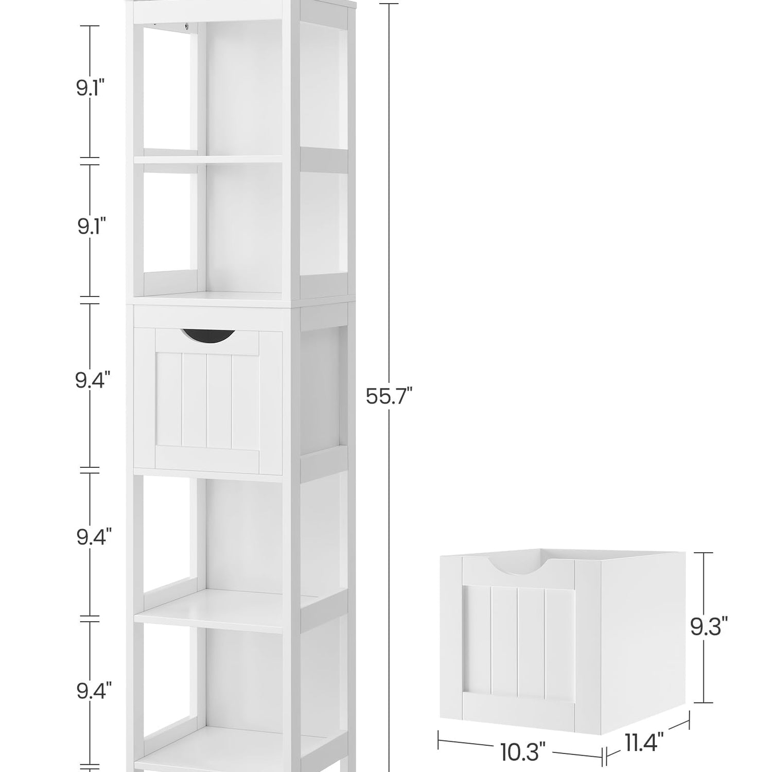 - [Every Inch Counts] Don't neglect the corner space of your bathroom! Max out storage space—and keep your everyday essentials at your fingertips—by opting for this slimline 11.8"D x 11.8"W x 55.7"H freestanding cabinet