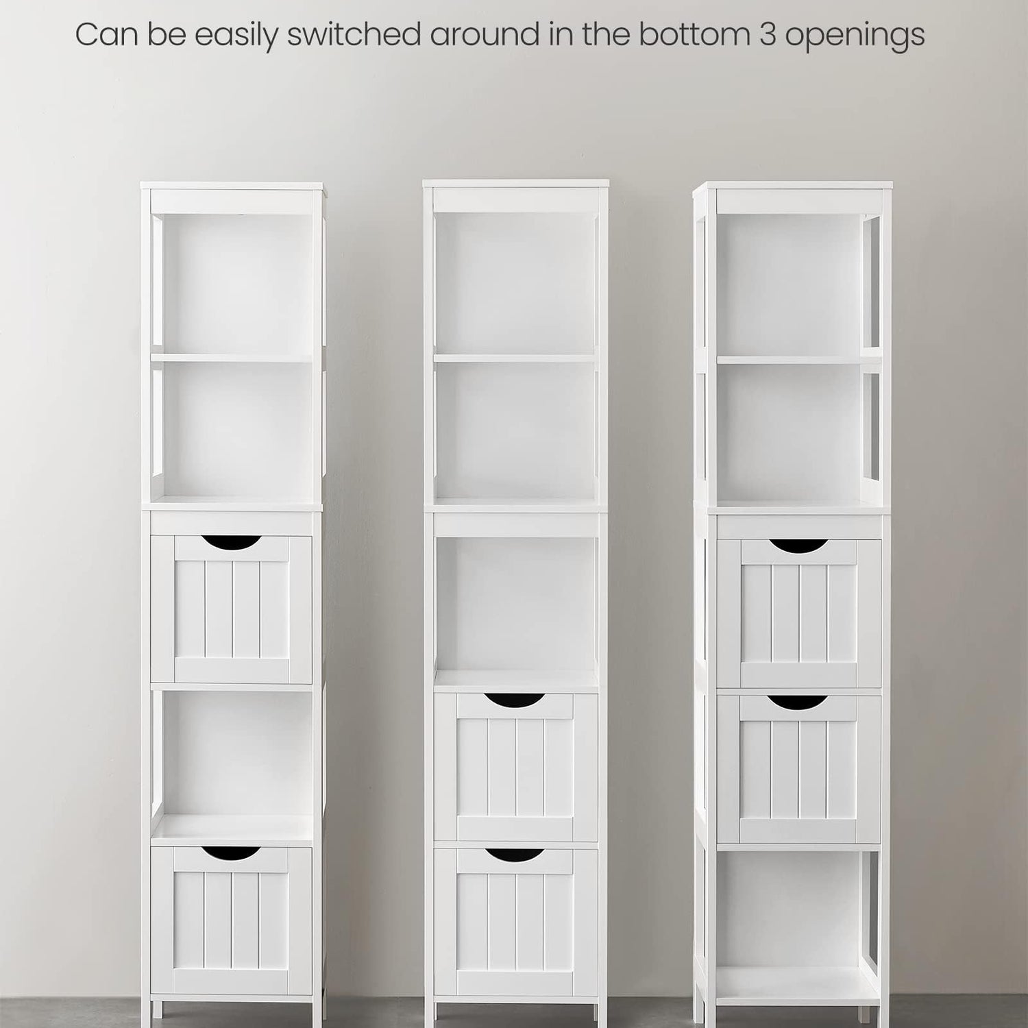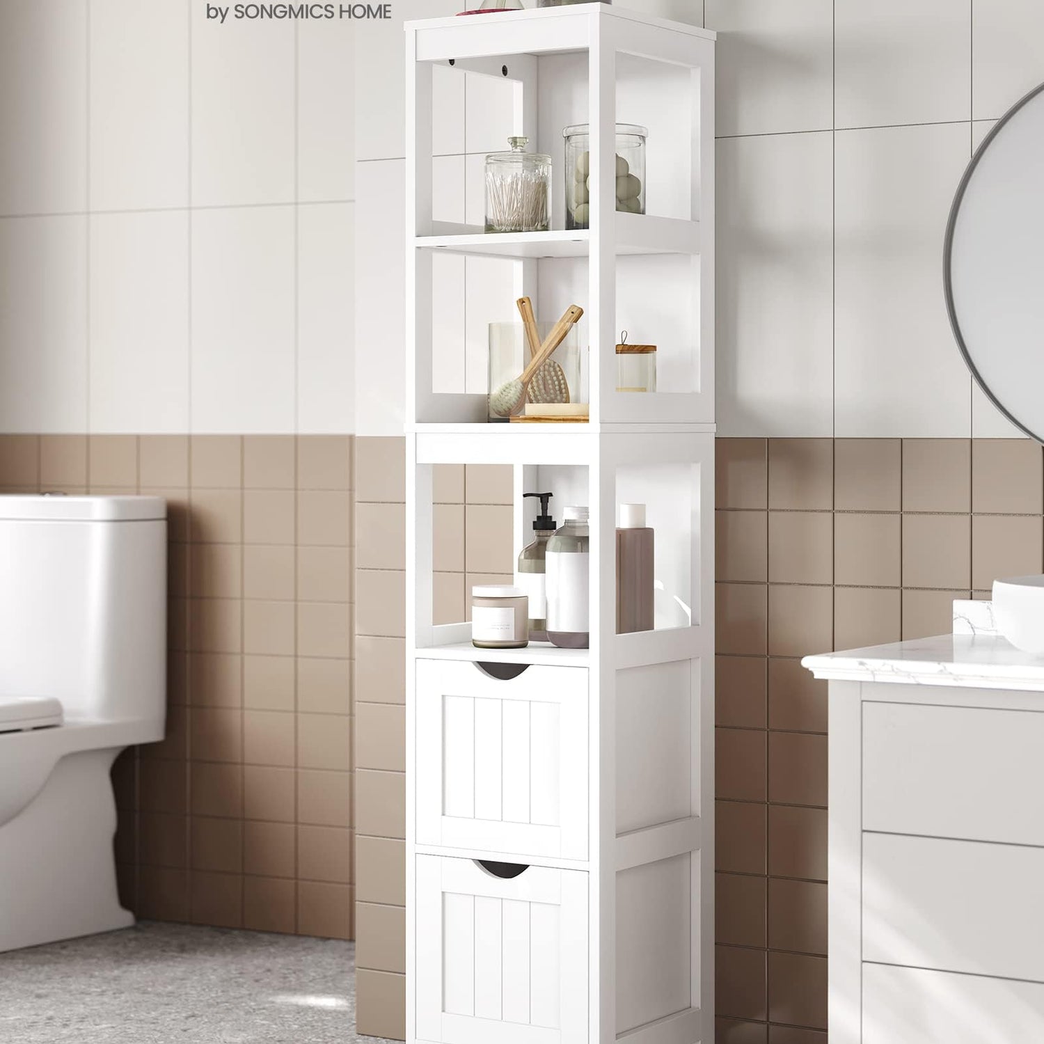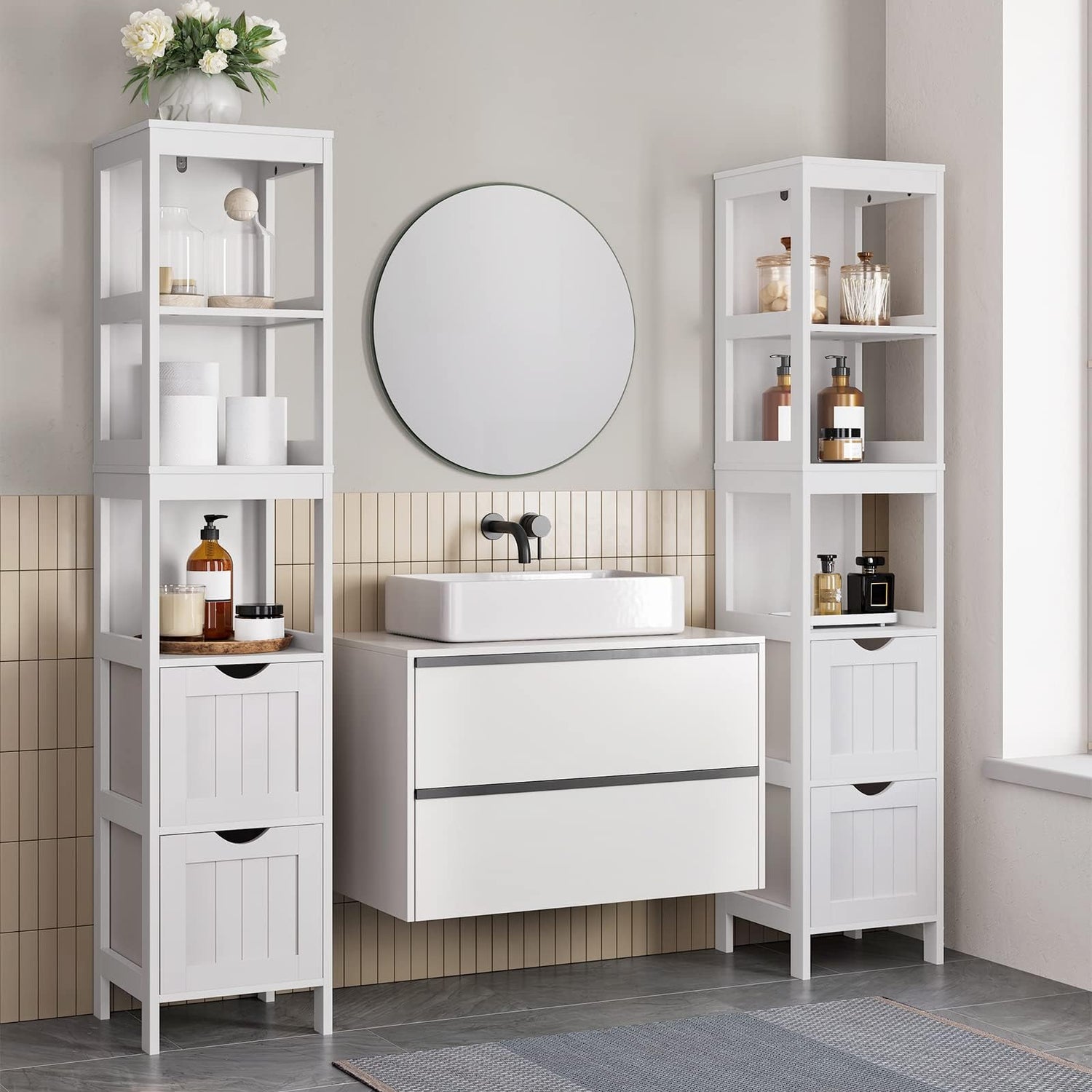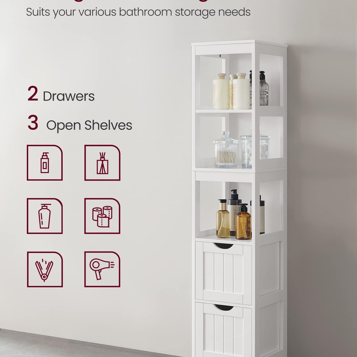 VASAGLE Bathroom Floor Cabinet, Bathroom Storage Organizer Rack Stand, Multifunctional Corner Unit, 2 Drawers, 55.7 Inches in Height, White UBBC66WT