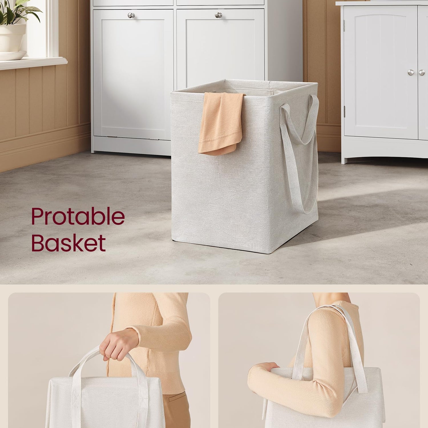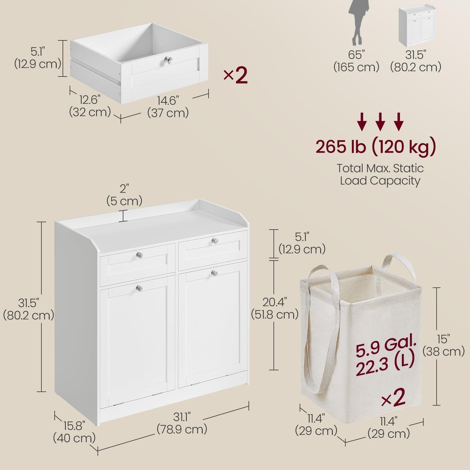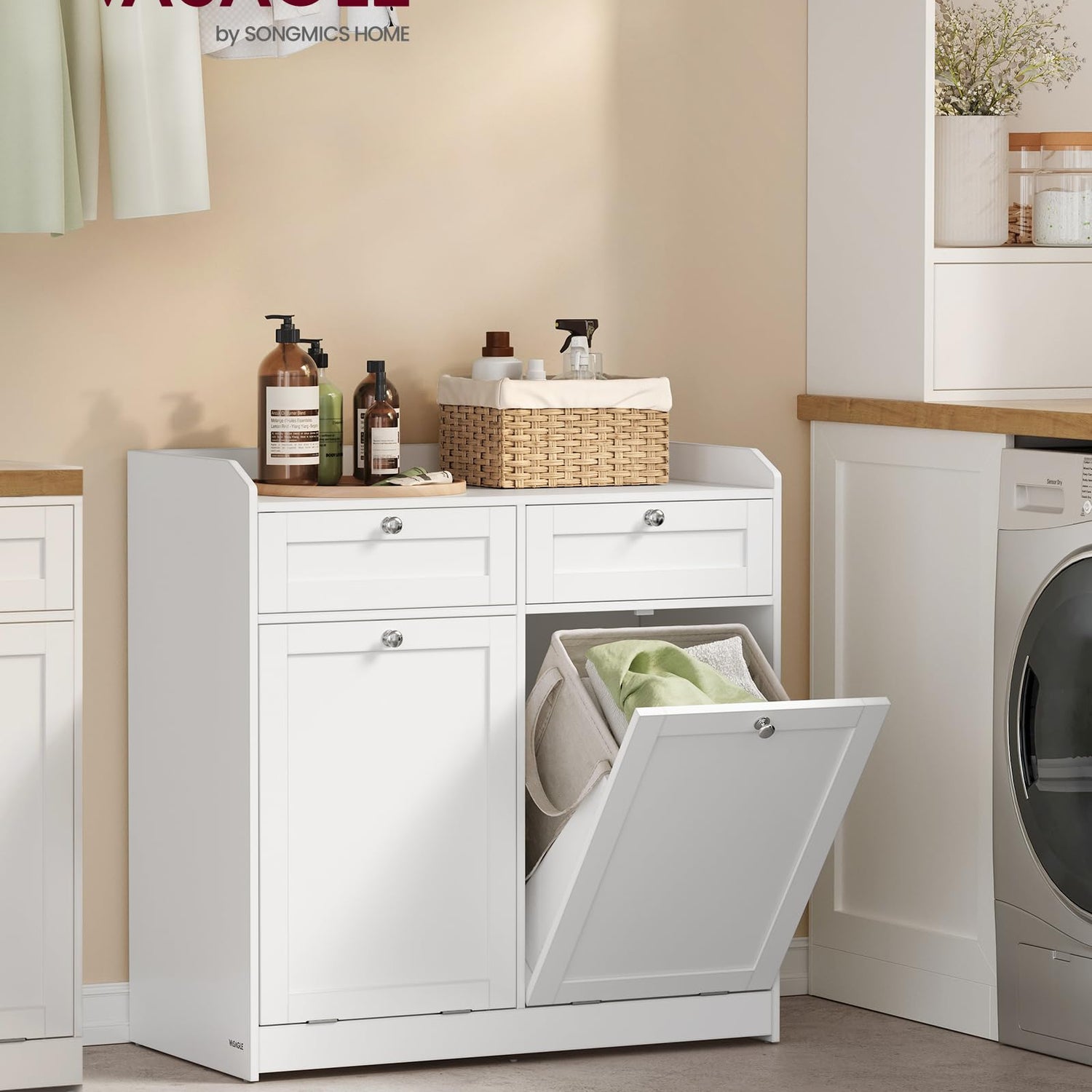 - 【REMOVABLE AND PORTABLE LAUNDRY HAMPERS】On laundry day, you can effortlessly lift out the inner fabric baskets from the tilt-out laundry cabinet. With their convenient double handles, you can easily carry them right to the washing machine