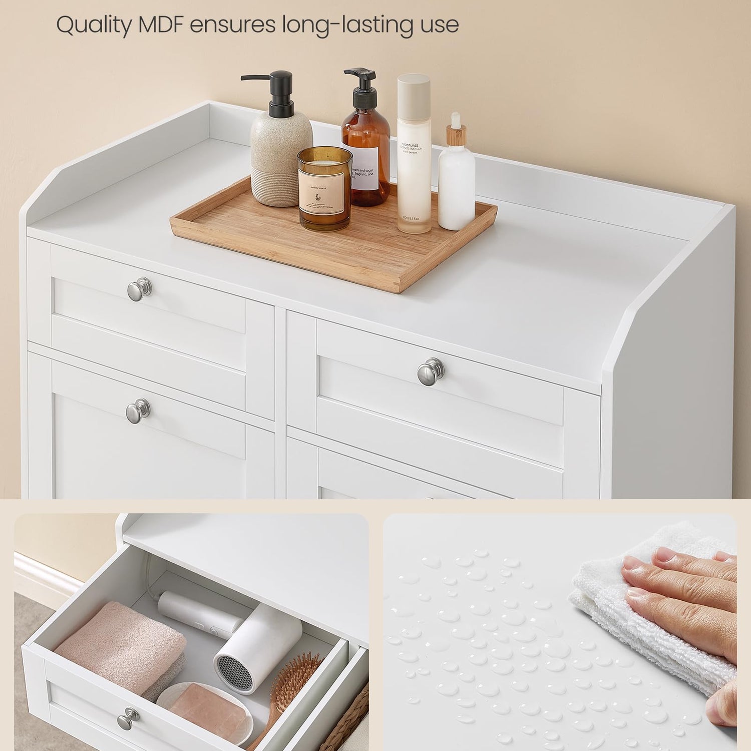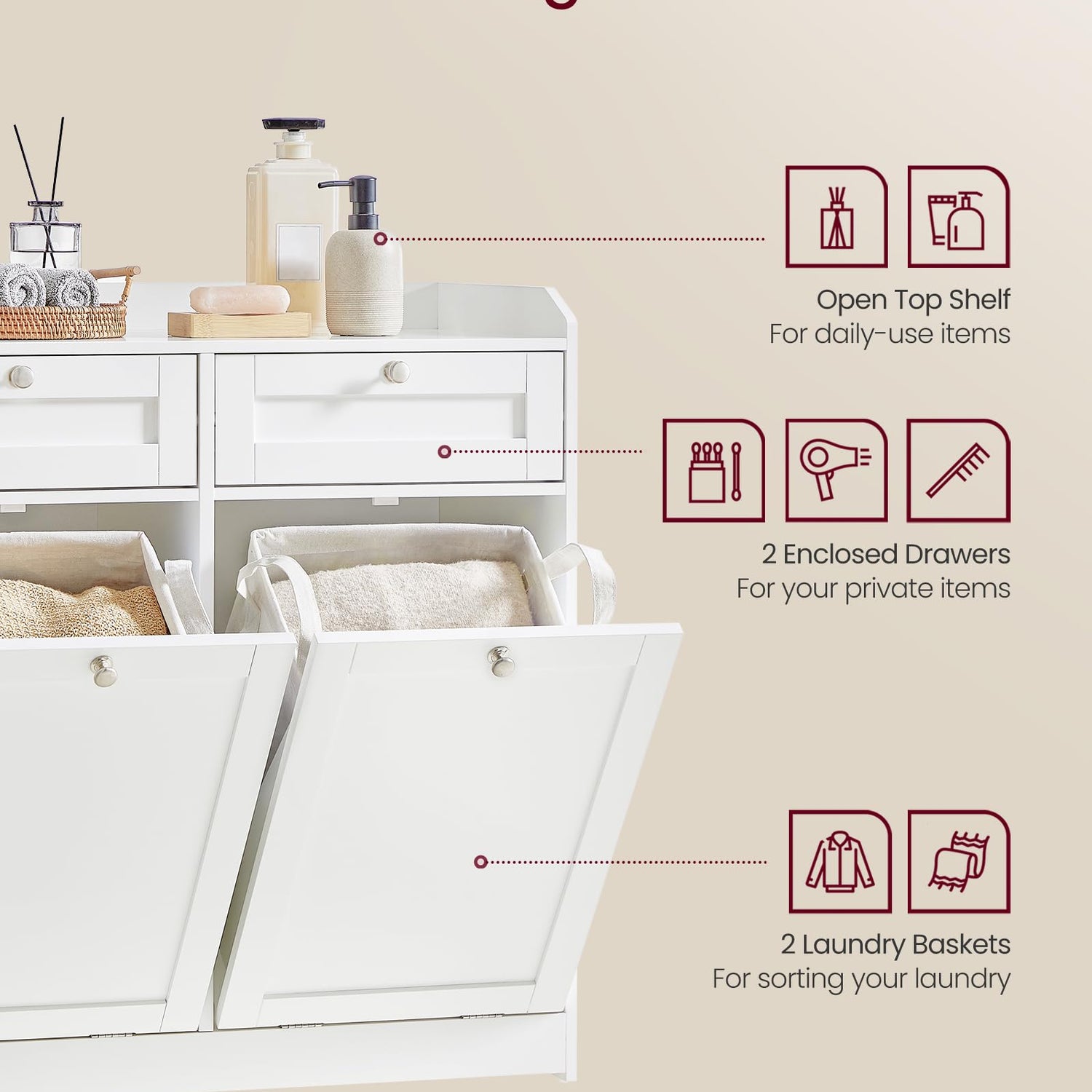 VASAGLE Bathroom Laundry Cabinet with Basket, with 2 Drawers and 2 Hidden Laundry Hampers, Freestanding, Tilt-Out Laundry Baskets with Handles, 31.1 x 15.8 x 31.5 Inches, Cloud White UBBC751W01