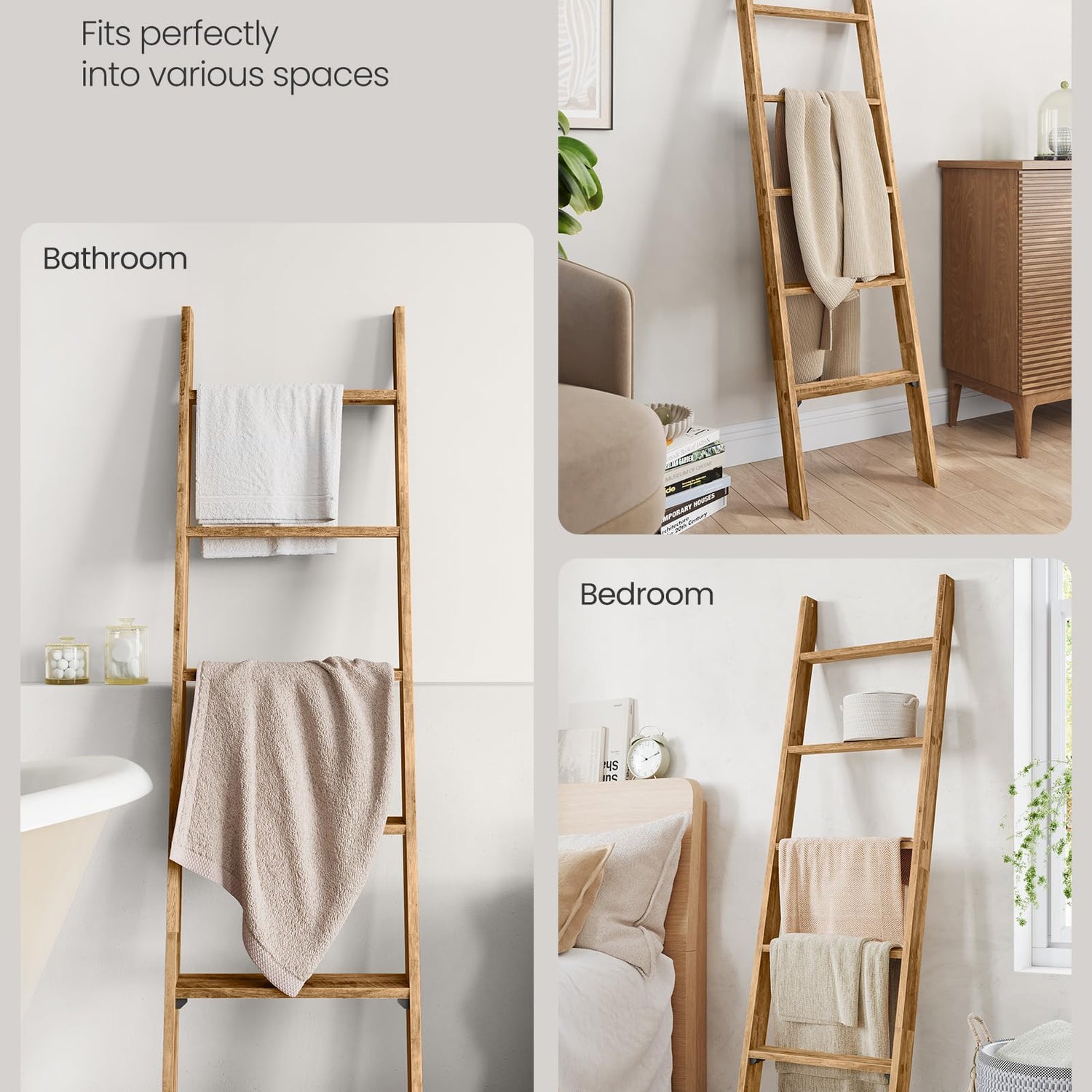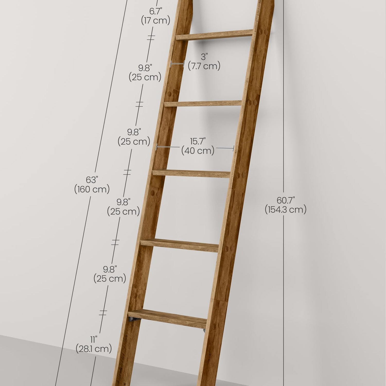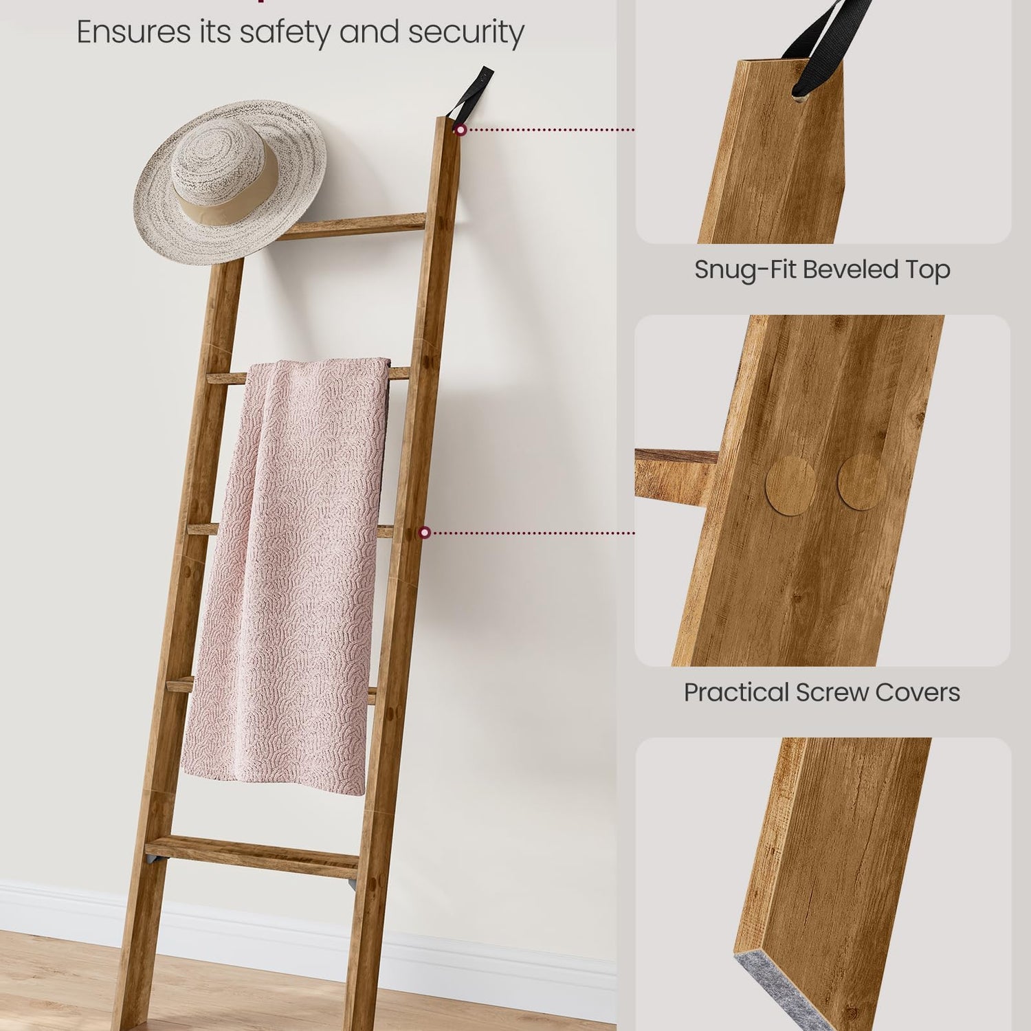 VASAGLE Blanket Ladder Decorative Farmhouse for The Living Room, 5-Tier Ladder Shelf, Ladder Rack for Storage and Decor, Honey Brown ULLS018K41