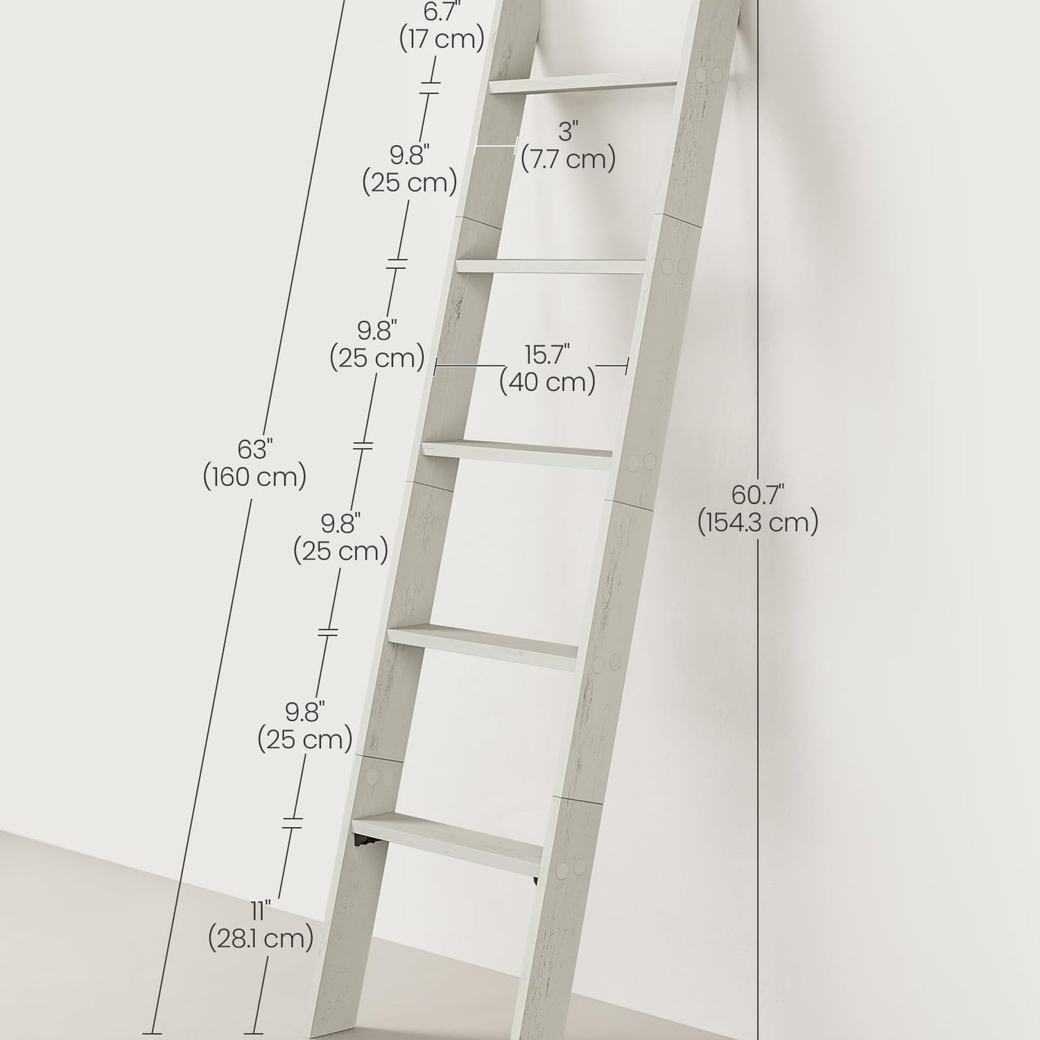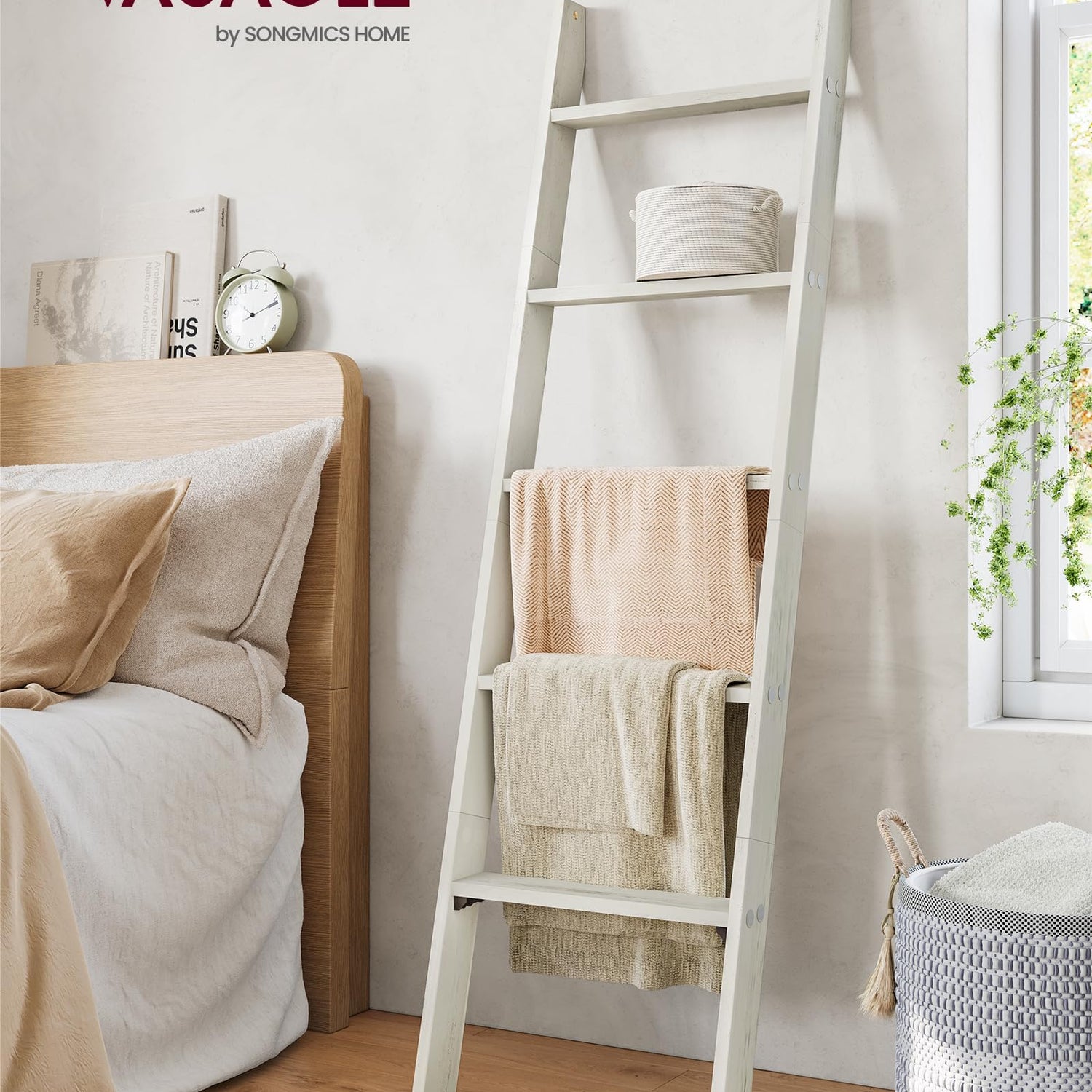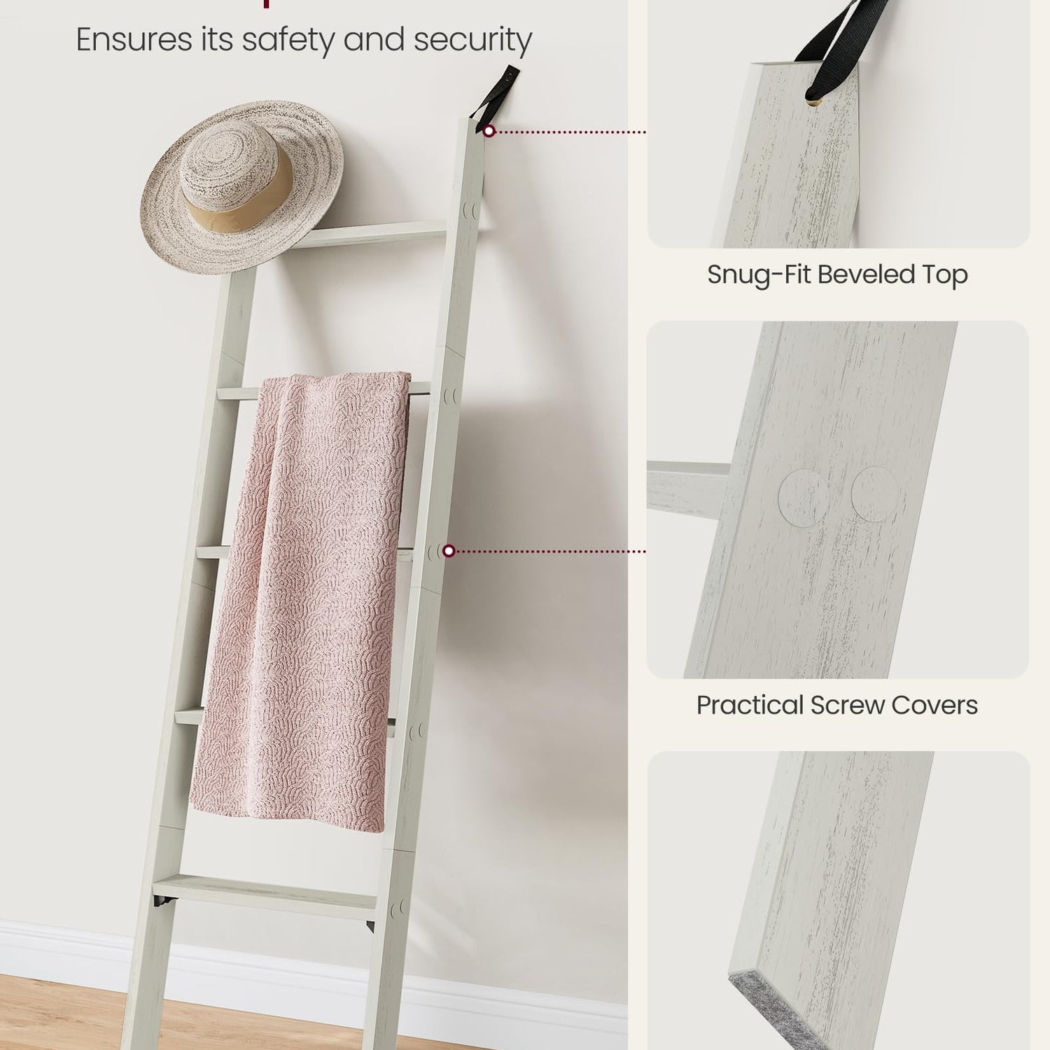 VASAGLE Blanket Ladder Decorative Farmhouse for The Living Room, 5-Tier Ladder Shelf, Ladder Rack for Storage and Decor, Rustic White ULLS018W73