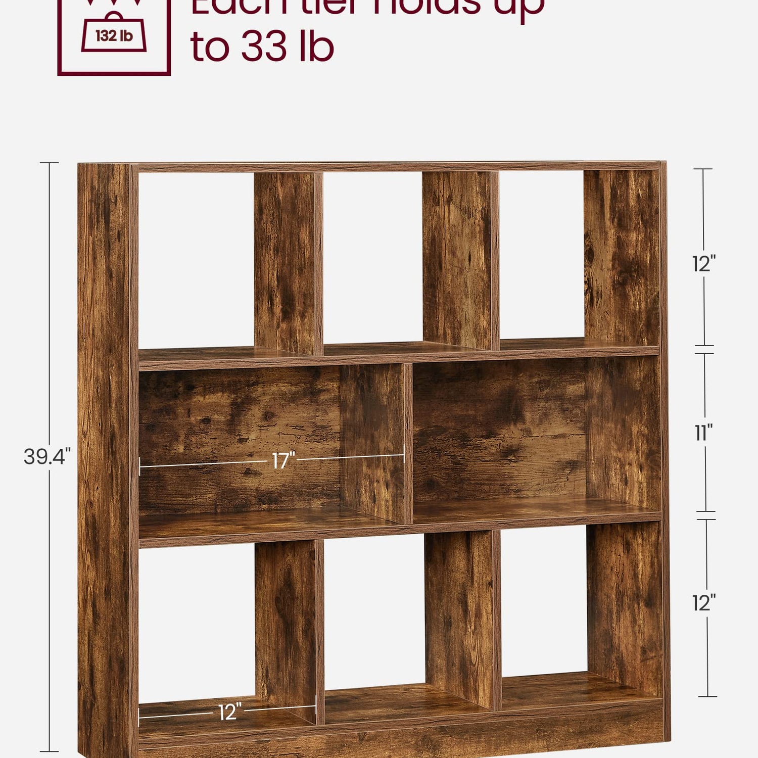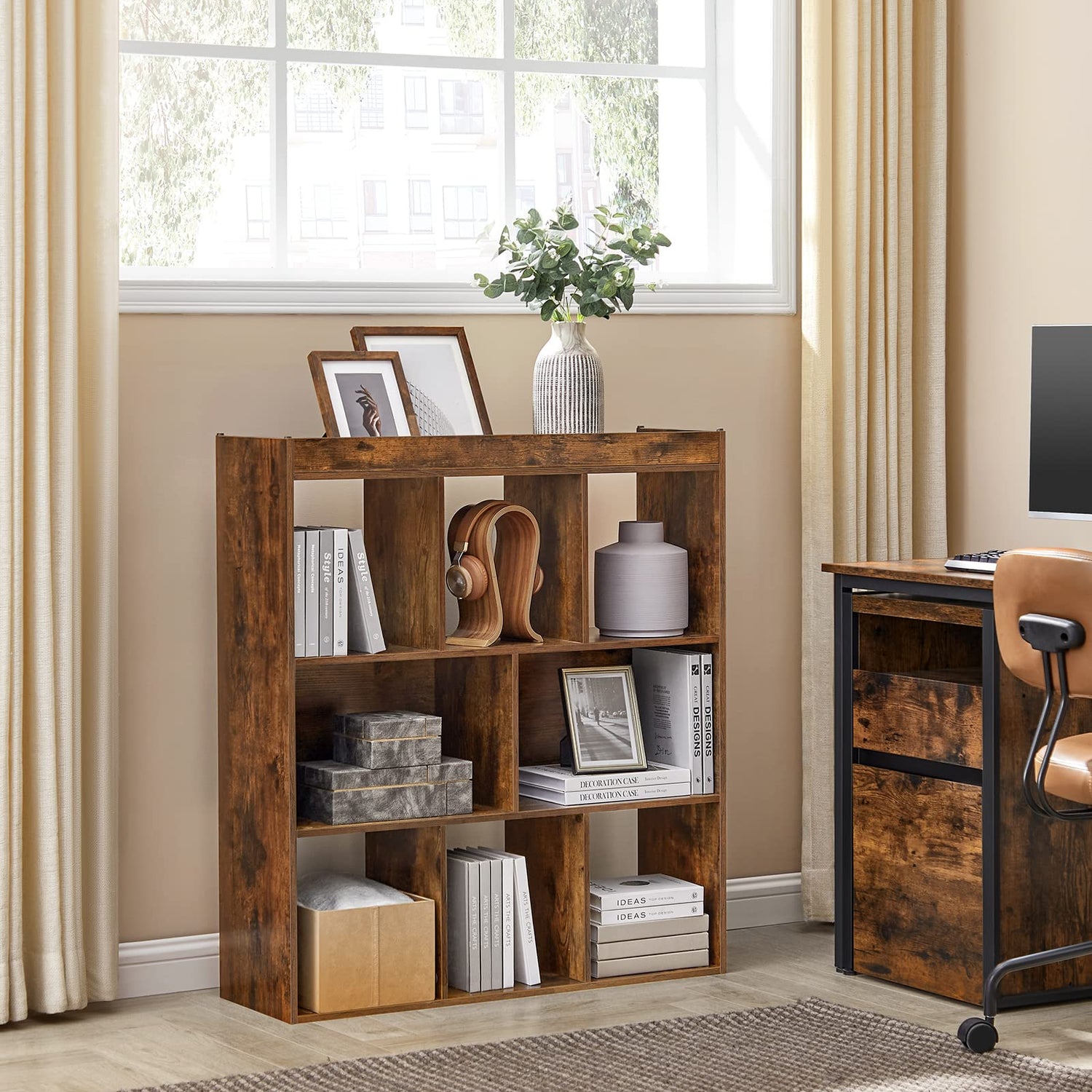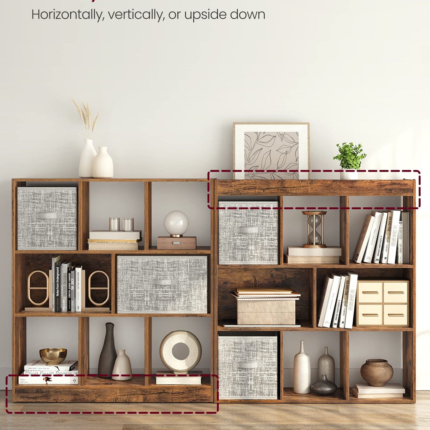 VASAGLE Bookcase, Bookshelf, Freestanding Storage Unit, 8 Open Compartments, Used Horizontally, Vertically, Upside Down, 11 x 35.4 x 39.4 Inches, for Living Room, Study, Office, Rustic Brown ULBC55BX