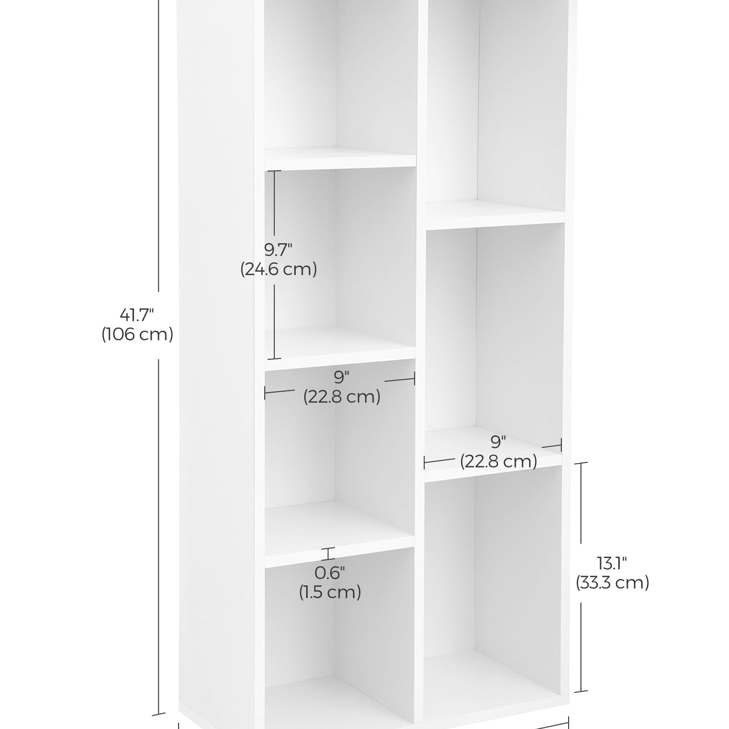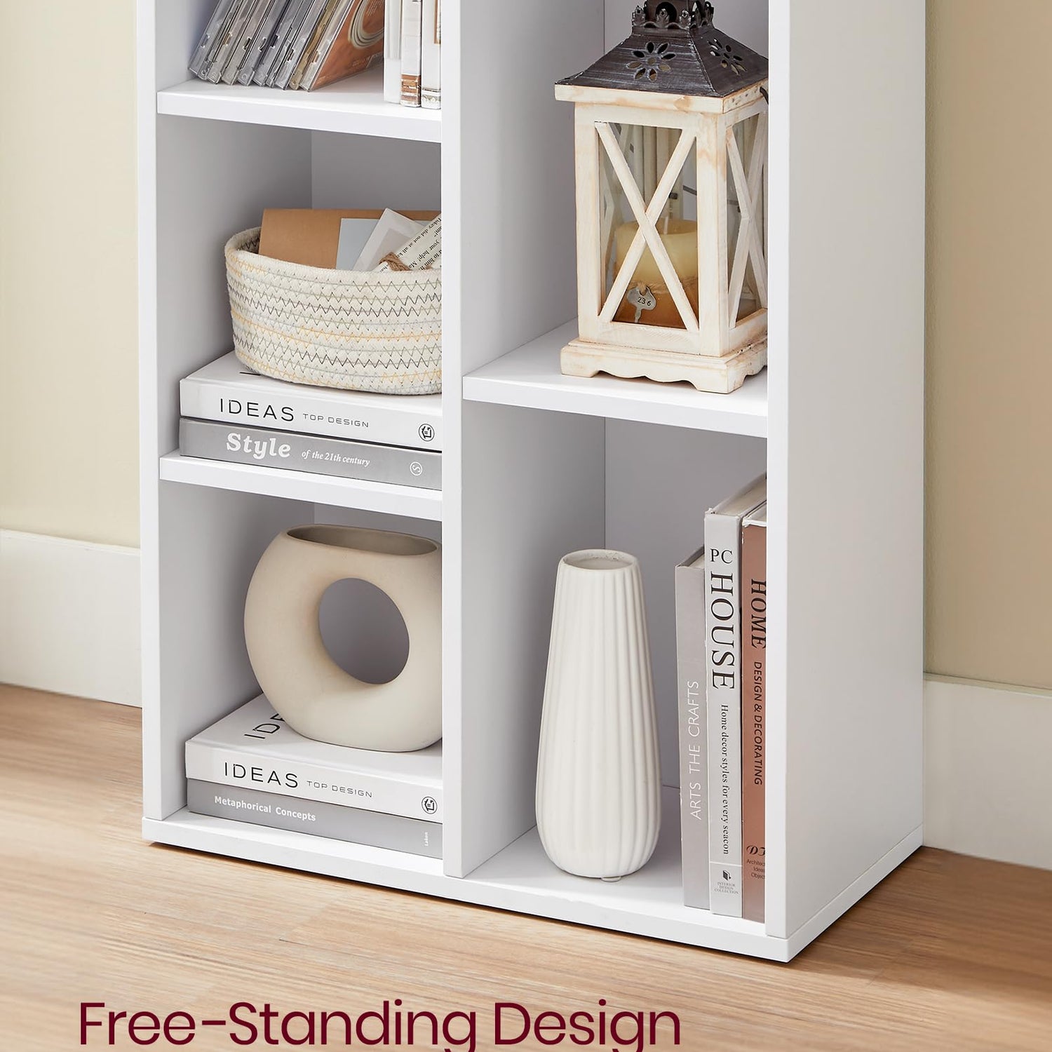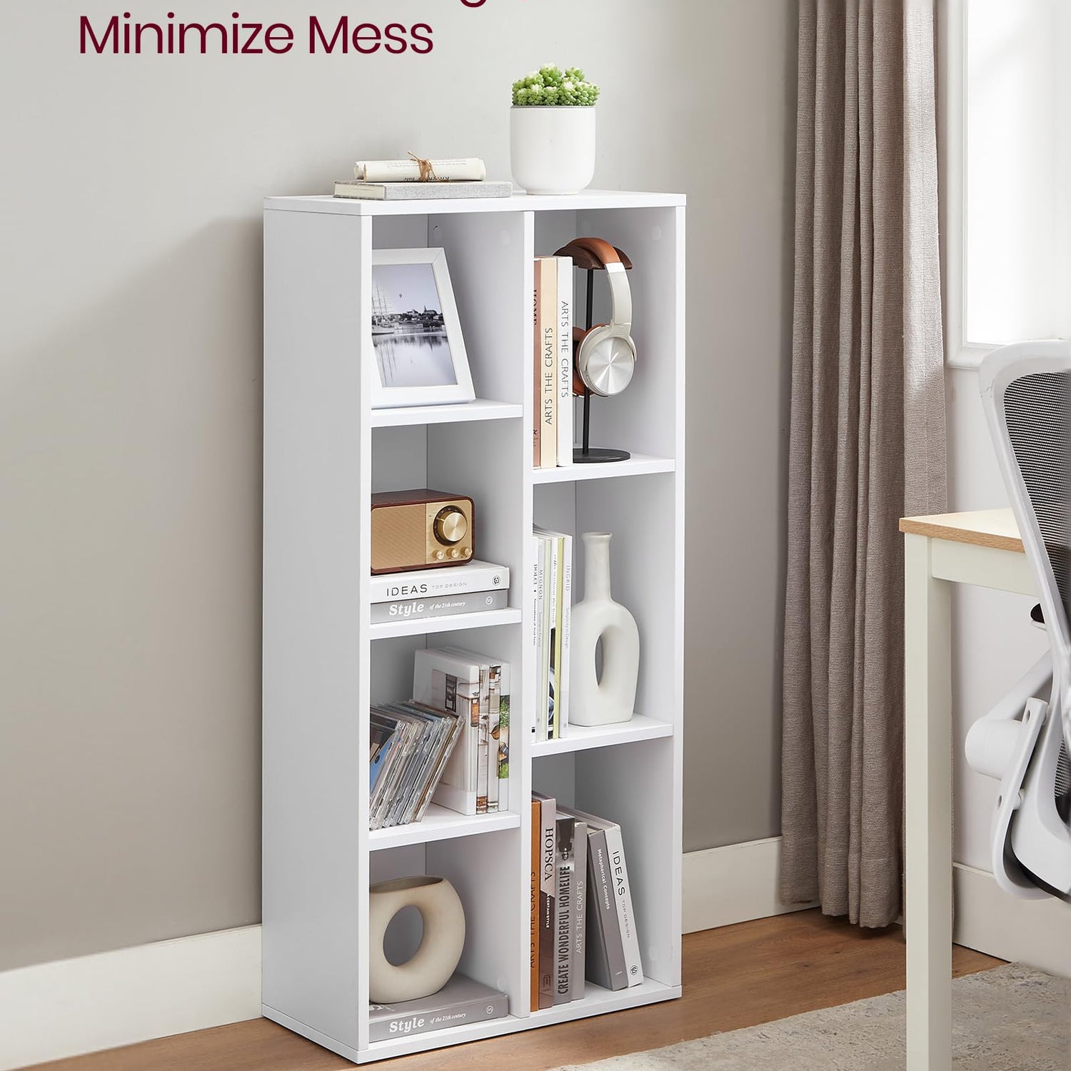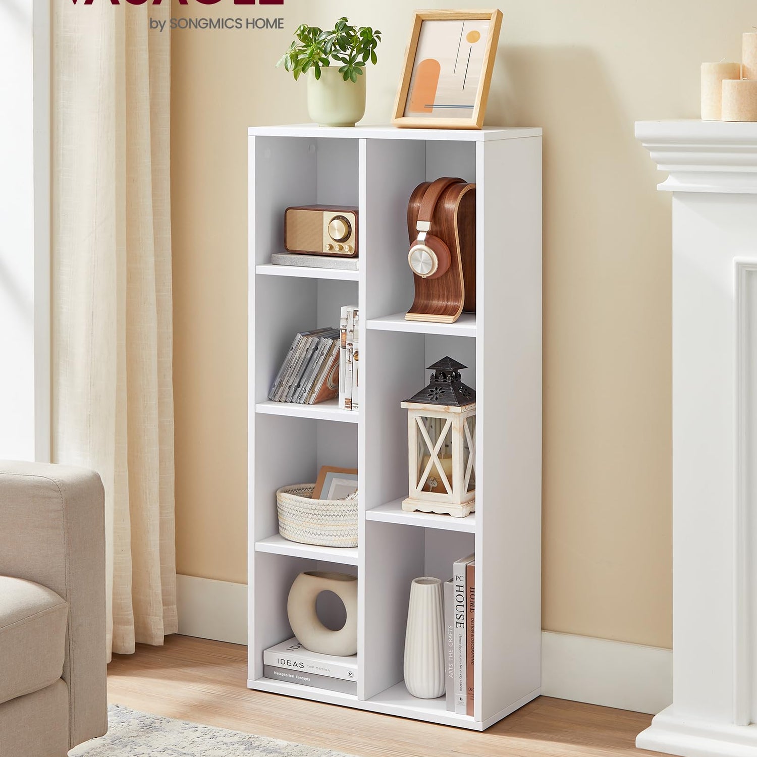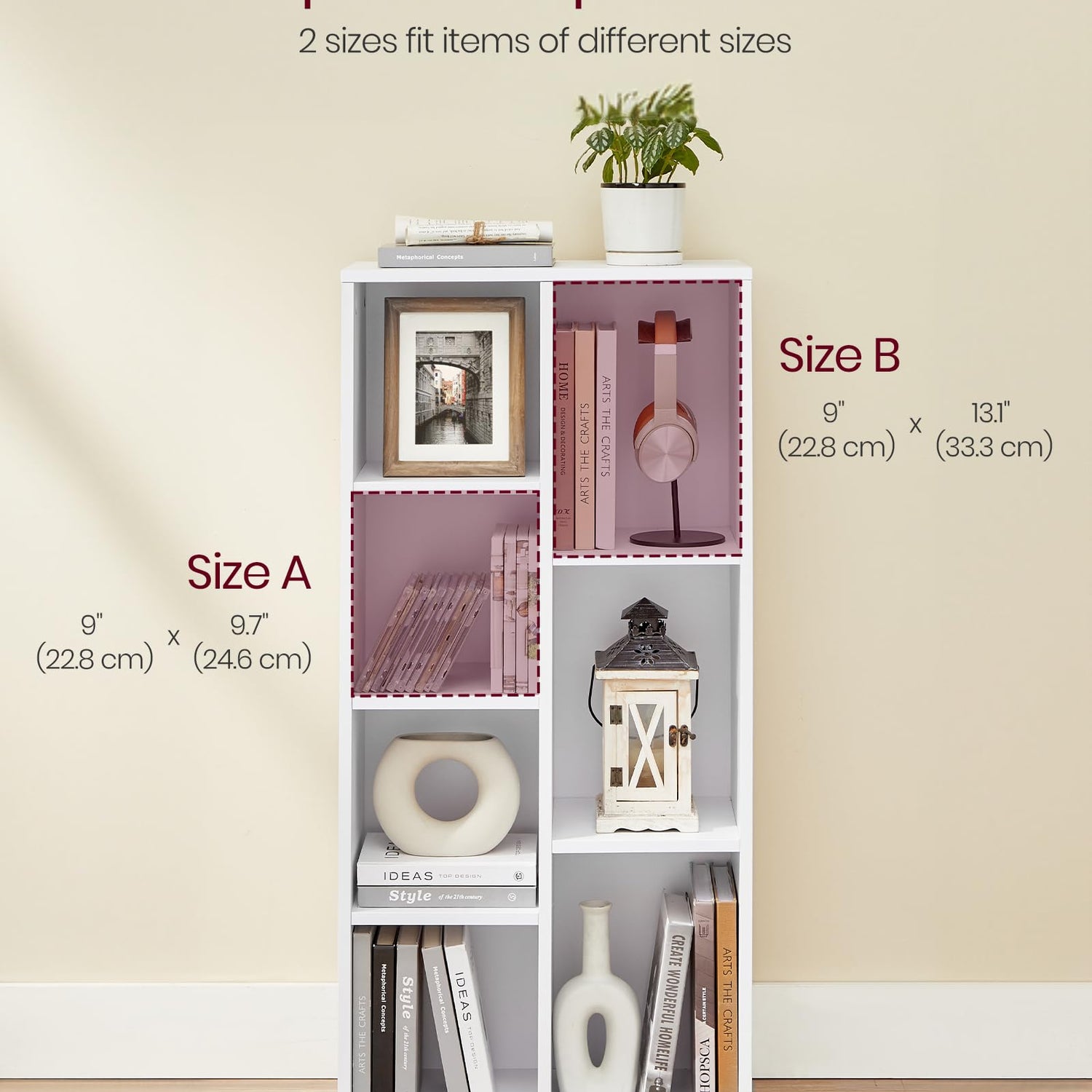 VASAGLE 7-Compartment Freestanding Bookcase - Space-Saving White Bookshelf for Living Room, Bedroom, and Home Office